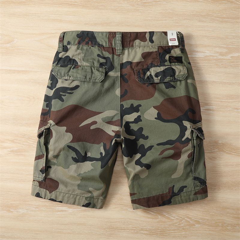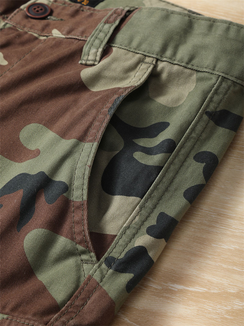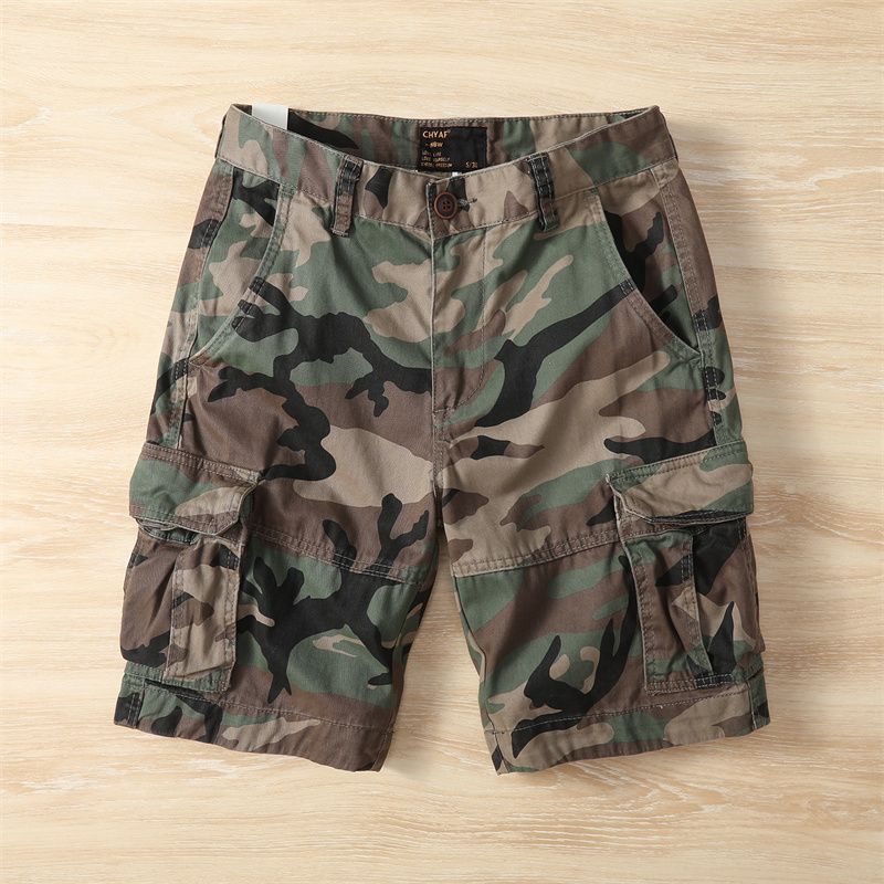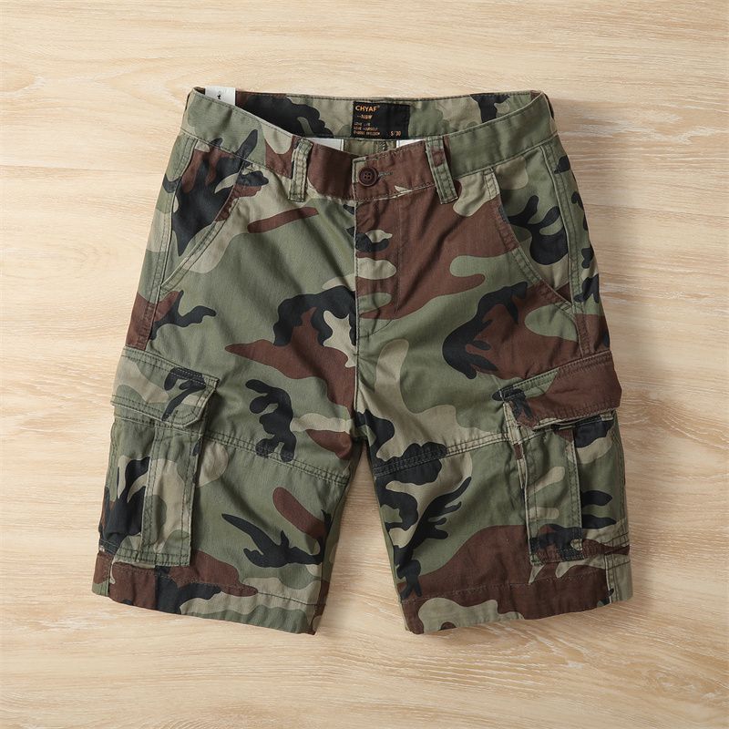 아메리칸 레트로 여름 위장 야외 작업복 대형 5부 바지 아미 카키 워시 디스트레스드 캐주얼 남성 반바지