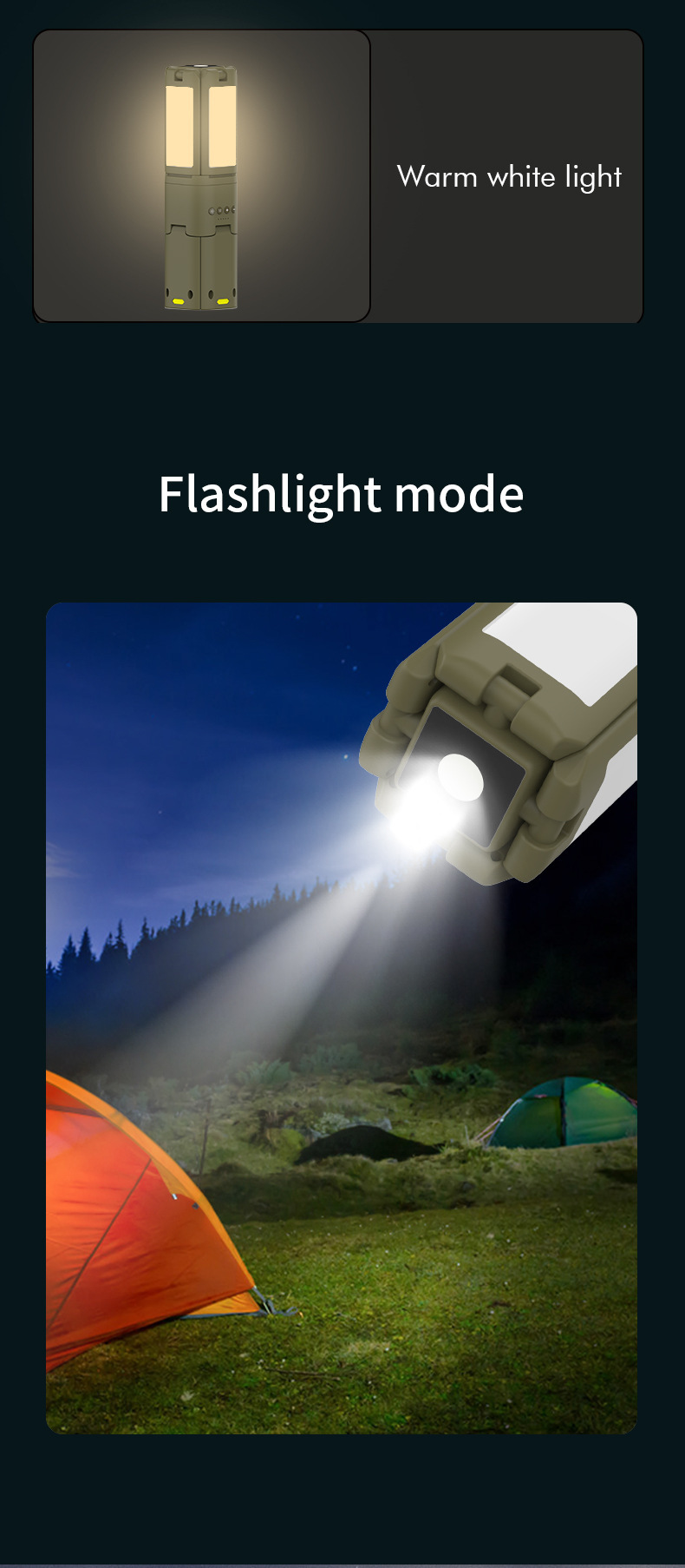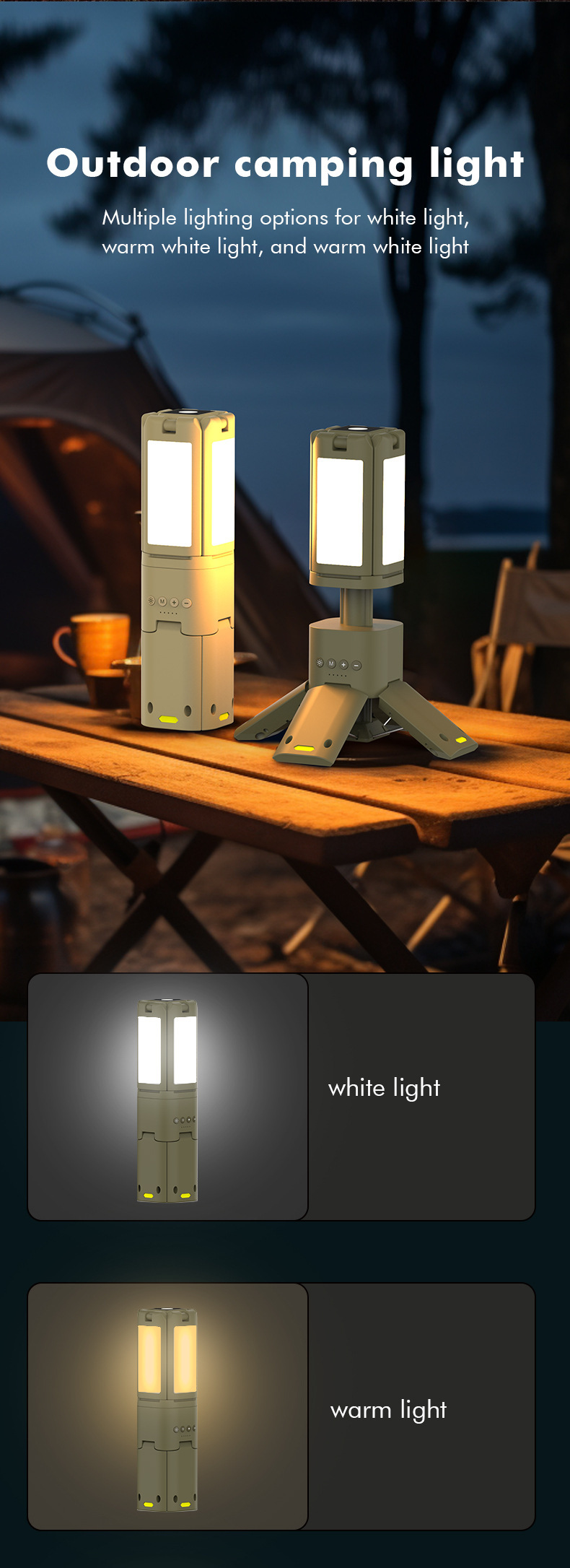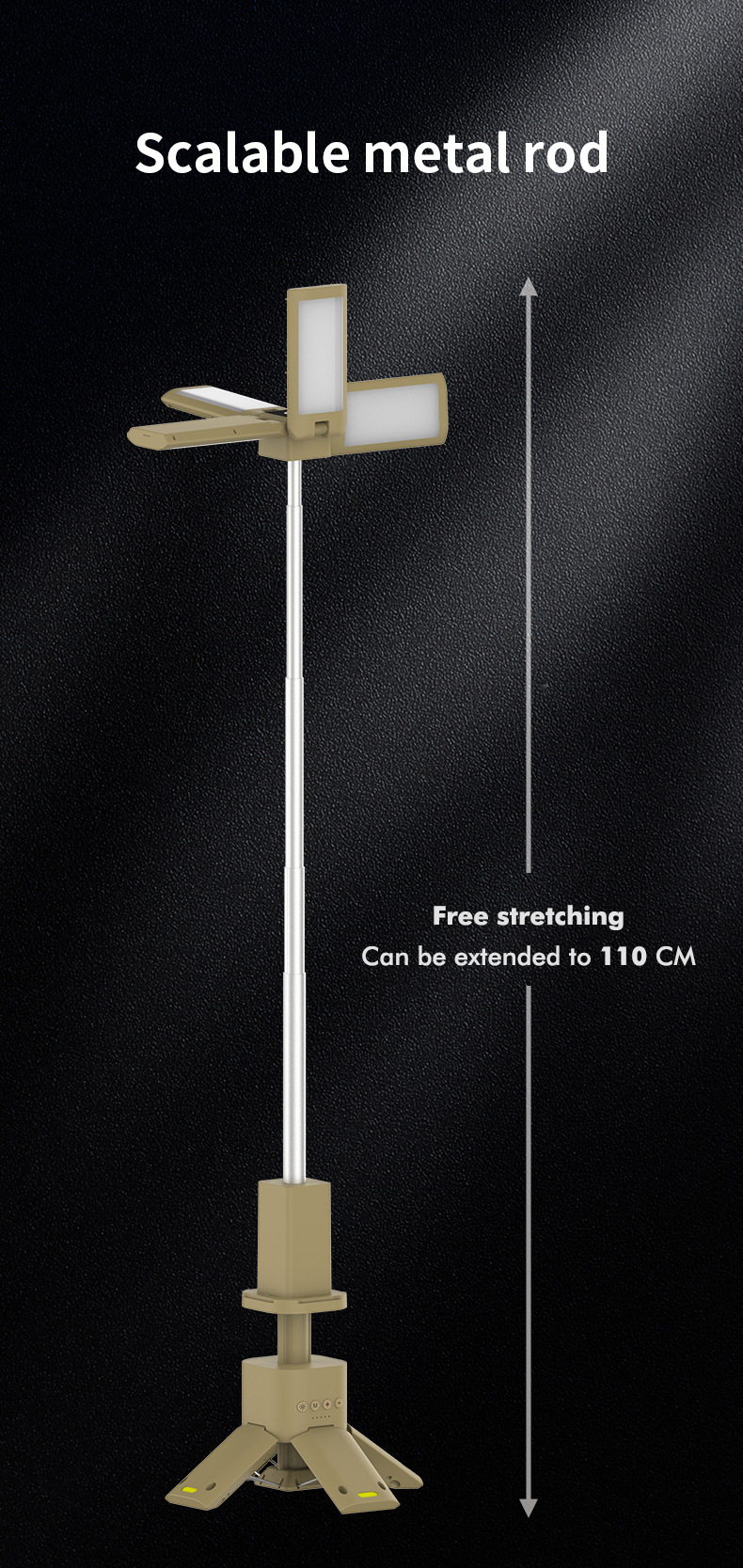 · 【可调节・多功能照明】顶部配有4个叶形灯泡,可垂直180°、水平270°调节,提供多种照明角度。 有四种模式可供选择,灯光可调,按钮控制,方便操作。
