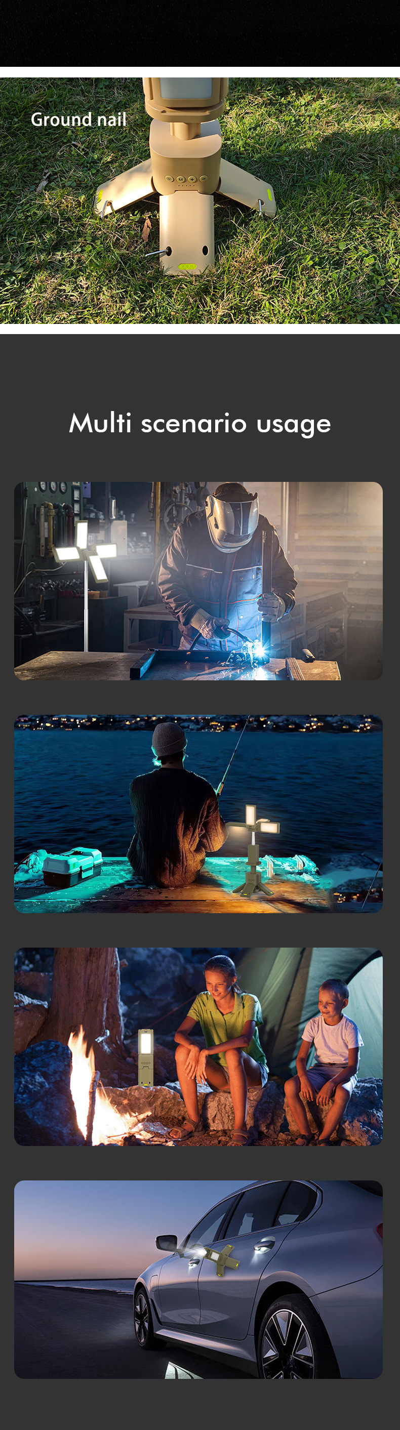 · 【稳定性和亮度】为了确保露营时的稳定性,每包3个桩子。 每盏灯的亮度为1500流明,使用所有四个灯泡时,总亮度为6000流明,在任何情况下都能提供充足的光线。