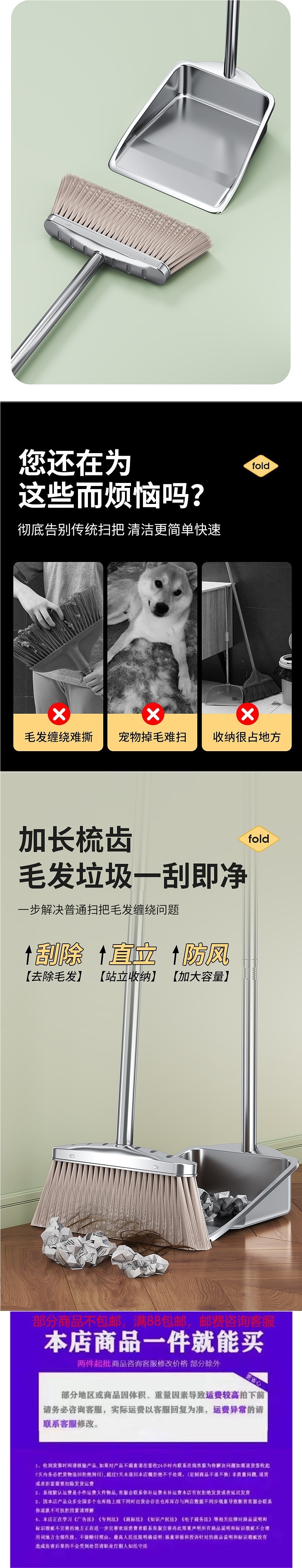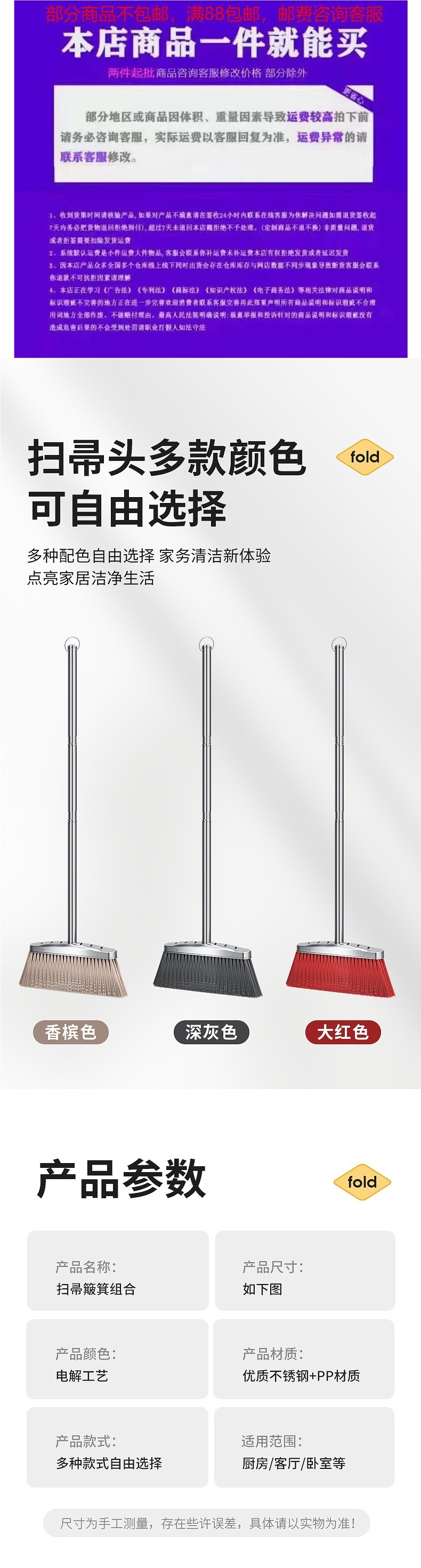 스테인레스 스틸 빗자루 세트 투피스 더스트 팬 가정용 스위핑 브룸 기숙사 빗자루 쓰레기 삽 조합 Extras 두꺼운 가방