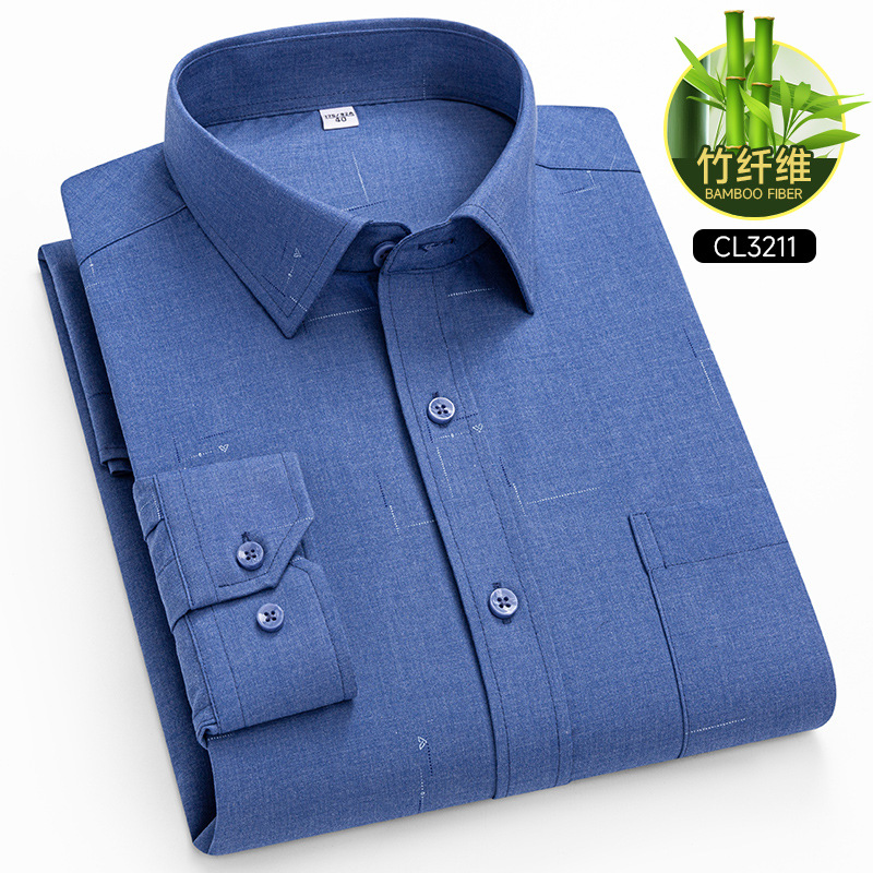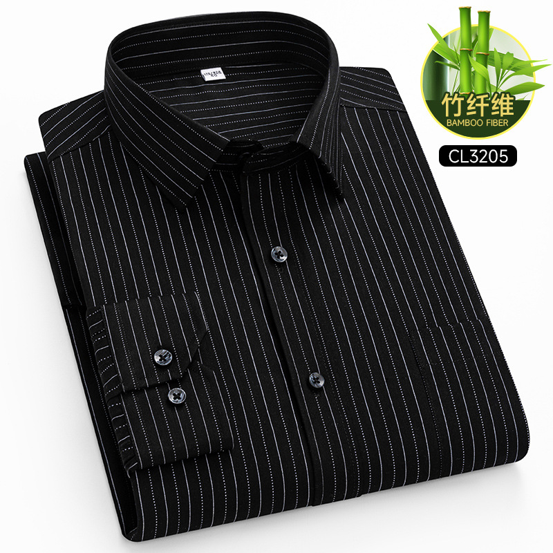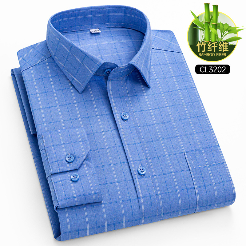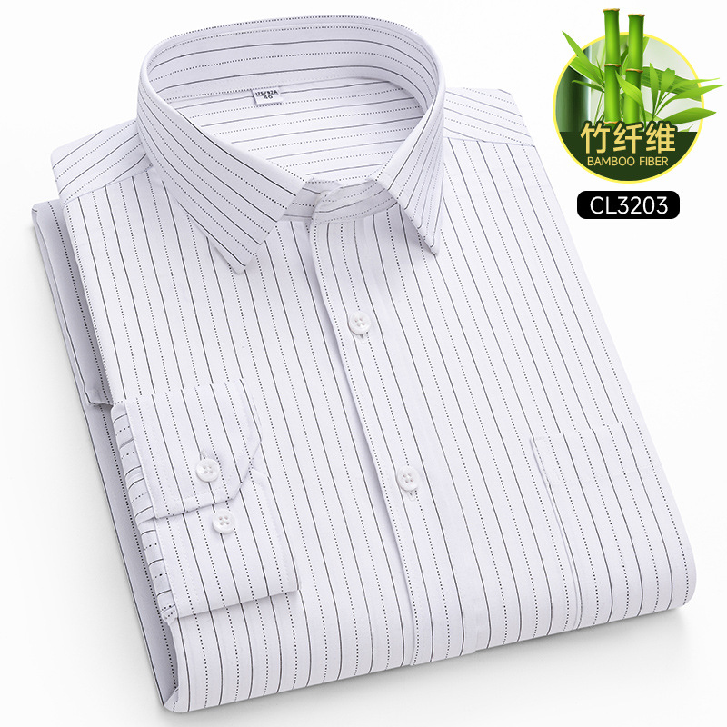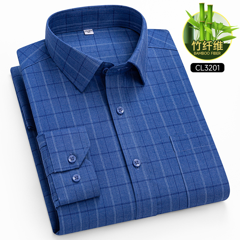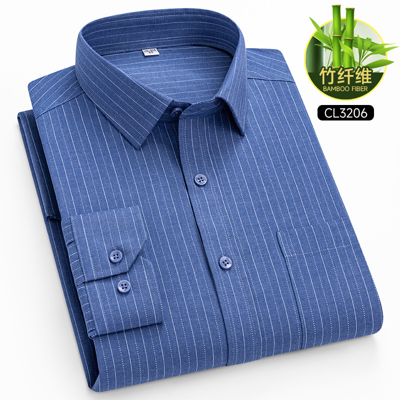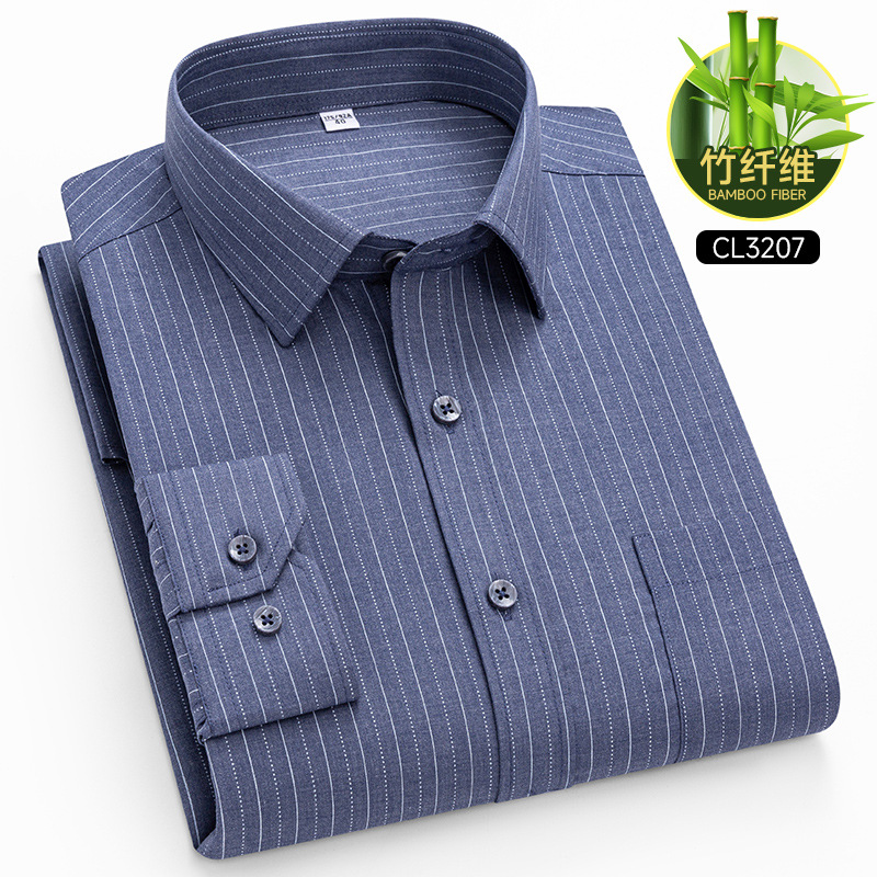 봄 2025 남자 회색 줄무늬 대나무 섬유 중년 및 노인 아빠를위한 긴팔 셔츠 느슨한 캐주얼 셔츠스토어 가기