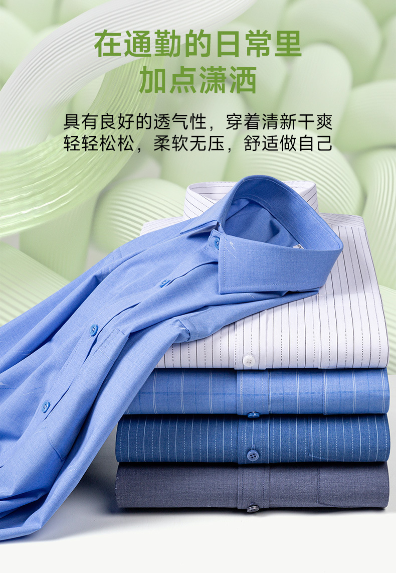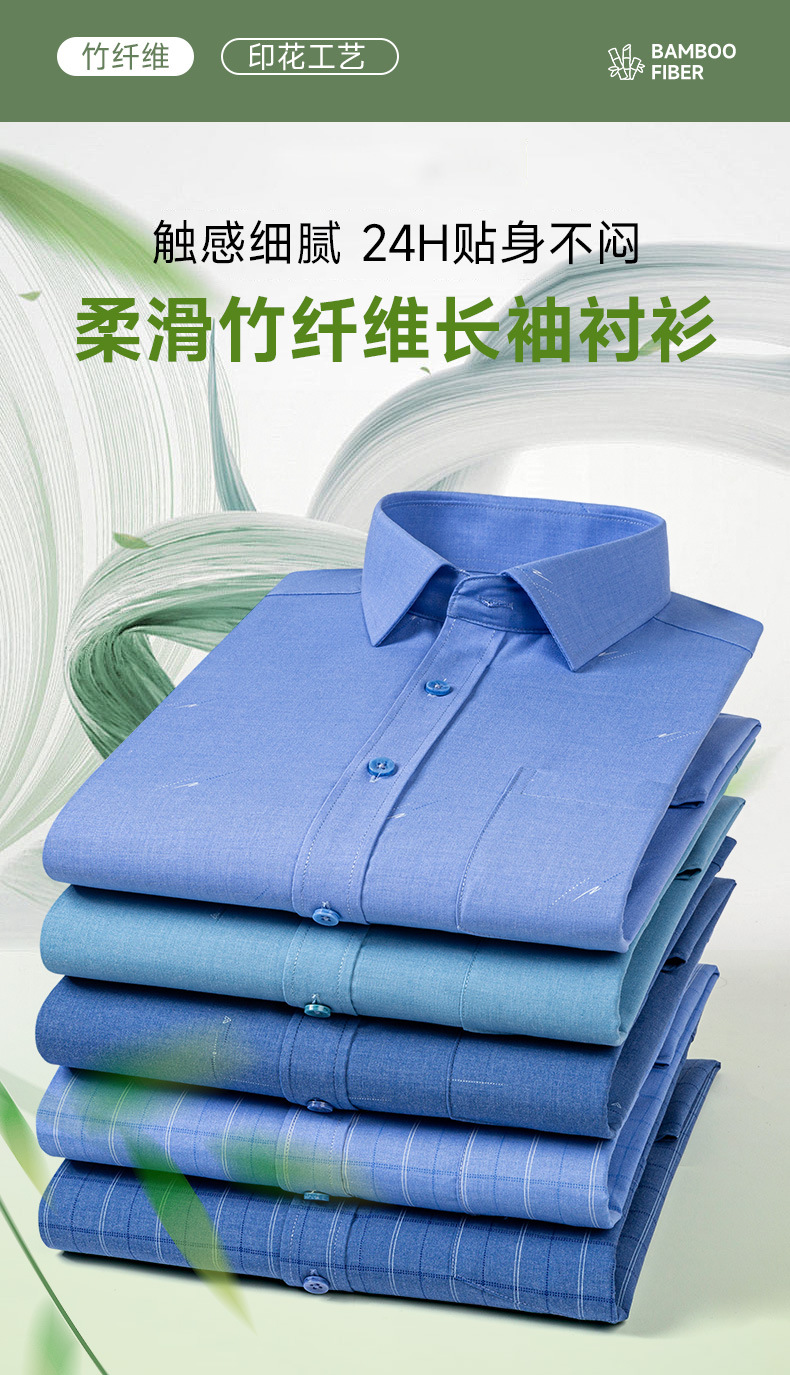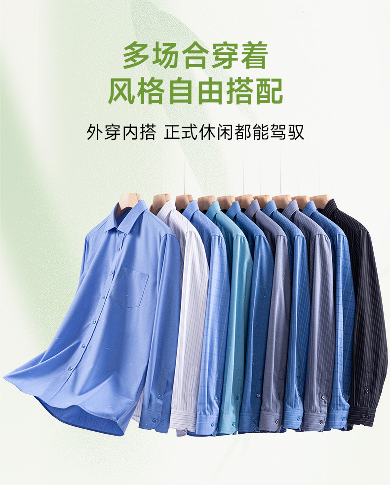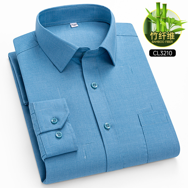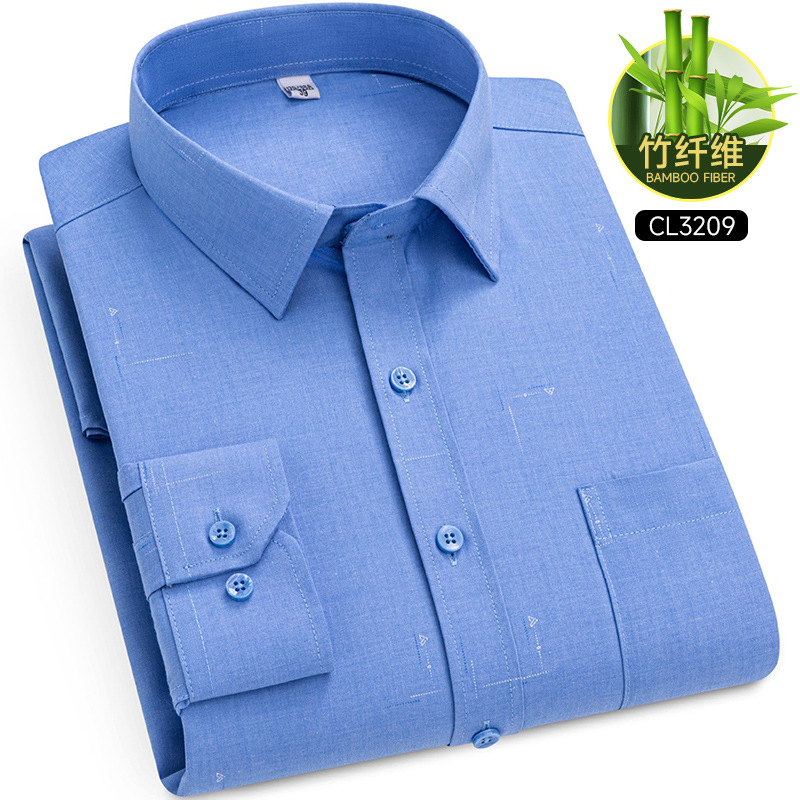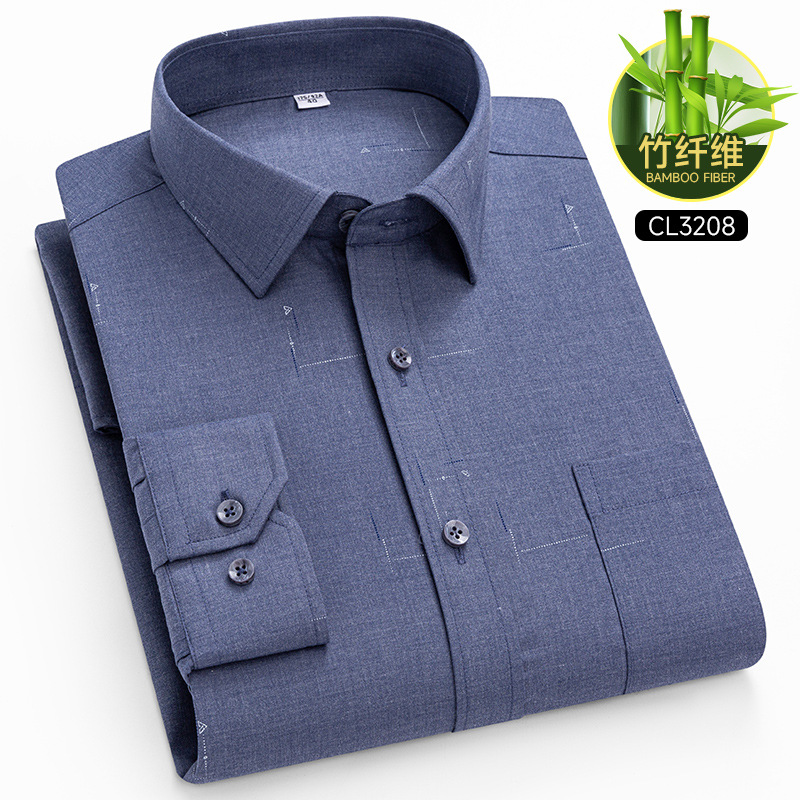봄 2025 남자 회색 줄무늬 대나무 섬유 중년 및 노인 아빠를위한 긴팔 셔츠 느슨한 캐주얼 셔츠스토어 가기