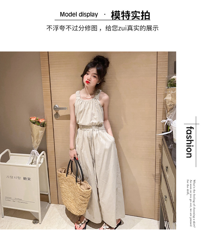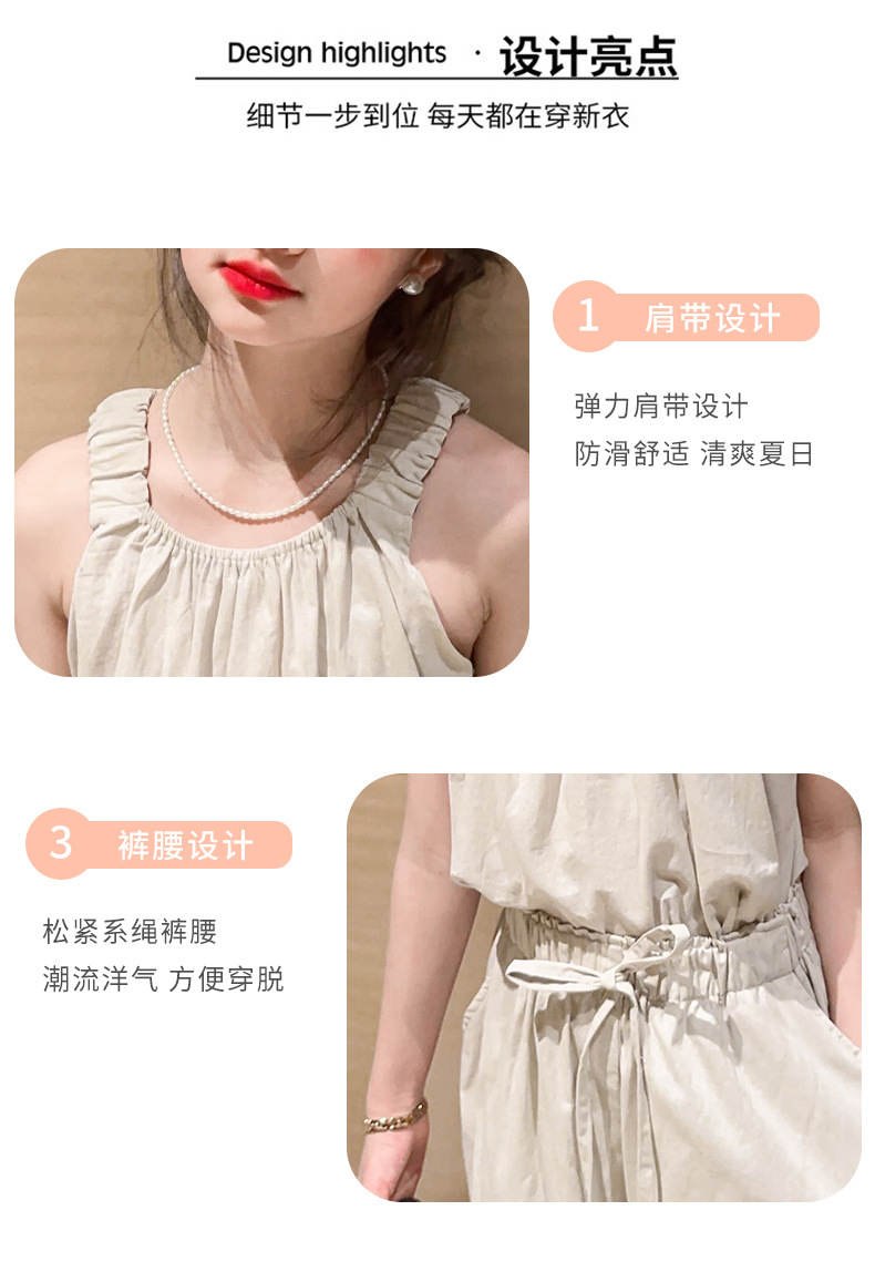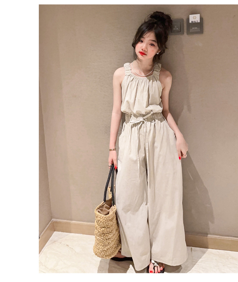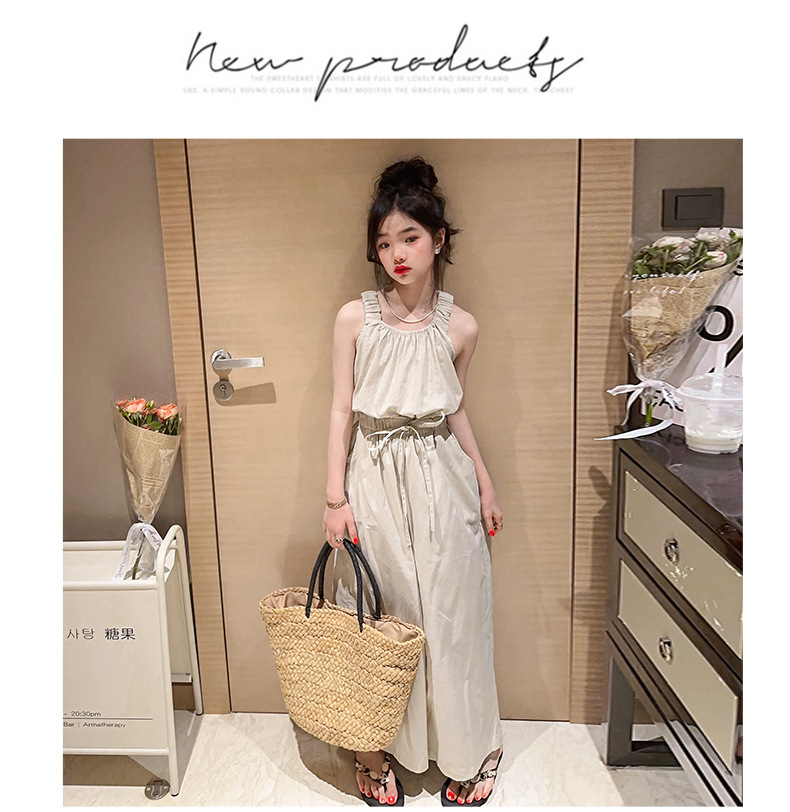 여름 소녀 슬링 세트 씻은 면화와 리넨 조끼 스트레이트 레그 팬츠 유행 미디어와 큰 어린이 신선한 홀리데이 스타일 투피스 세트스토어 가기