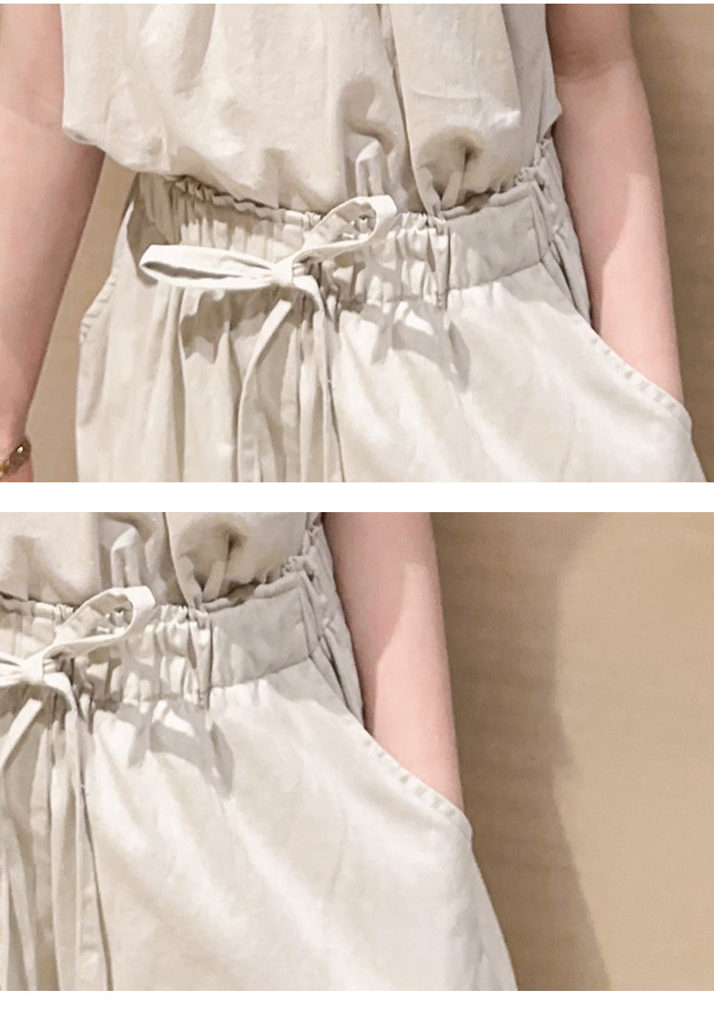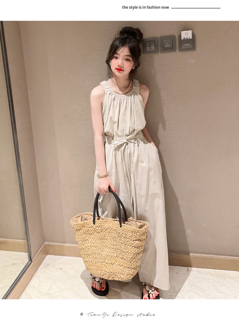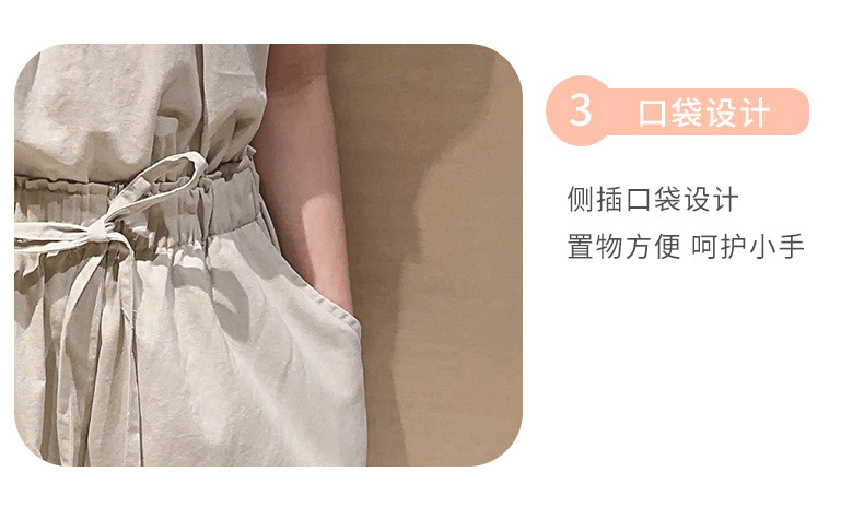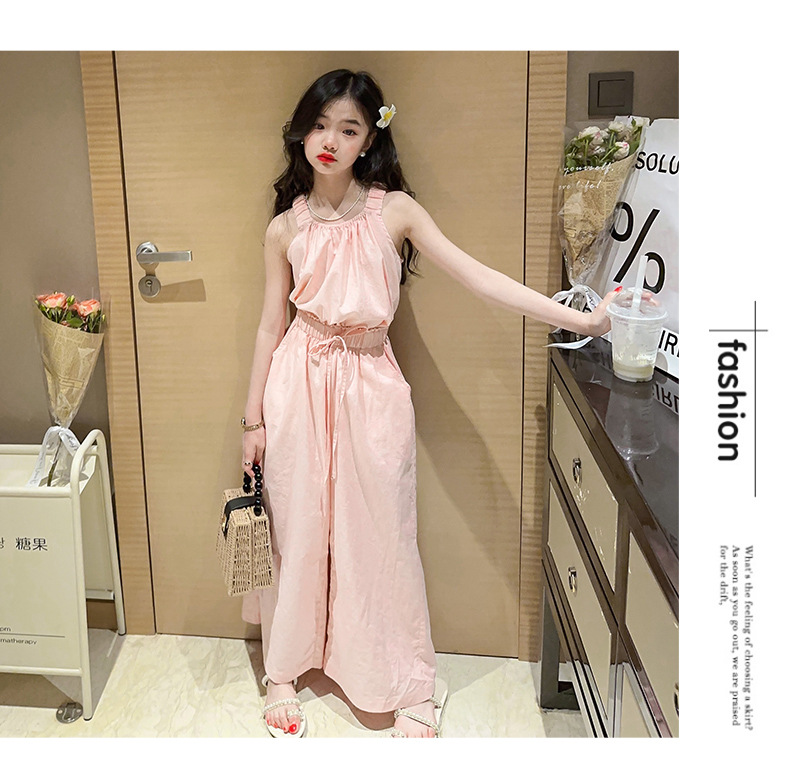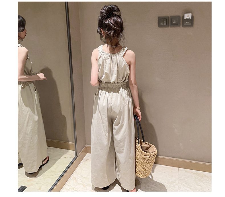 여름 소녀 슬링 세트 씻은 면화와 리넨 조끼 스트레이트 레그 팬츠 유행 미디어와 큰 어린이 신선한 홀리데이 스타일 투피스 세트스토어 가기