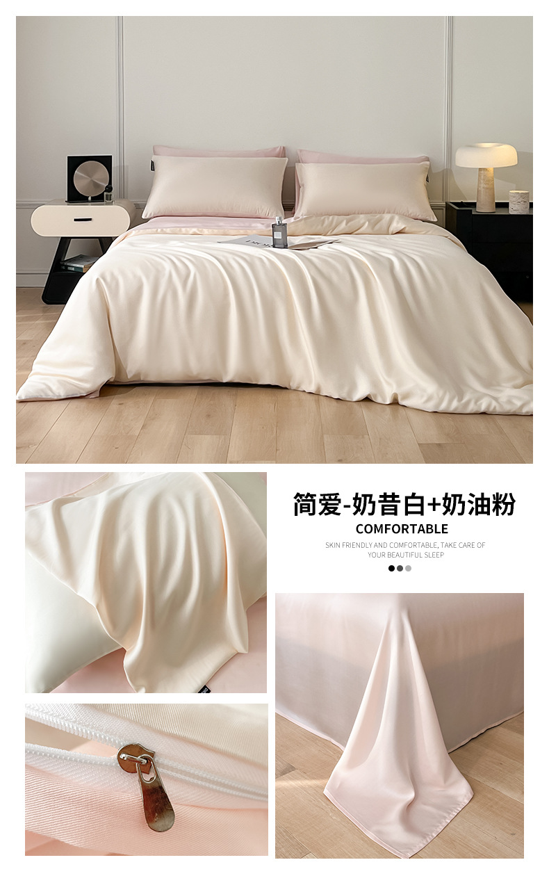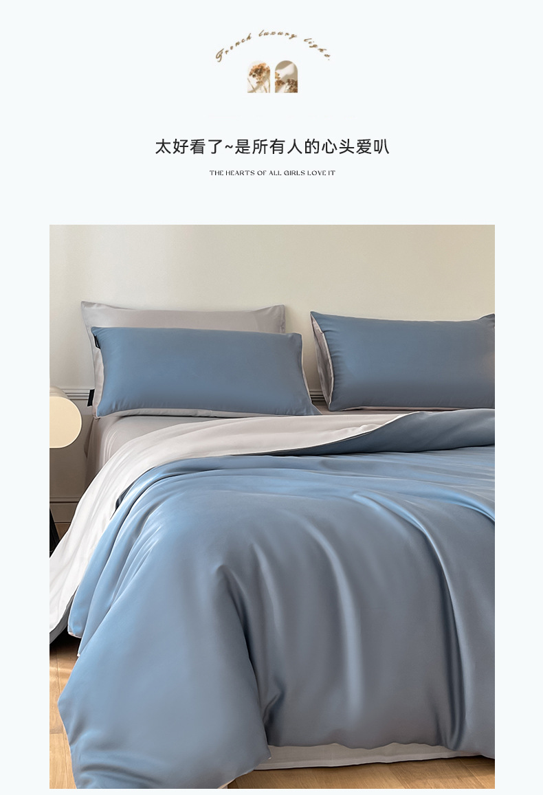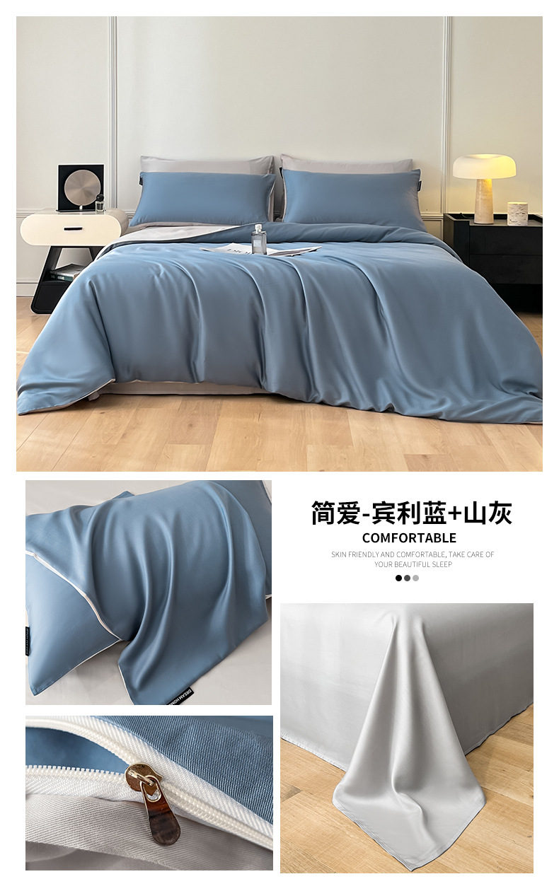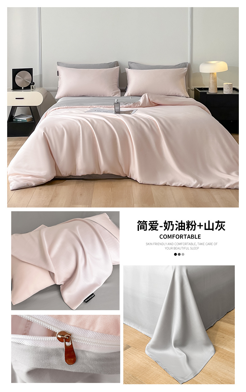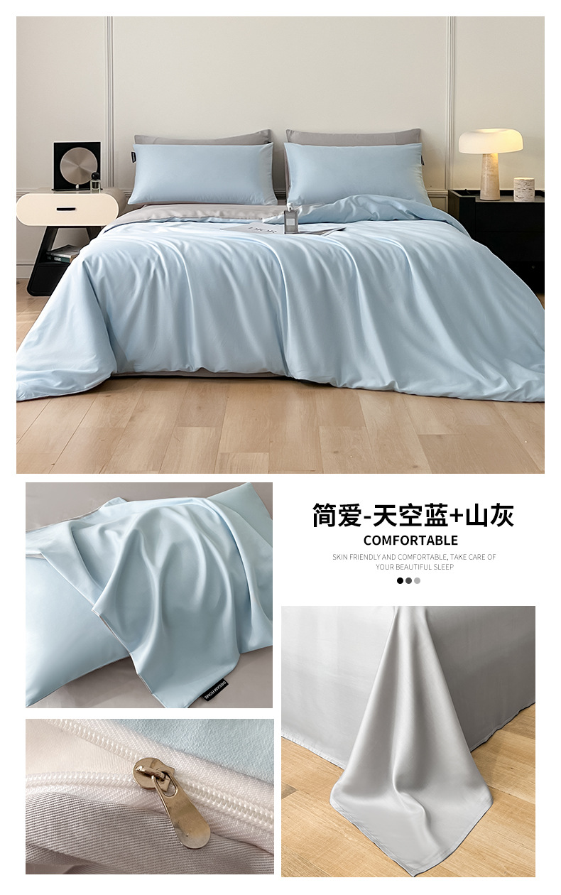 가벼운 고급 솔리드 컬러 아이스 실크 4 피스 세트 여름 쿨 텐셀 기숙사 3 피스 세트 하이 엔드 침구 도매스토어 가기