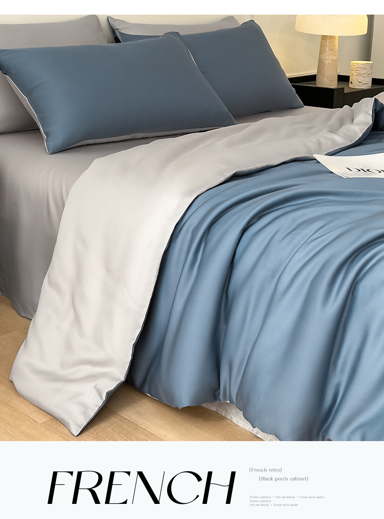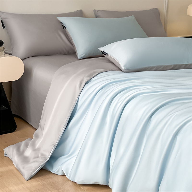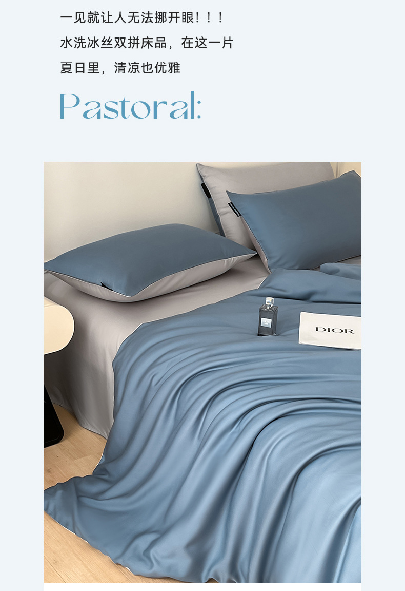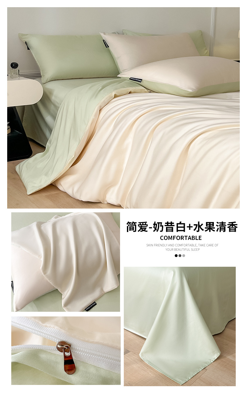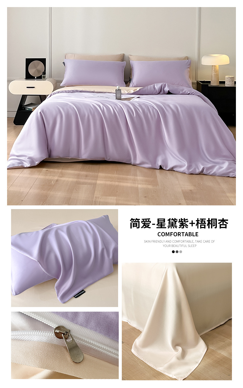 가벼운 고급 솔리드 컬러 아이스 실크 4 피스 세트 여름 쿨 텐셀 기숙사 3 피스 세트 하이 엔드 침구 도매스토어 가기