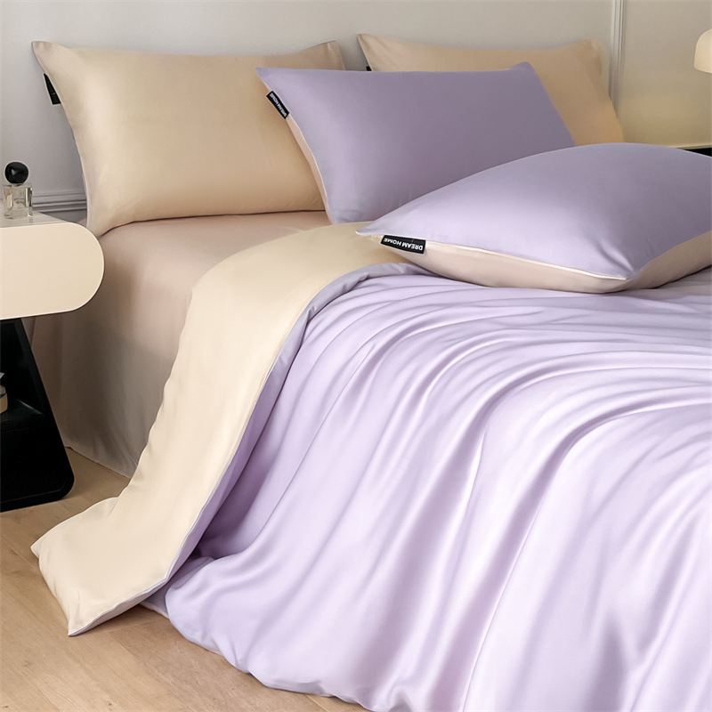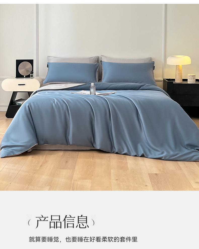 가벼운 고급 솔리드 컬러 아이스 실크 4 피스 세트 여름 쿨 텐셀 기숙사 3 피스 세트 하이 엔드 침구 도매