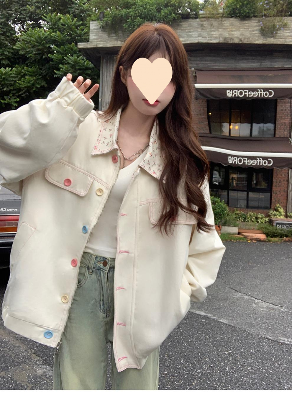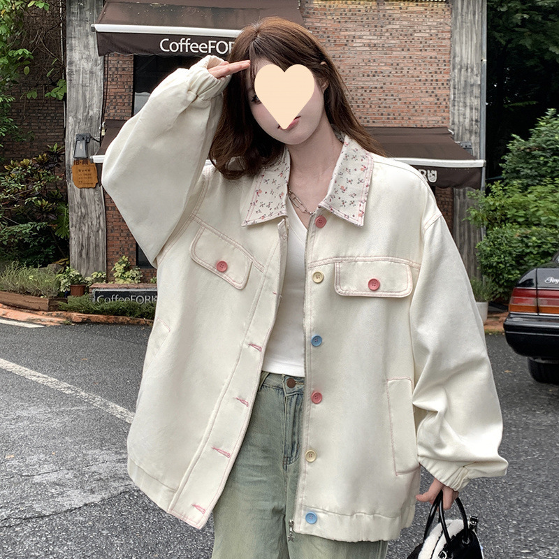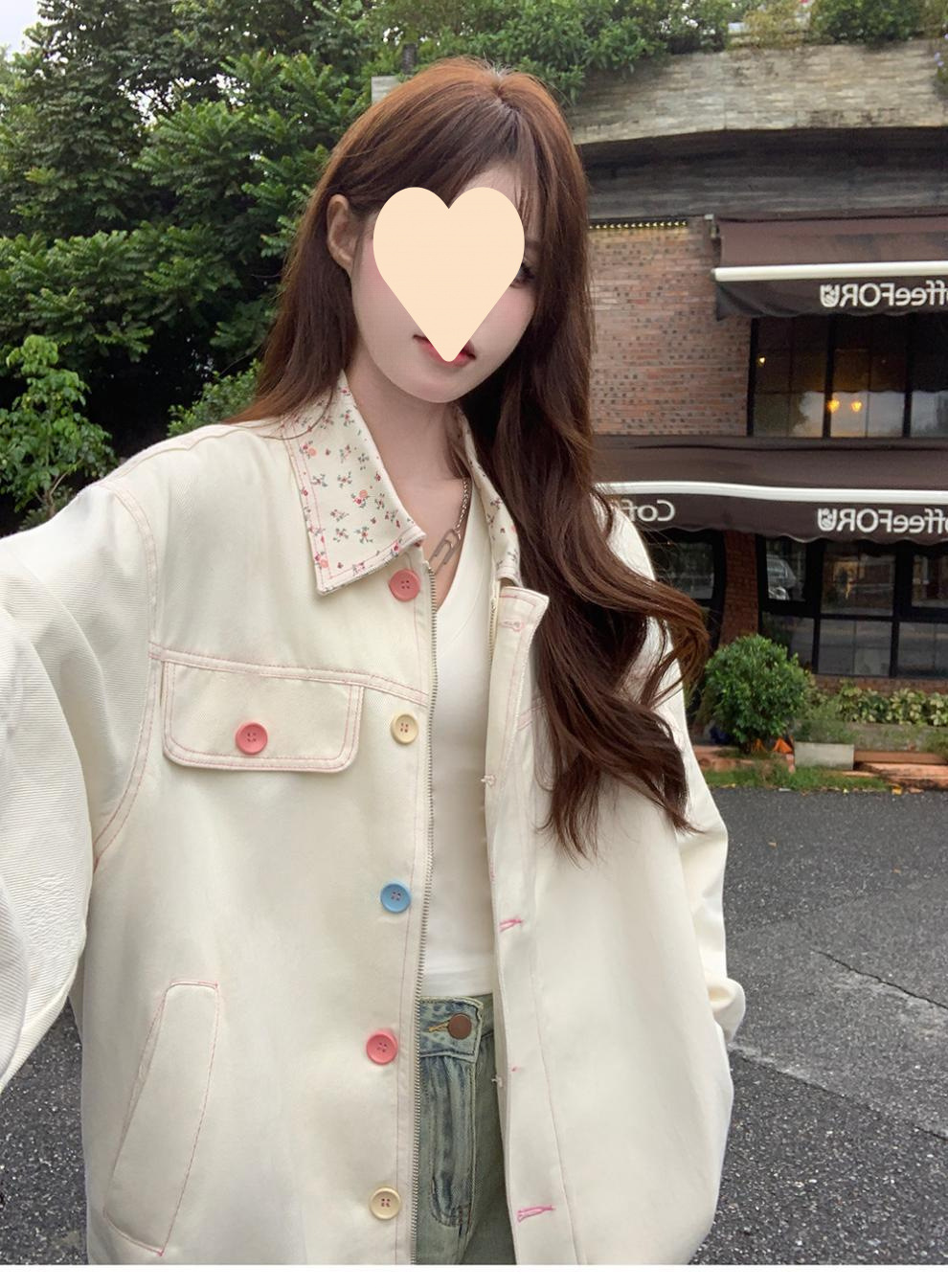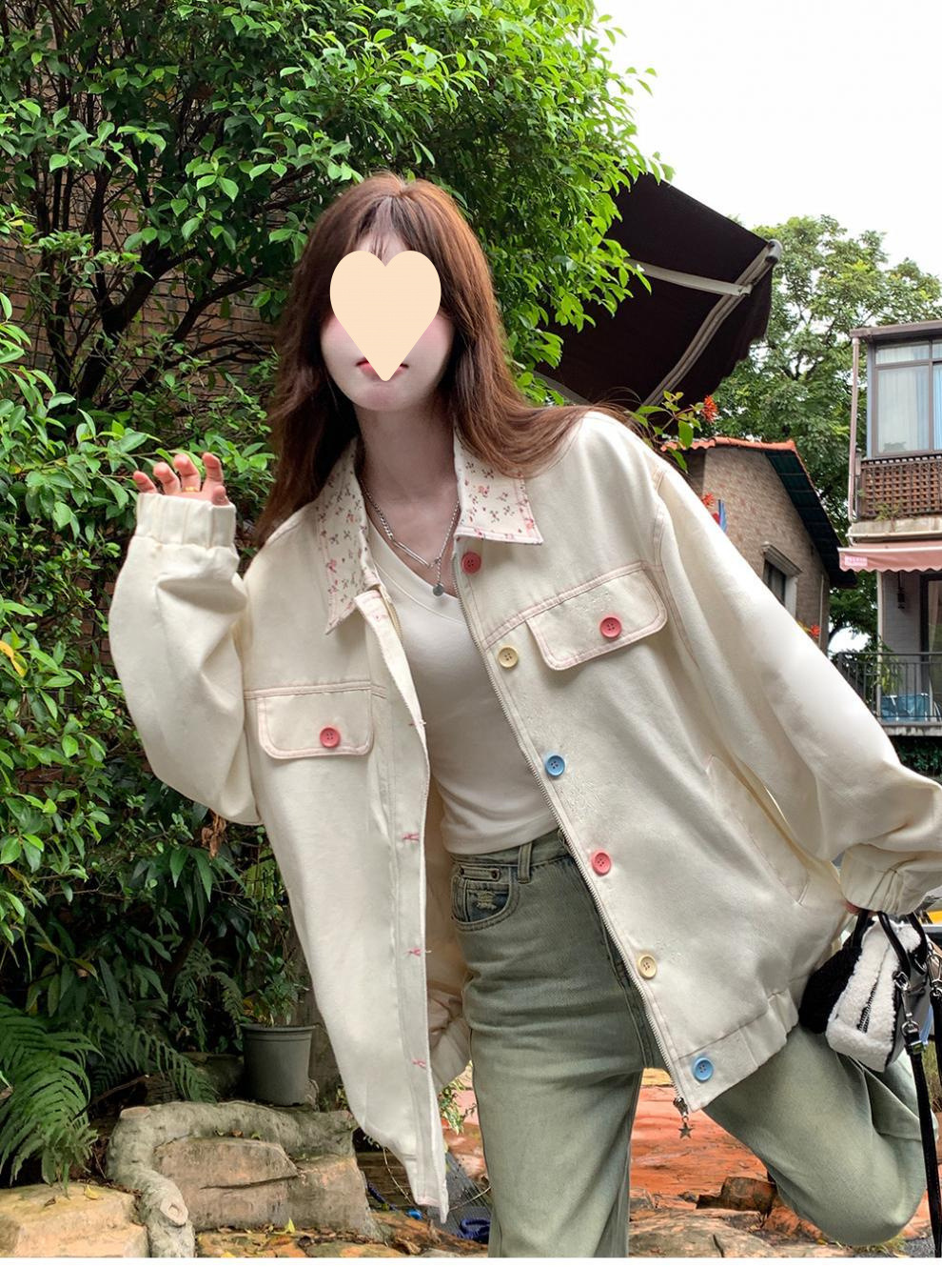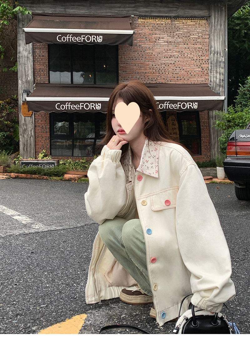 2025 봄 가을 트렌디 한 느슨한 올 매치 재킷 코튼 새로운 달콤한 꽃 옷깃 데님 코트 여성 의류스토어 가기