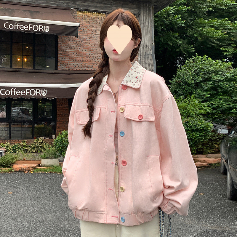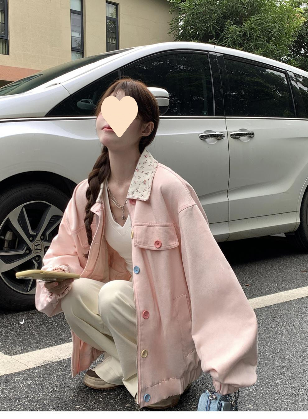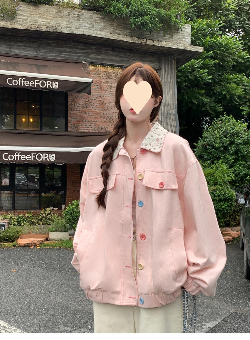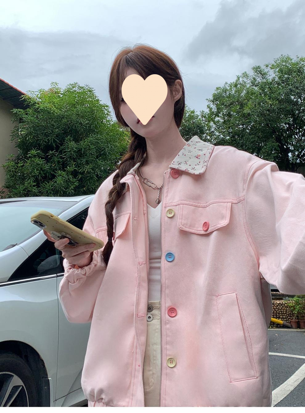 2025 봄 가을 트렌디 한 느슨한 올 매치 재킷 코튼 새로운 달콤한 꽃 옷깃 데님 코트 여성 의류스토어 가기