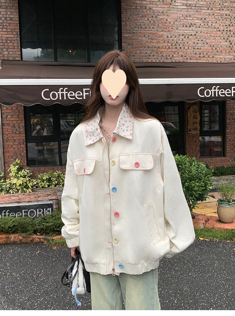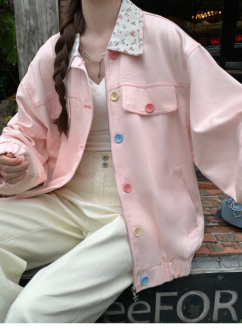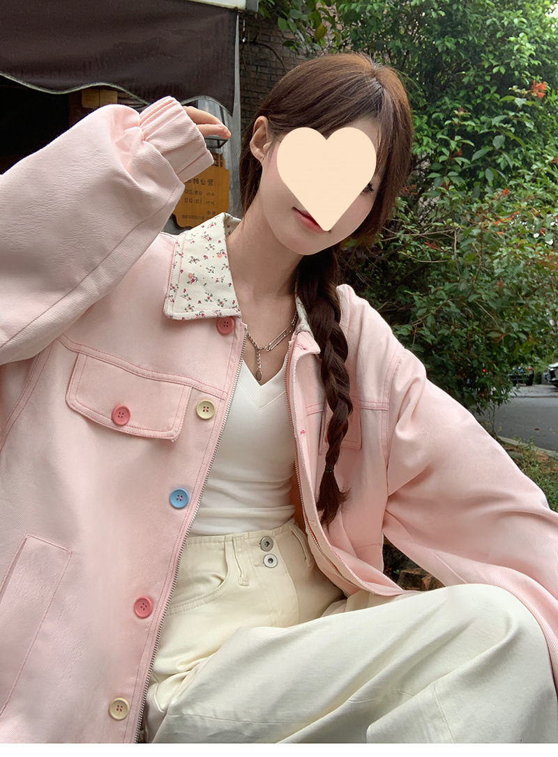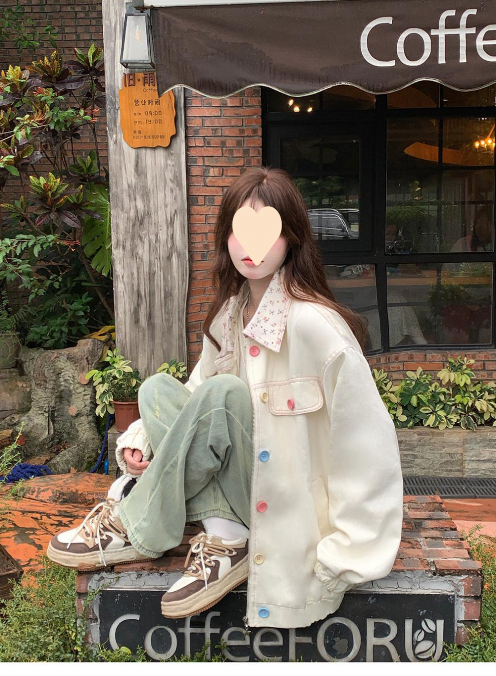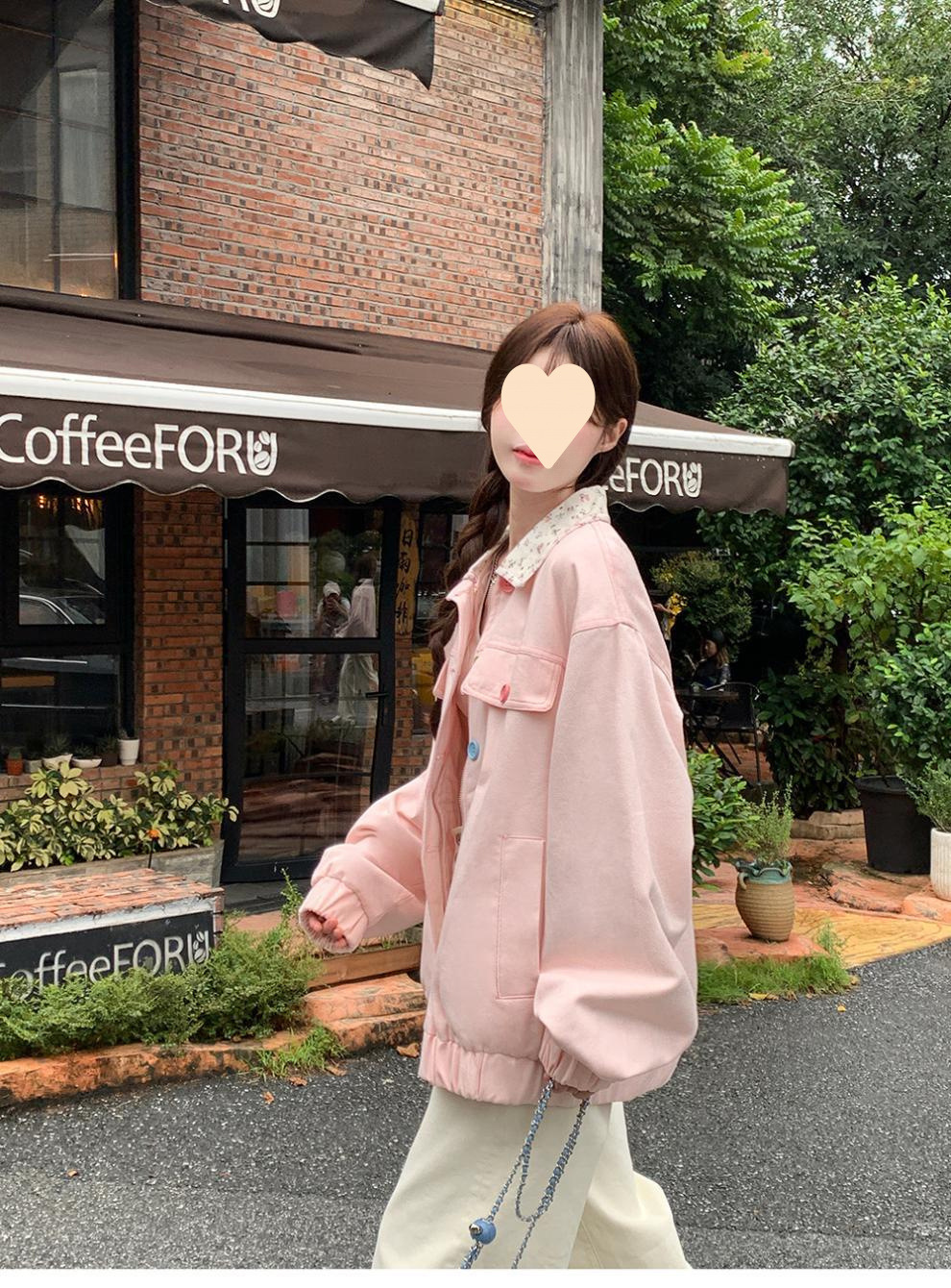 2025 봄 가을 트렌디 한 느슨한 올 매치 재킷 코튼 새로운 달콤한 꽃 옷깃 데님 코트 여성 의류스토어 가기