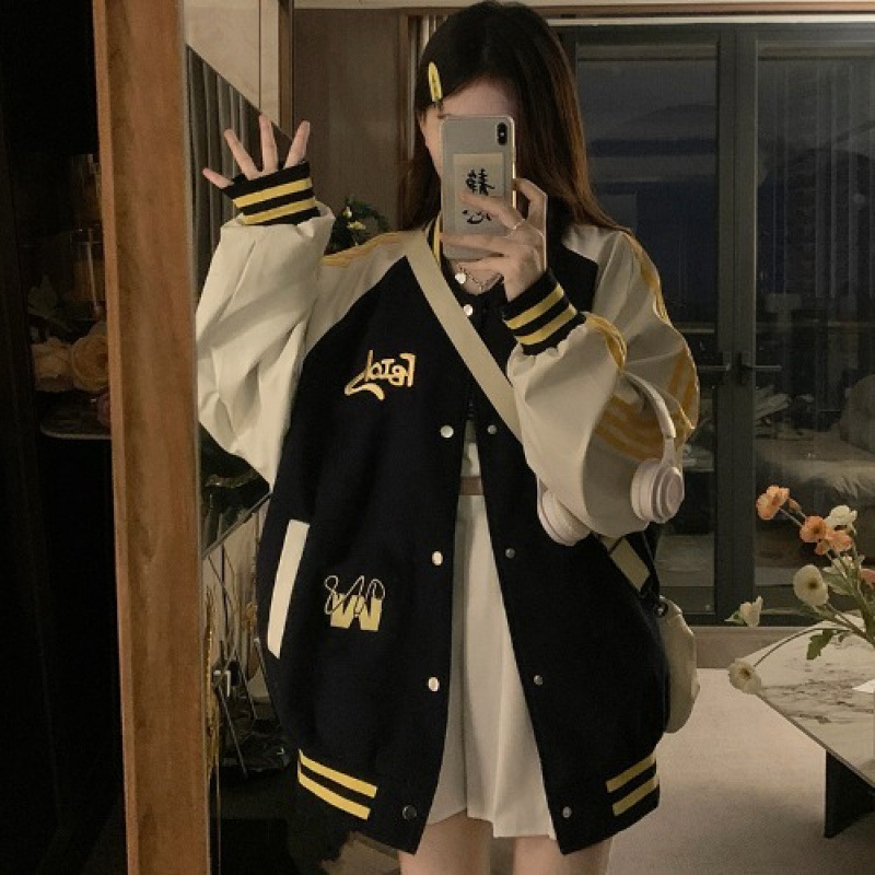 • A33 네이비블루 [가죽소매 더블 레이어 루즈버전]