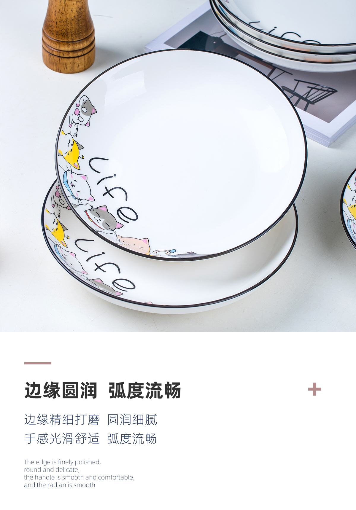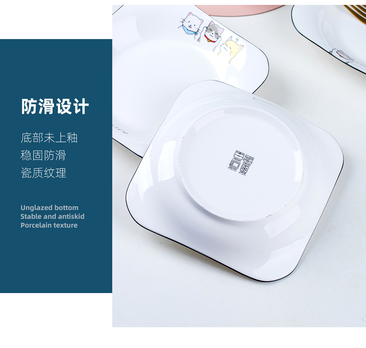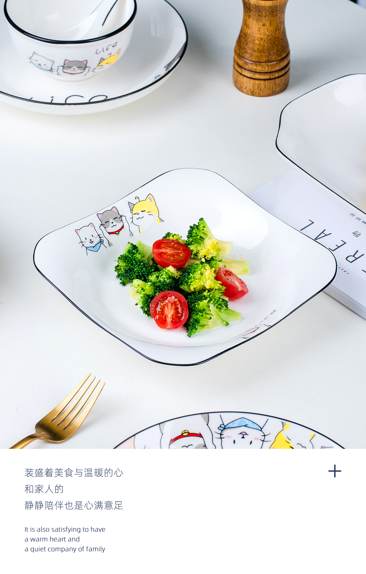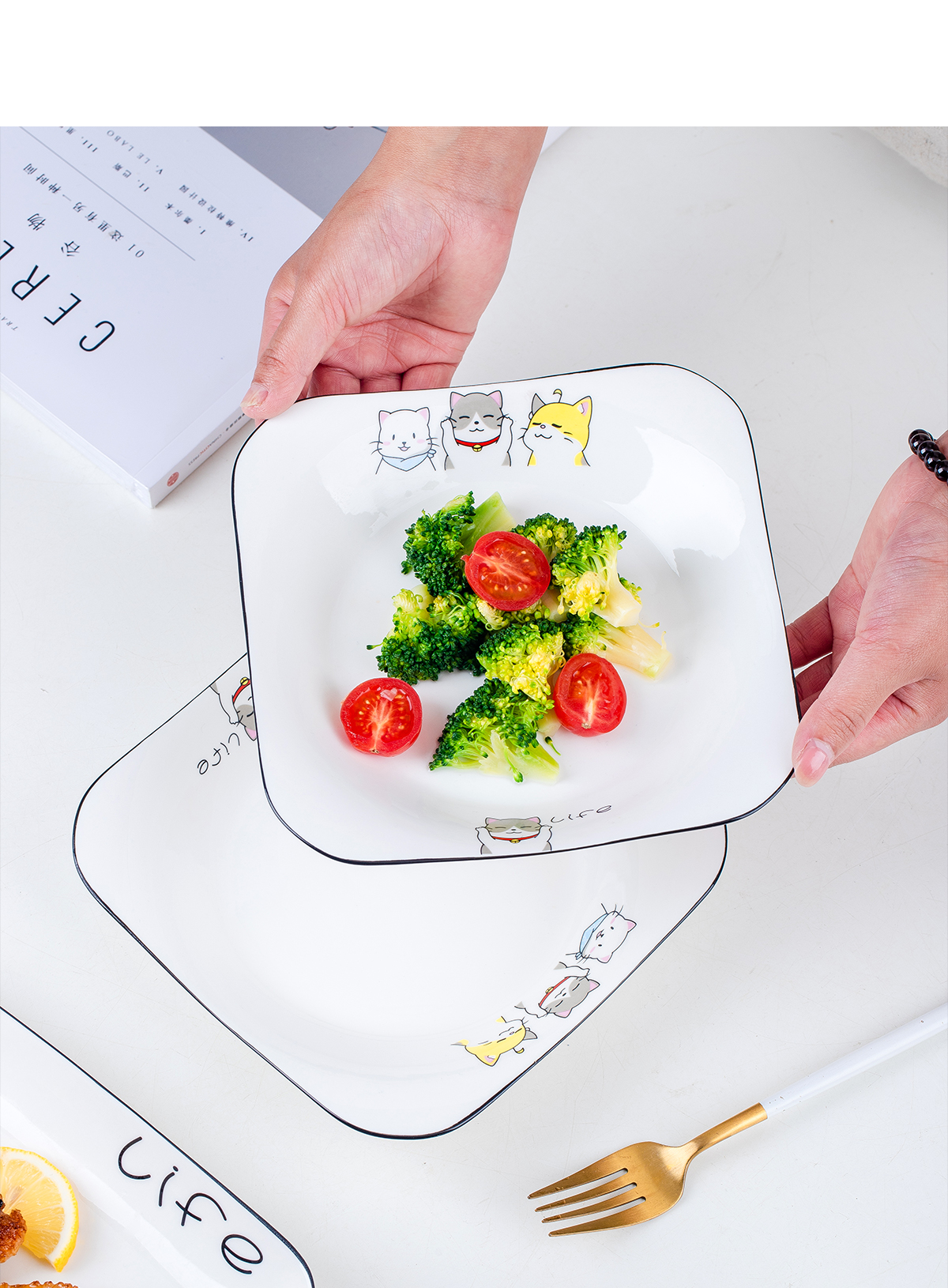 4 PC 세라믹 고양이 플레이트 가정용 접시 쌀판 수프 플레이트 창조적 인 인터넷 축하 식기 조합 린다