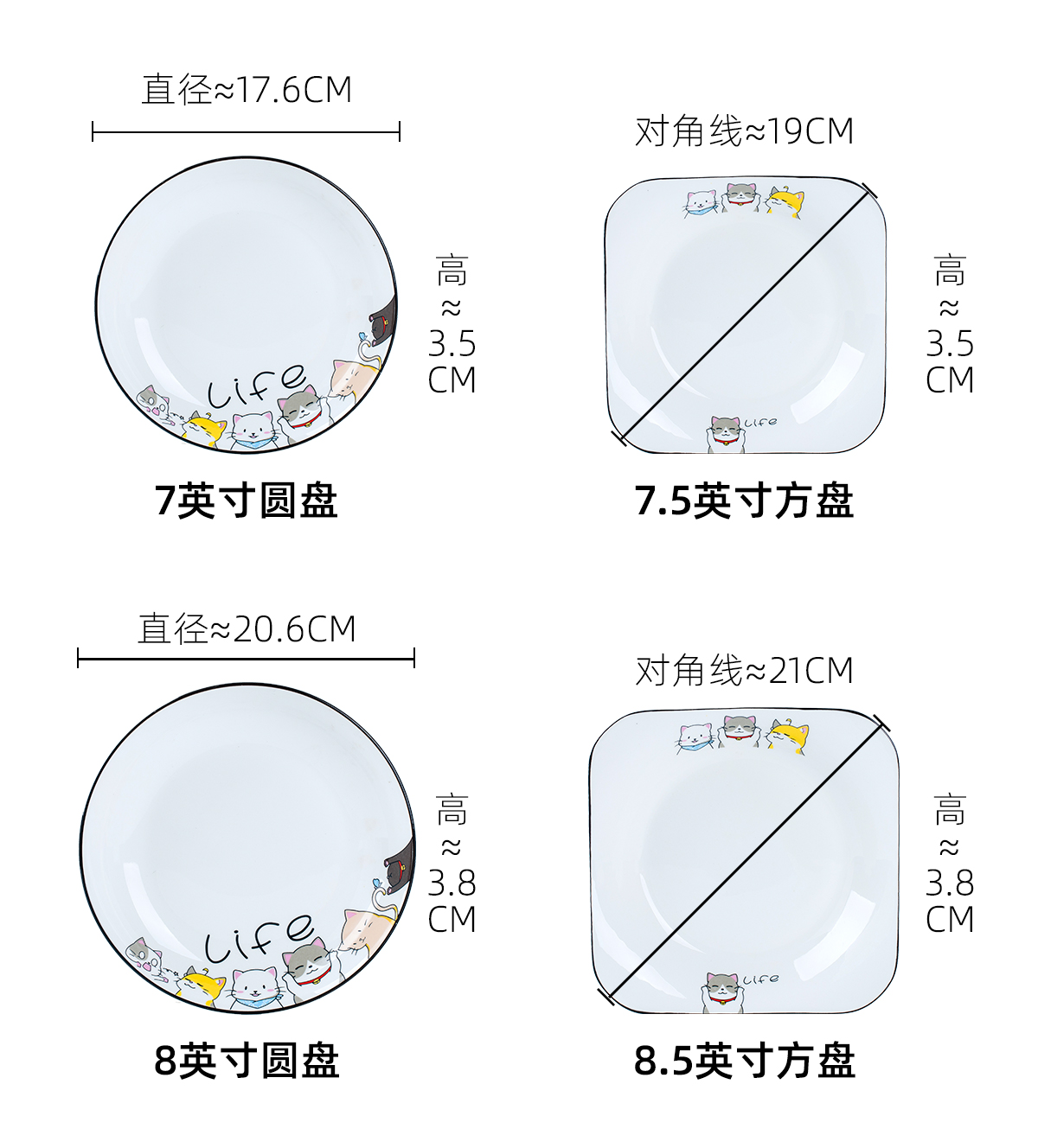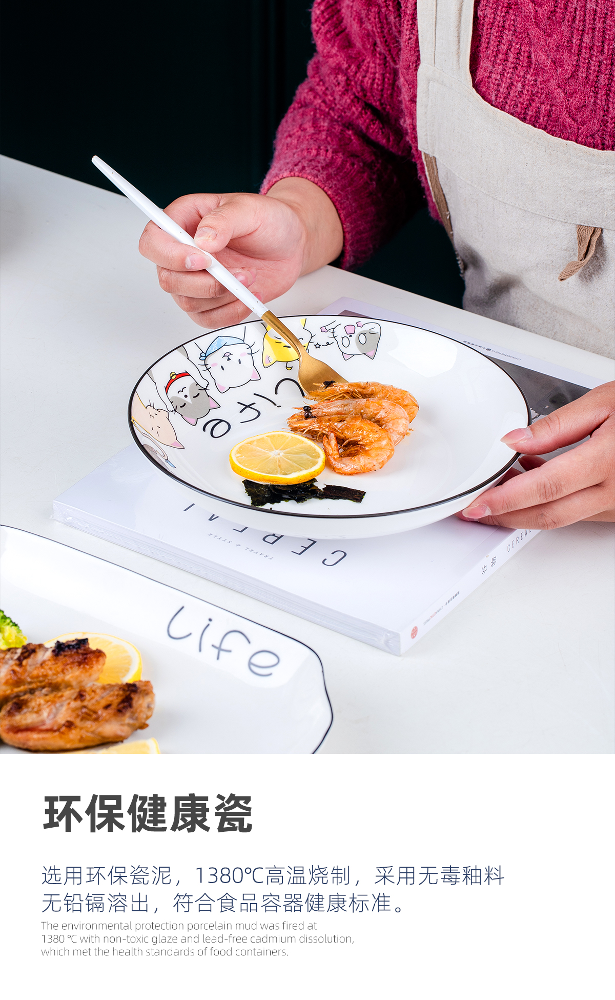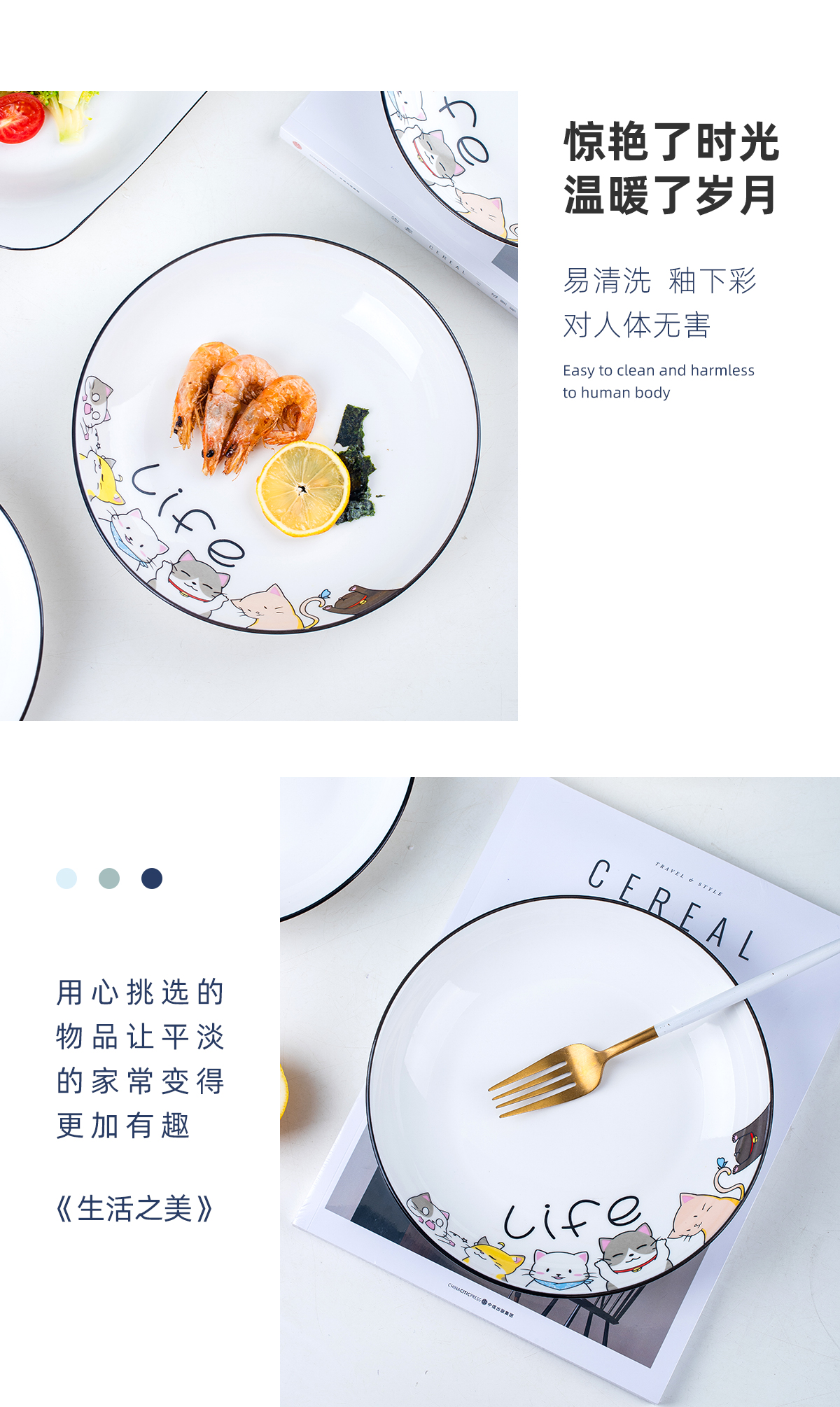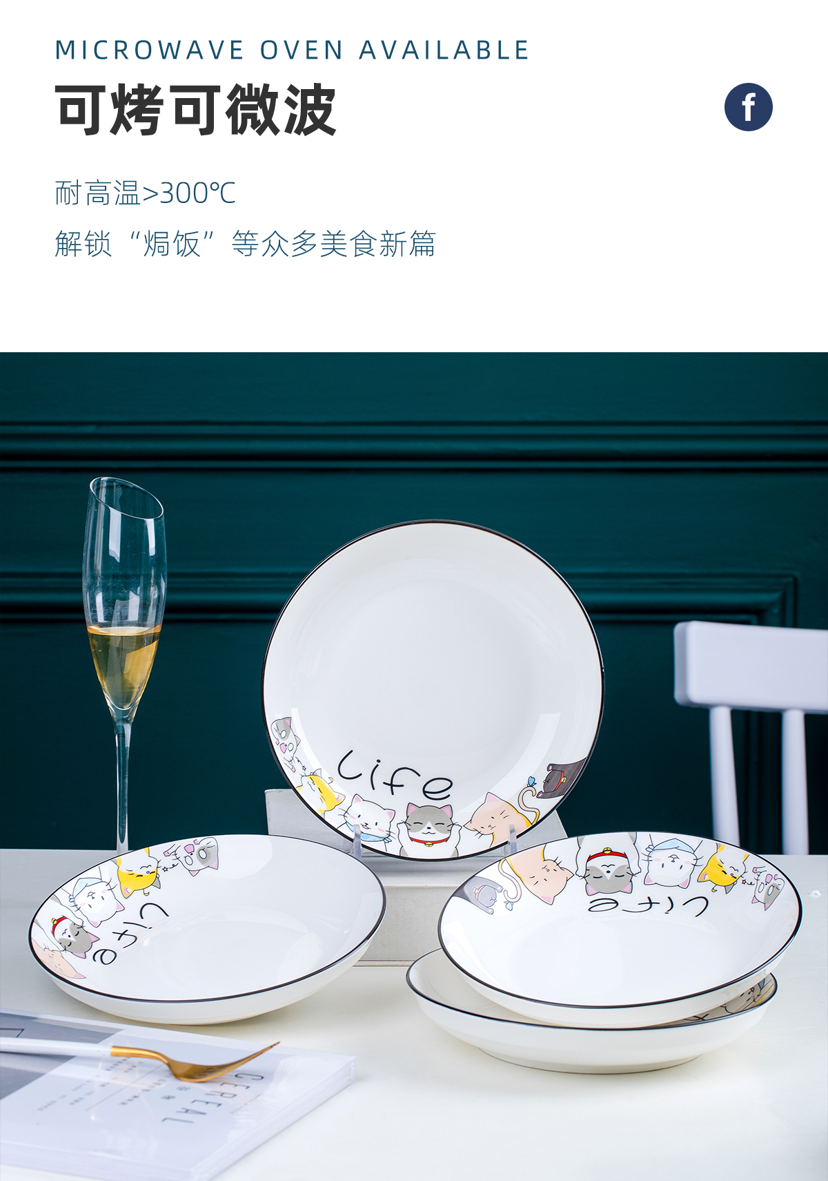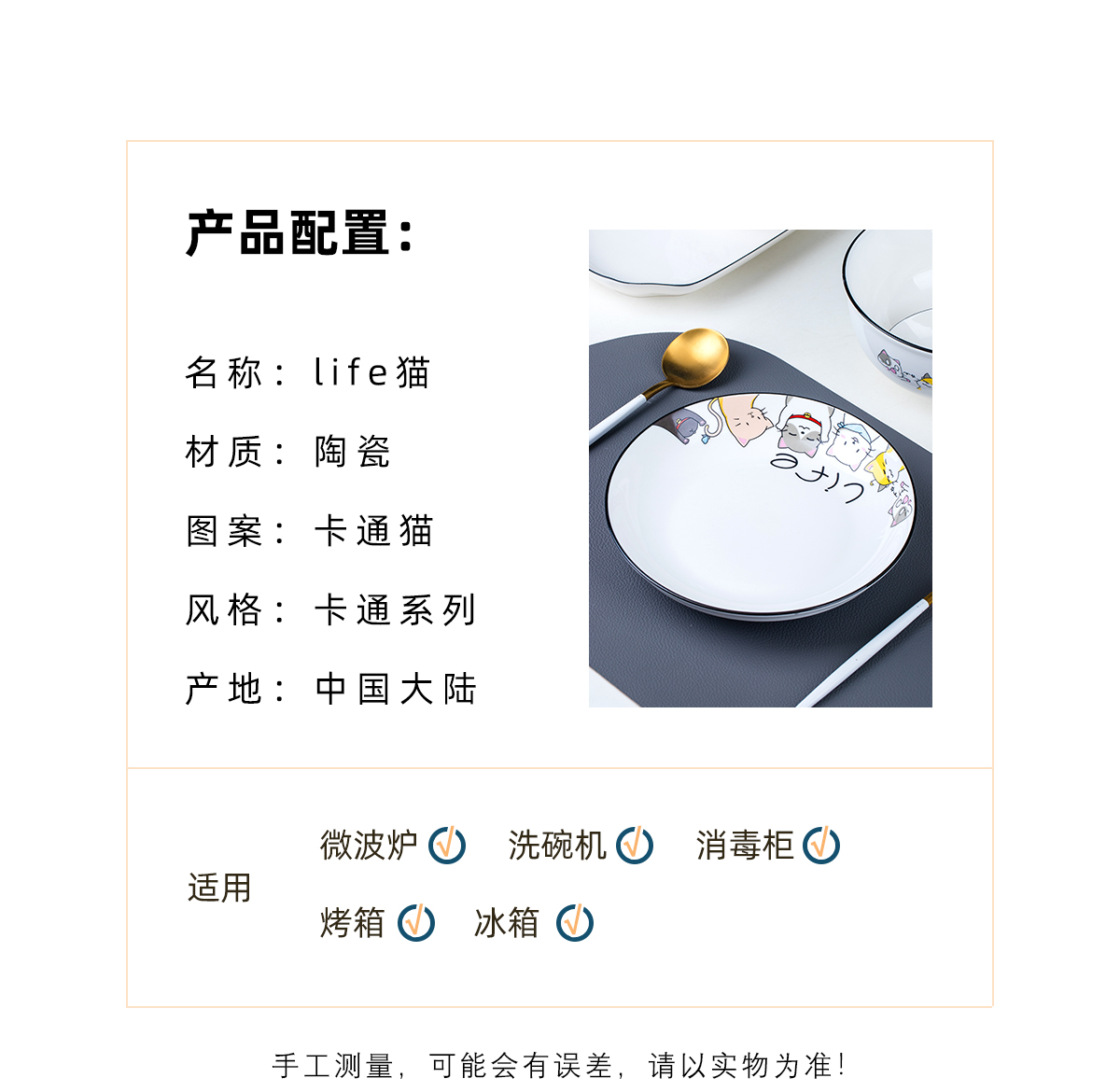 4 PC 세라믹 고양이 플레이트 가정용 접시 쌀판 수프 플레이트 창조적 인 인터넷 축하 식기 조합 린다