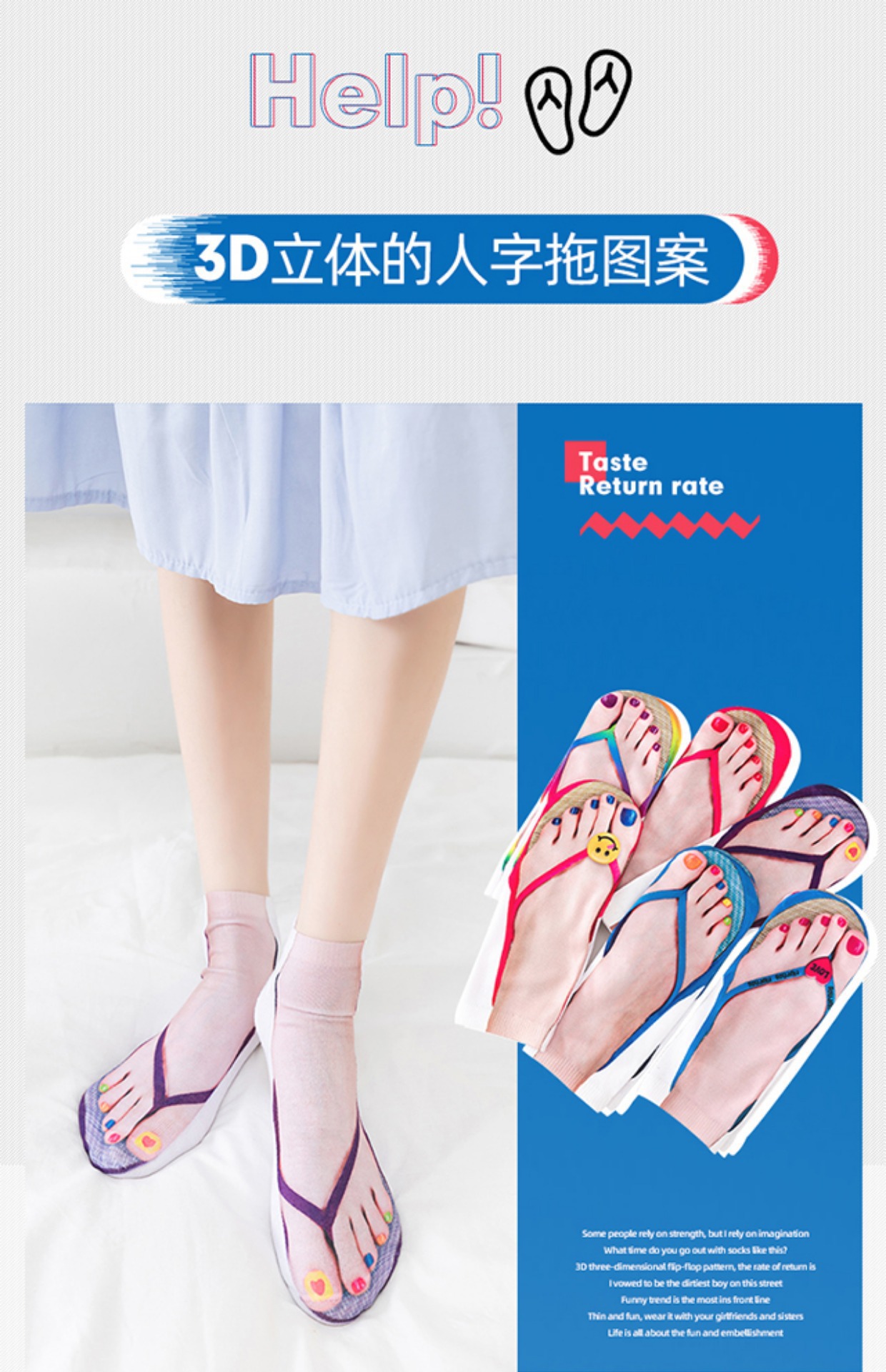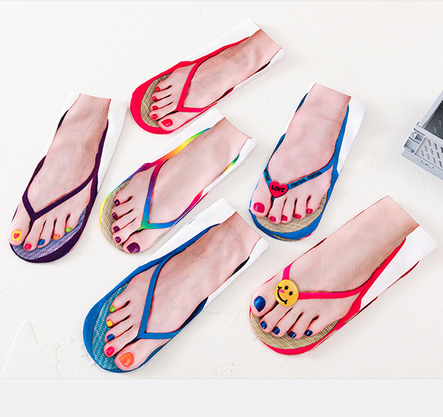 여자용 슬리퍼 양말, 재미있는 틱톡 같은 스타일, 3D 프린트, 재미있는 매니큐어, 인터넷 연예인 스타일, 순면 재미있는 양말스토어 가기
