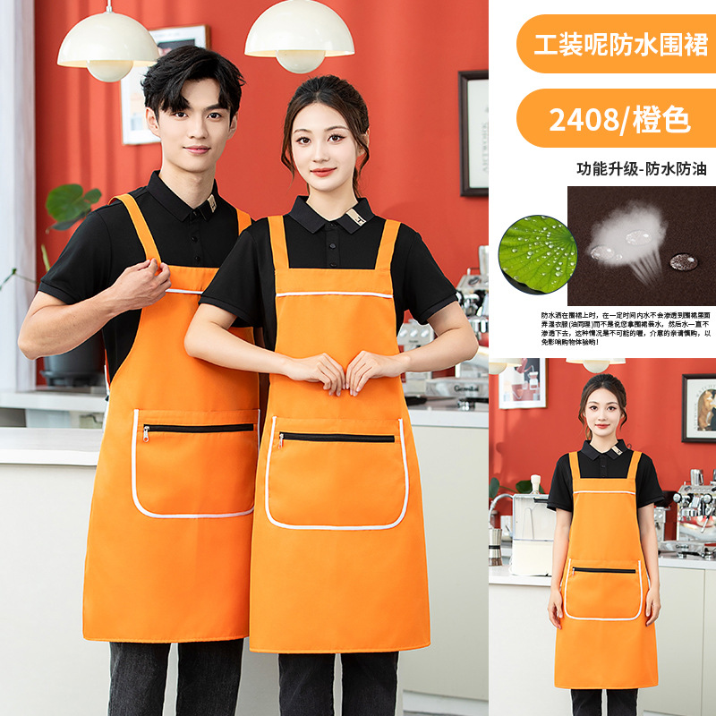 로고가 인쇄된 지퍼 포켓 앞치마 작업복 케이터링 주방 커피 밀크티 숍 남성과 여성을 위한 방수 앞치마