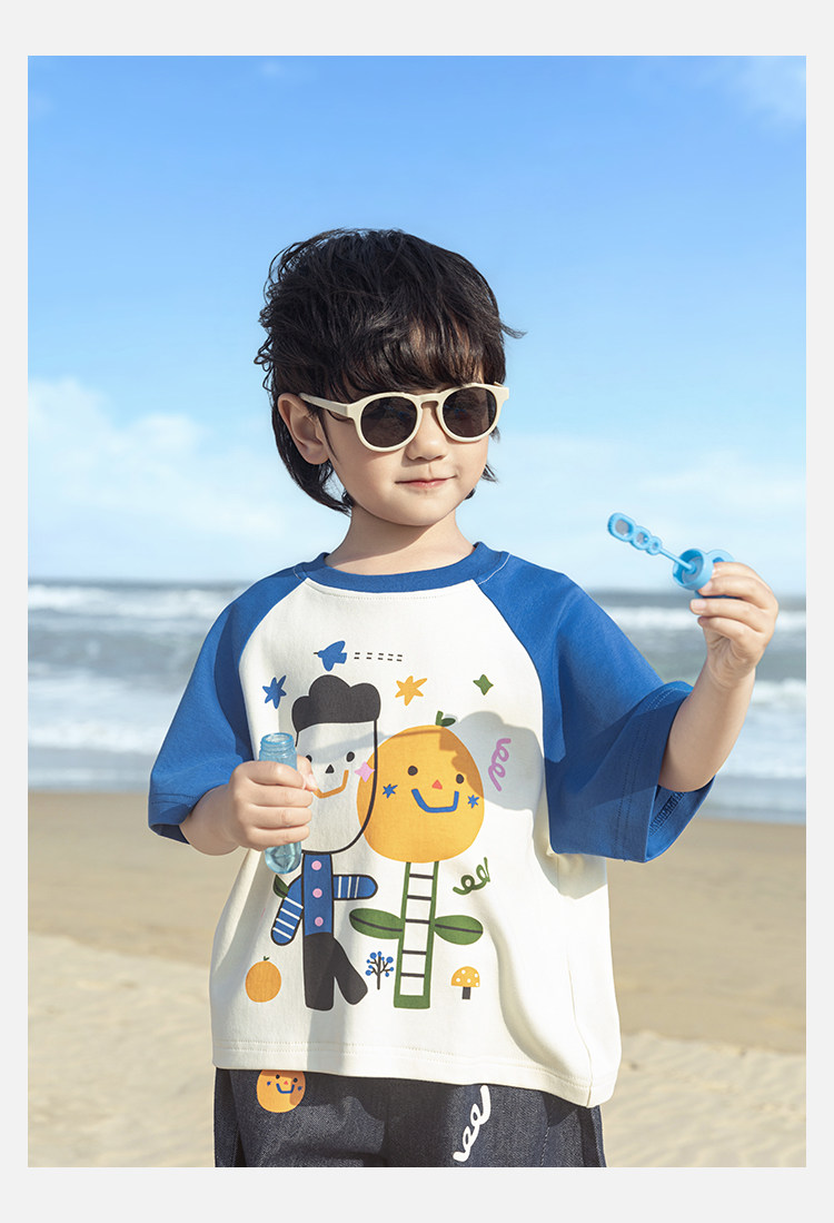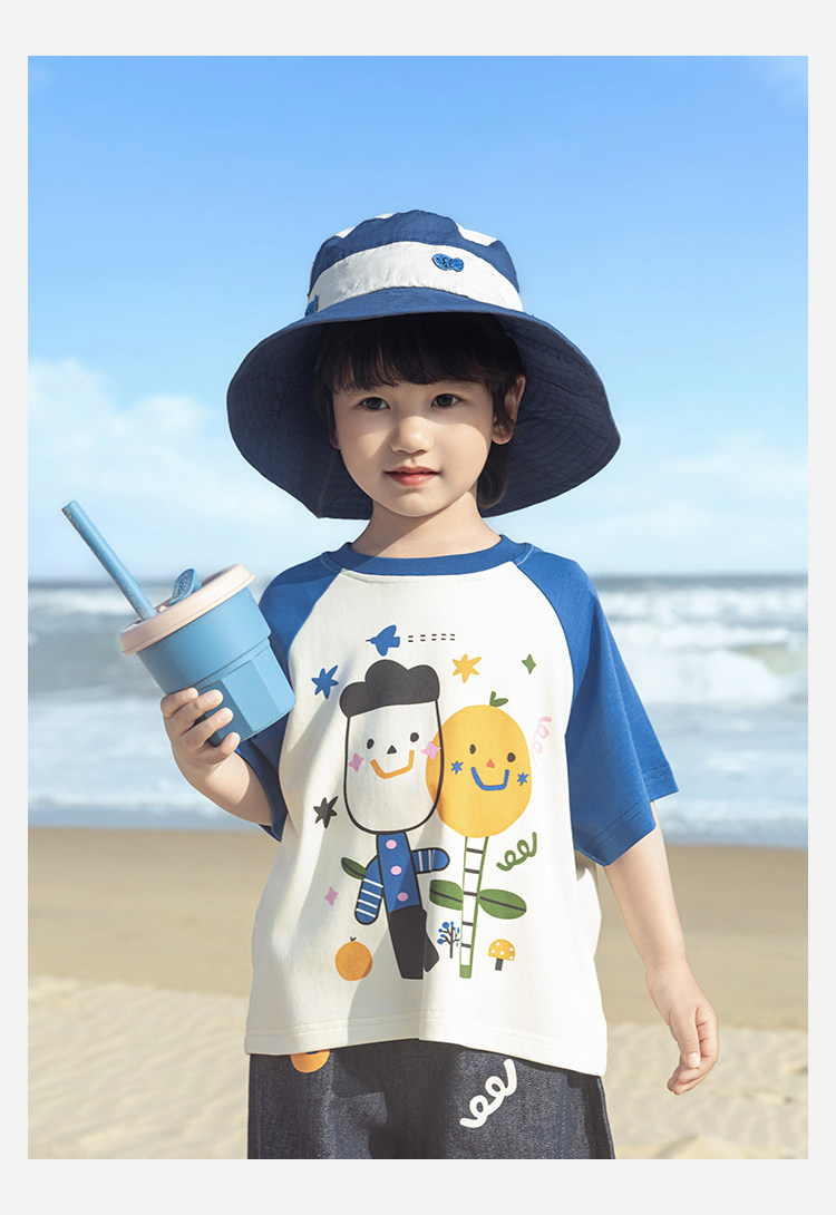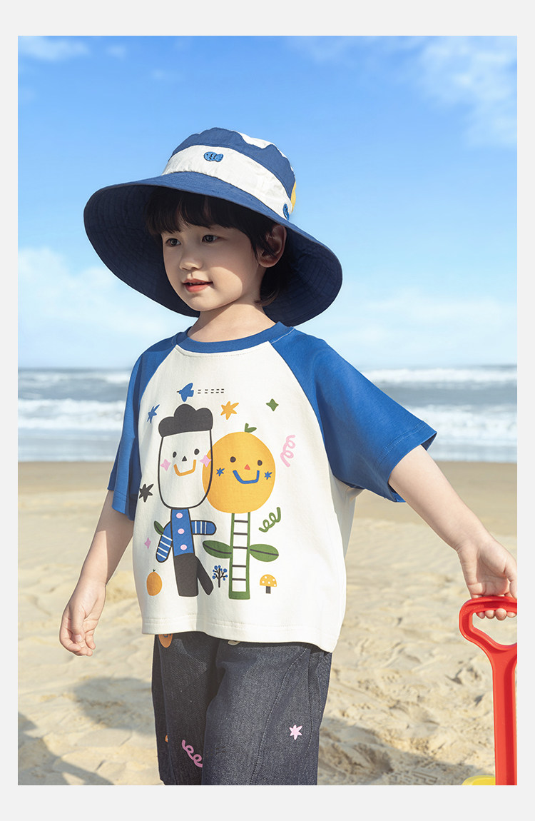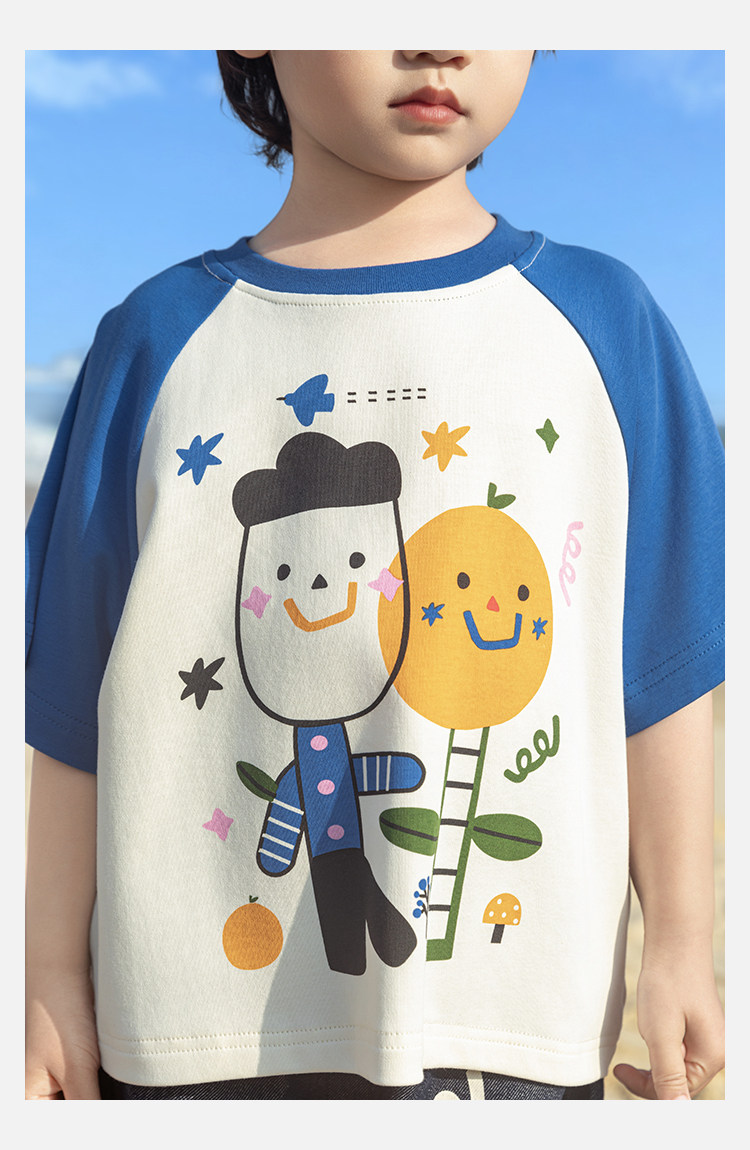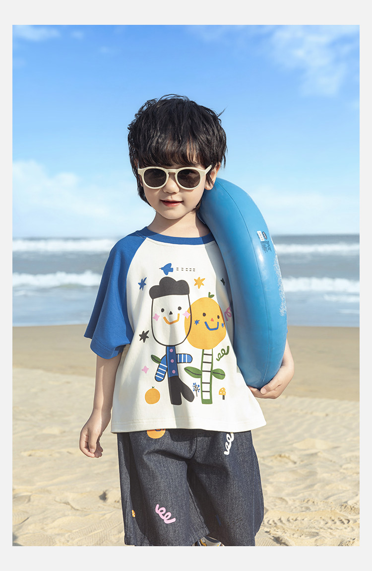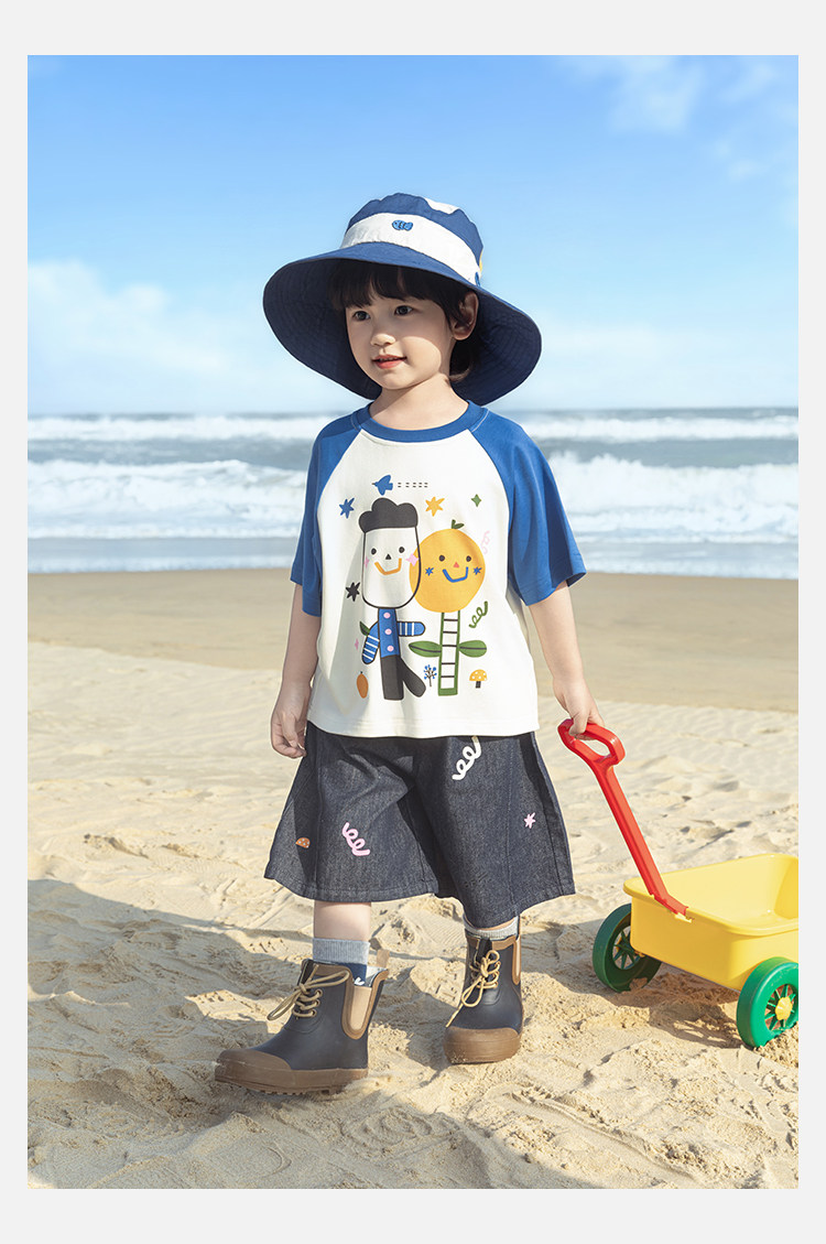 Wurib 소년 2025 세트 새로운 만화 승무원 목 대비 짧은 소매 티셔츠 여름 스트레이트 데님 반바지