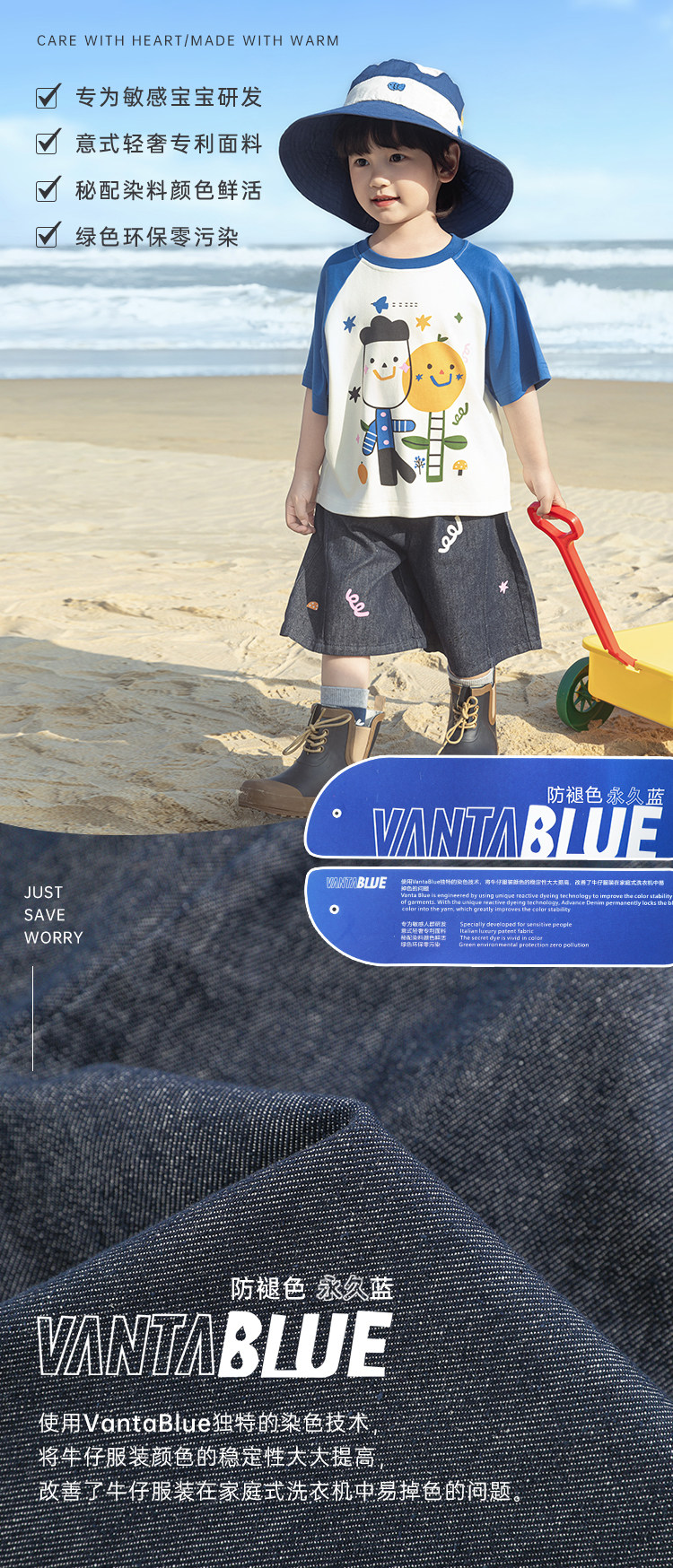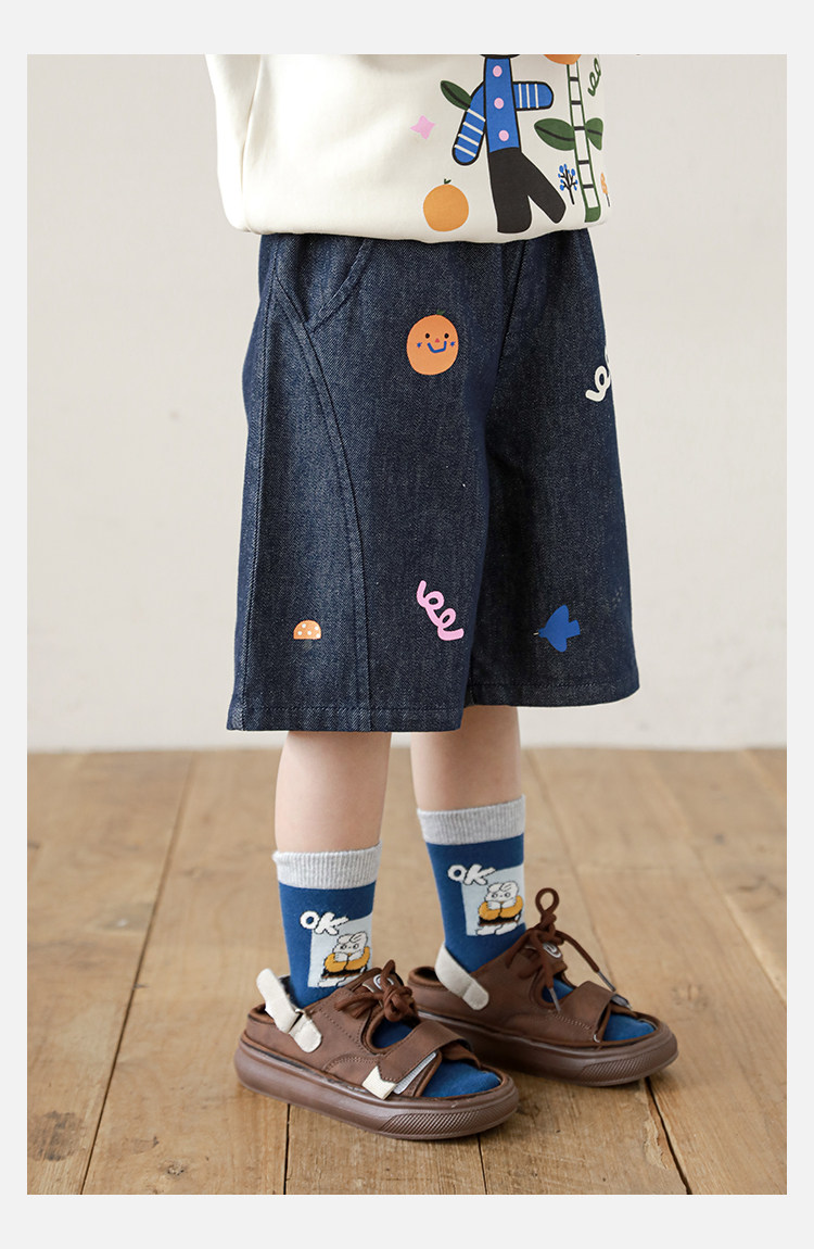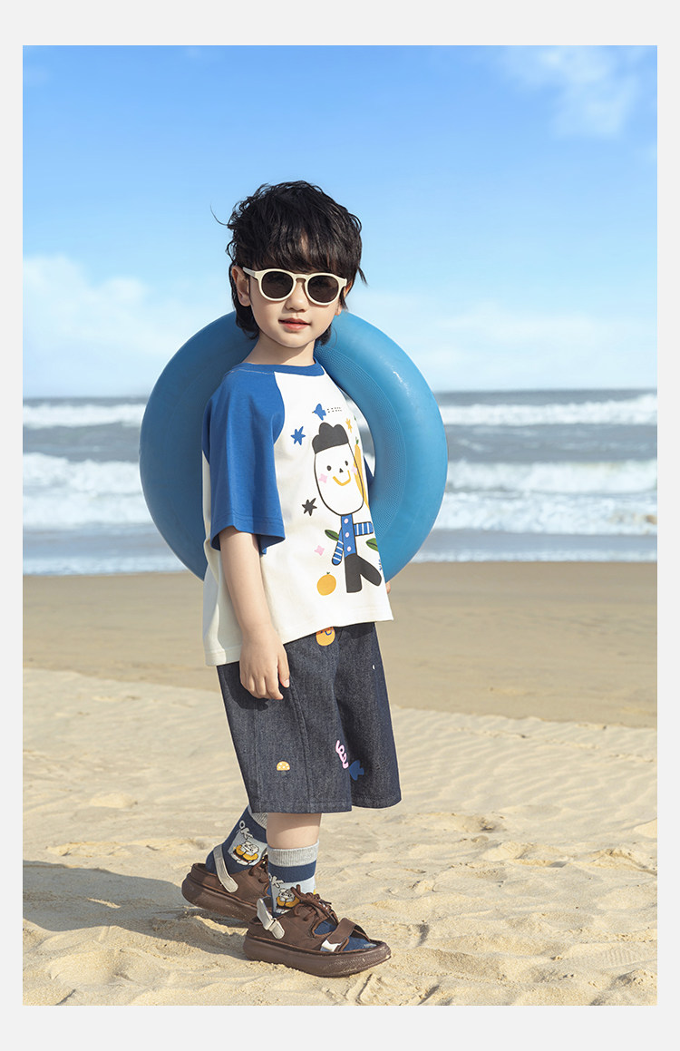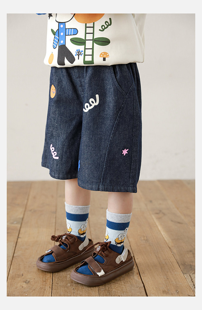 Wurib 소년 2025 세트 새로운 만화 승무원 목 대비 짧은 소매 티셔츠 여름 스트레이트 데님 반바지스토어 가기