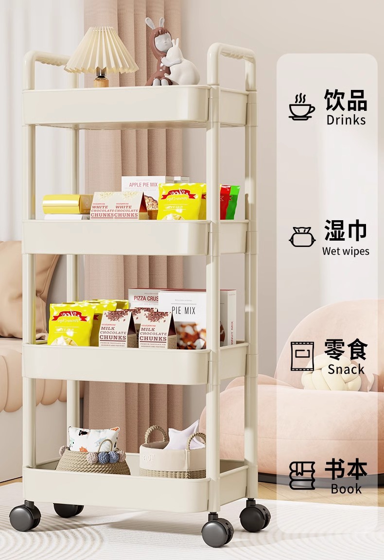 수납 선반 트롤리 침실 욕실 바닥에 놓인 다층 스낵 선반 주방 이동식 아기 용품 보관