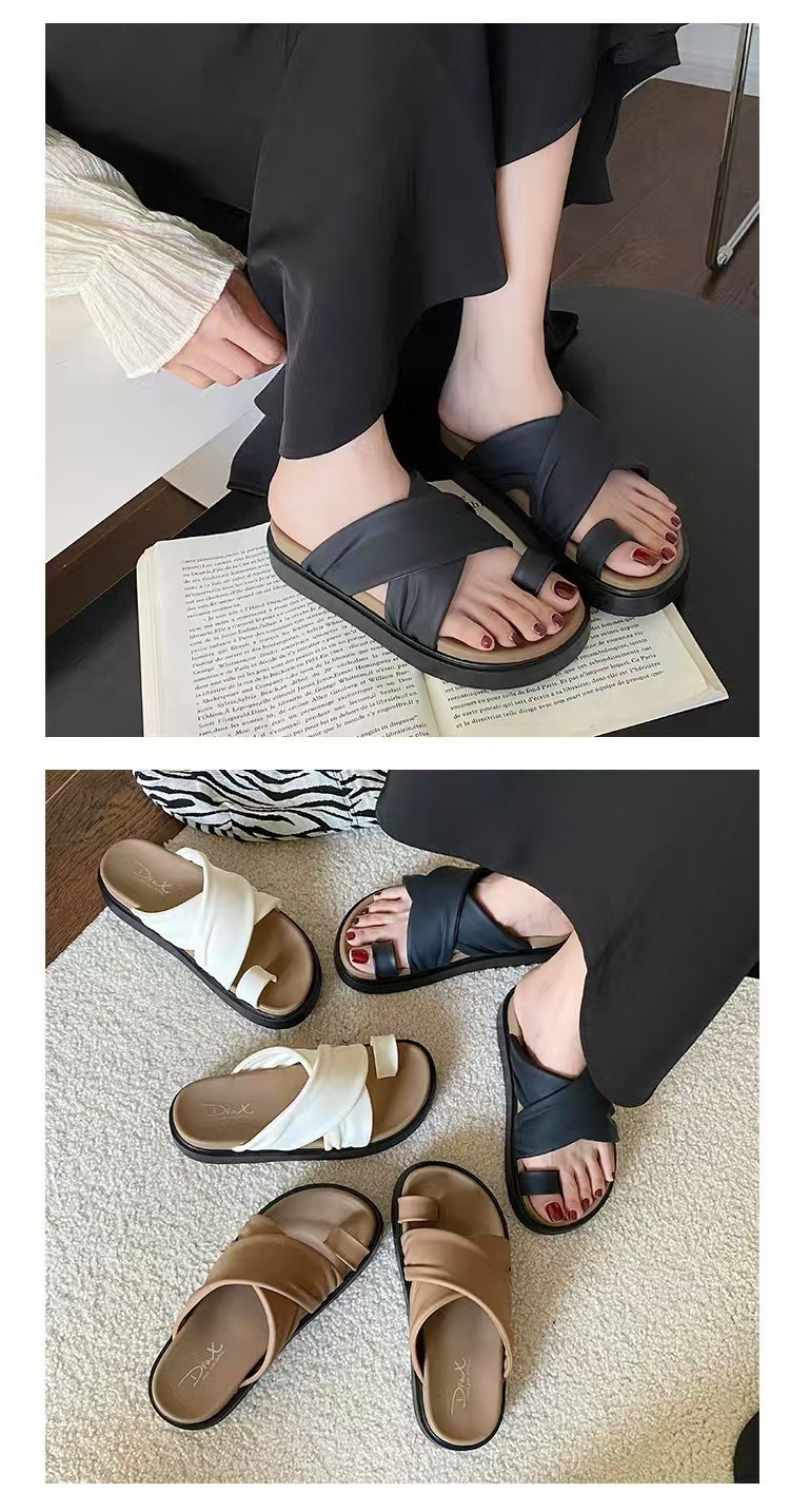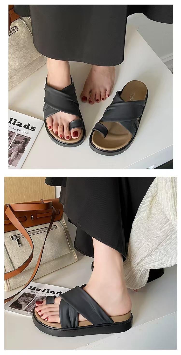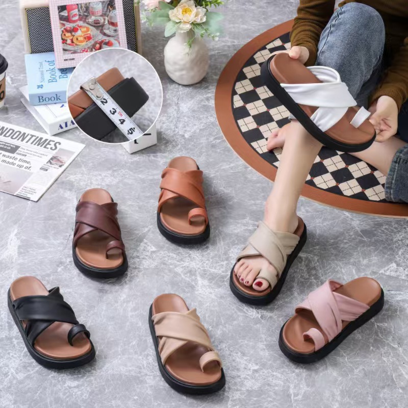 여성을위한 새로운 도착 크로스 캐주얼 올 매치 소프트 하단 샌들 및 슬리퍼 2025 여름 틈새 미끄럼 방지 두꺼운 바닥 세트 발가락 슬리퍼스토어 가기