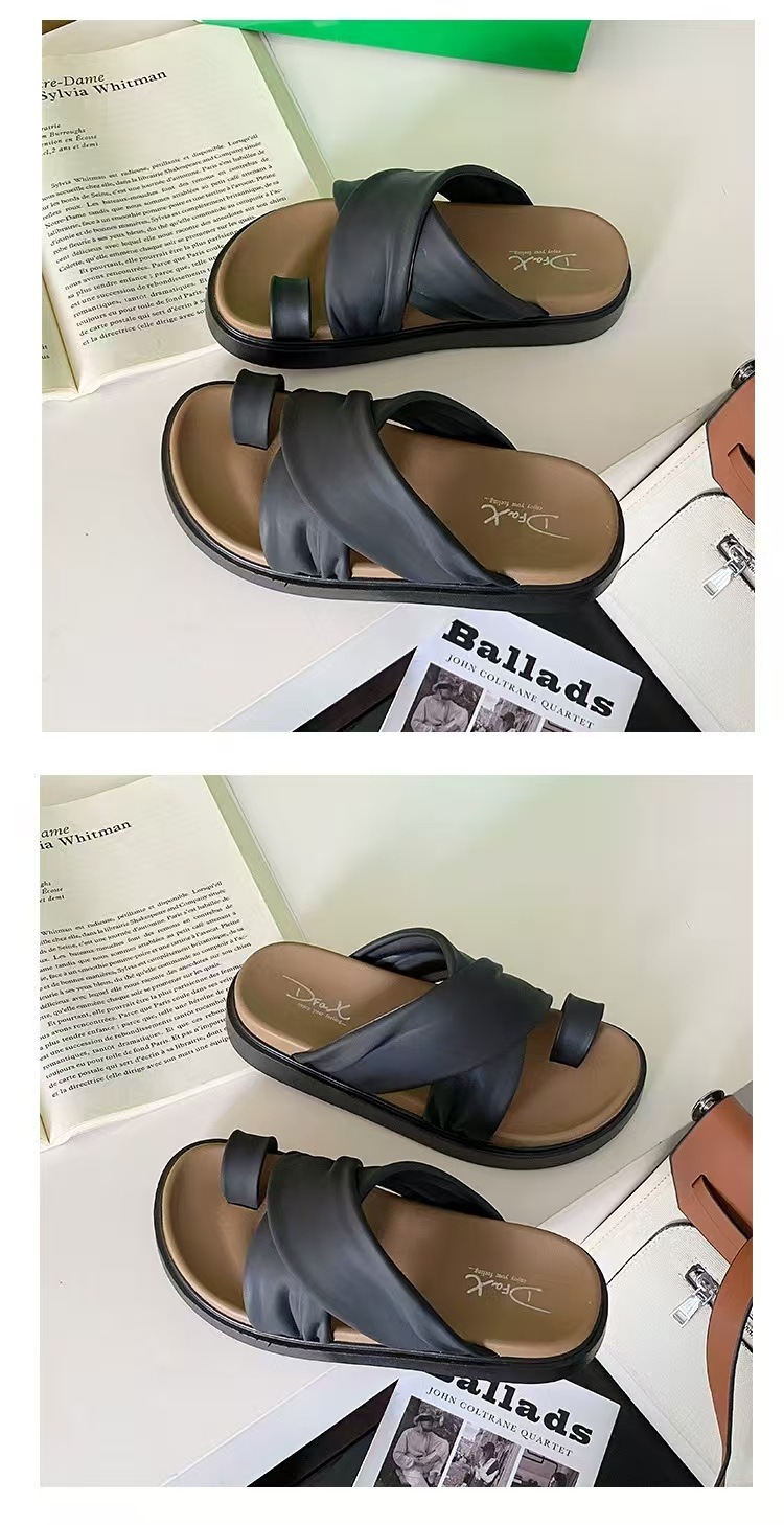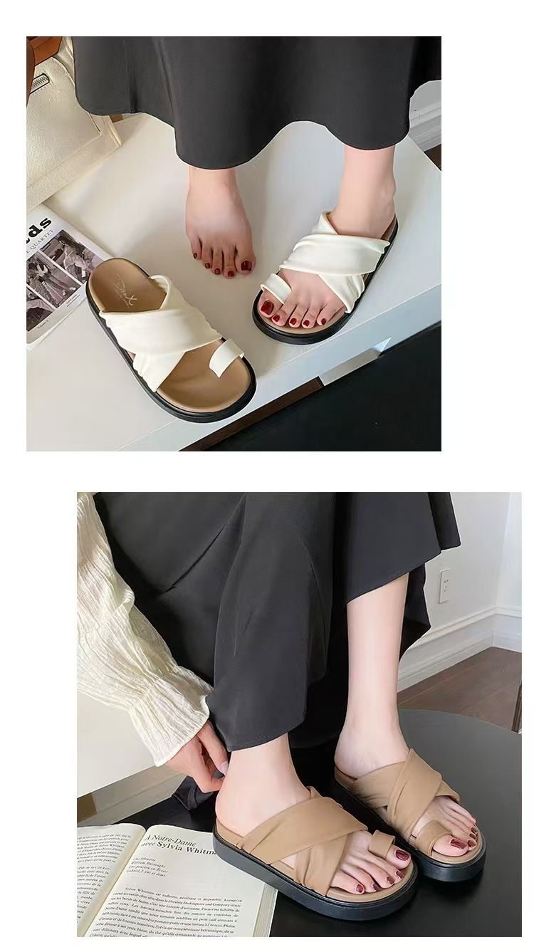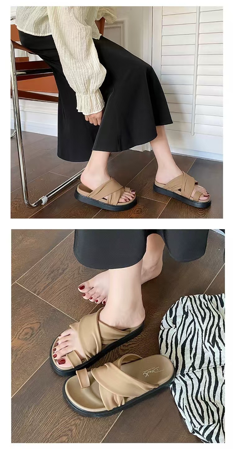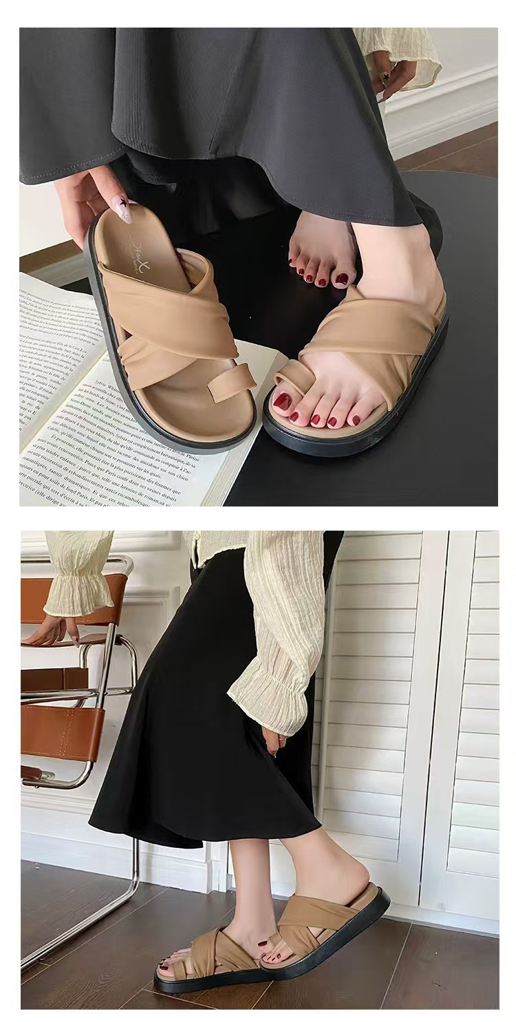 여성을위한 새로운 도착 크로스 캐주얼 올 매치 소프트 하단 샌들 및 슬리퍼 2025 여름 틈새 미끄럼 방지 두꺼운 바닥 세트 발가락 슬리퍼