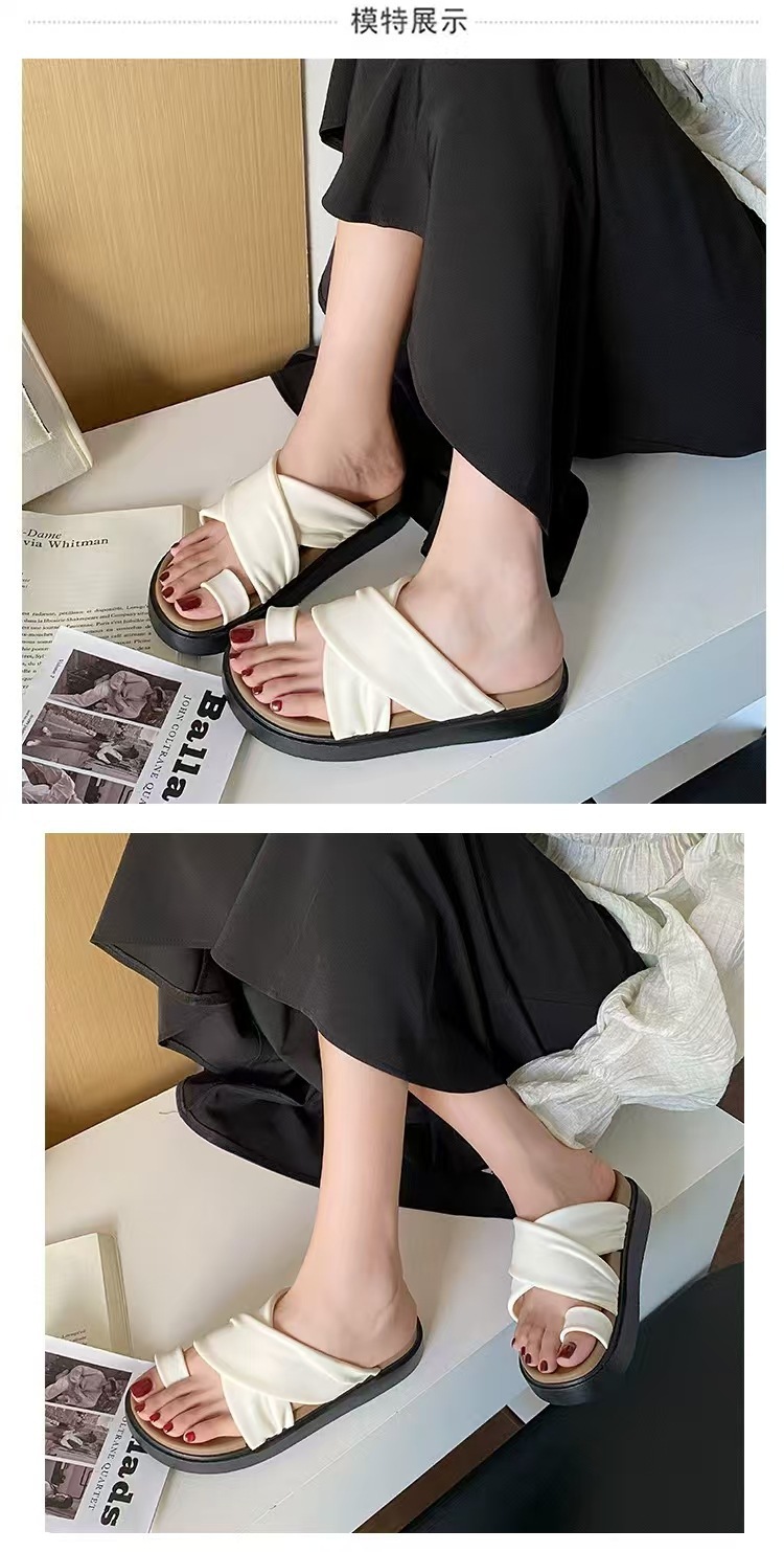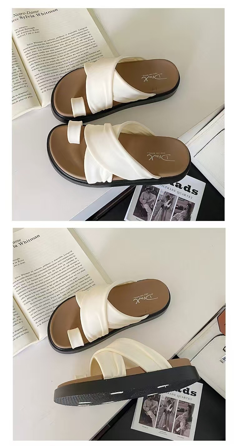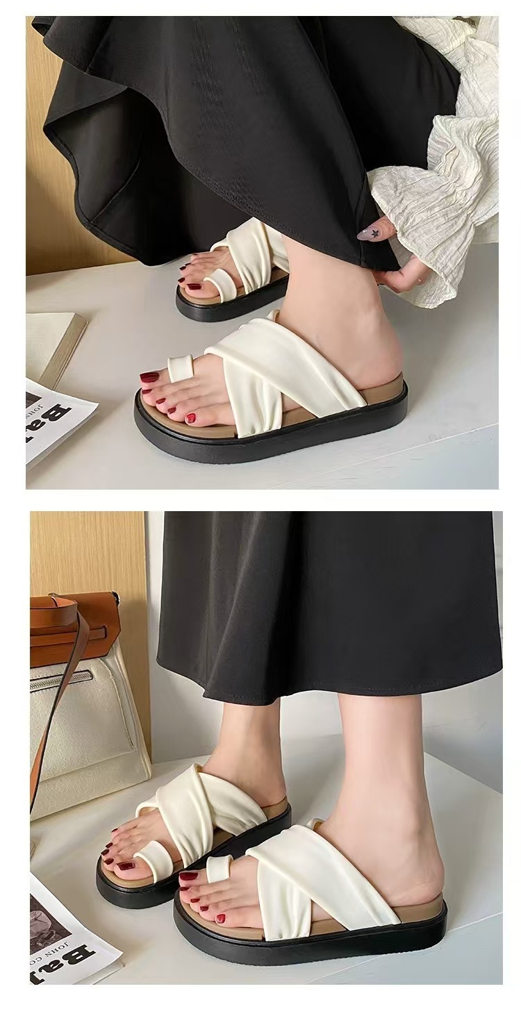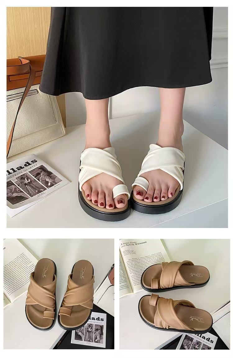 여성을위한 새로운 도착 크로스 캐주얼 올 매치 소프트 하단 샌들 및 슬리퍼 2025 여름 틈새 미끄럼 방지 두꺼운 바닥 세트 발가락 슬리퍼