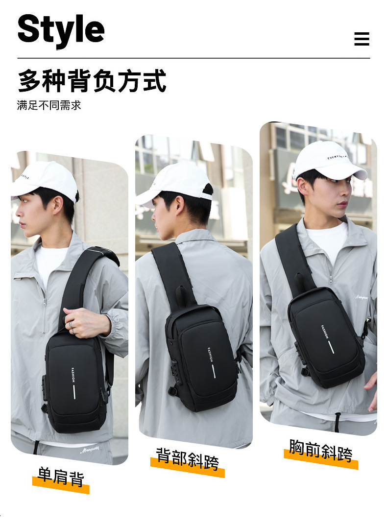 아마존 새로운 어깨 크로스 바디 백 USB 비밀번호 잠금 승마 스포츠 허리 가방 발수 다기능 가슴 가방 남성용스토어 가기