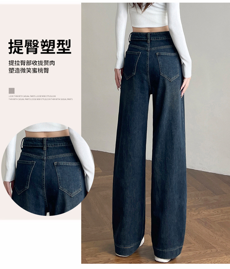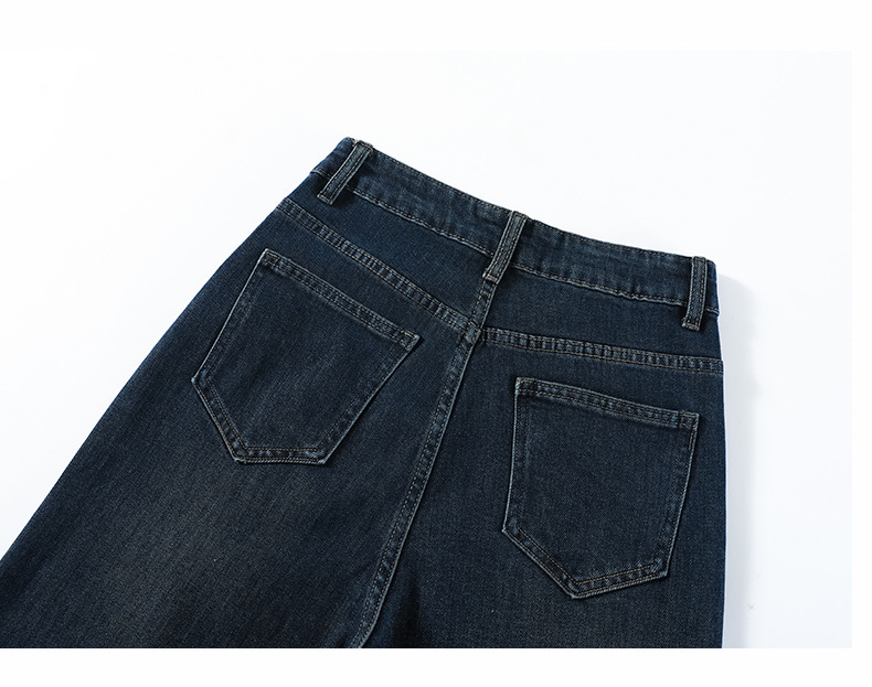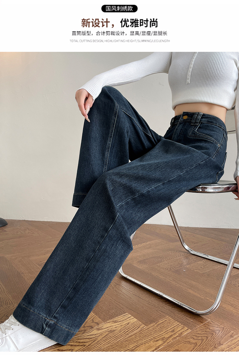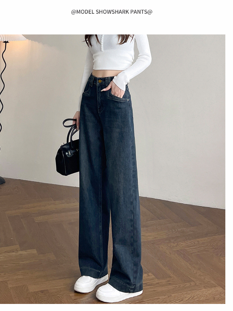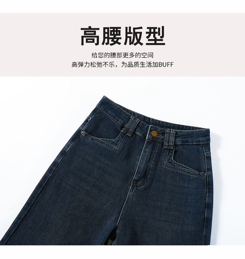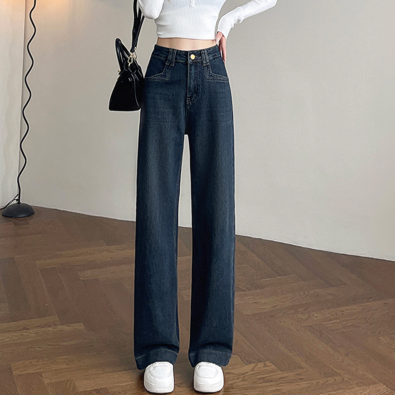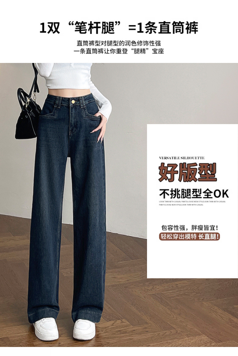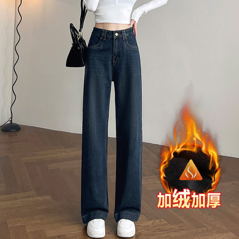 여성용 겨울용 넓은 다리 청바지, 벨벳 안감, 두꺼운, 하이웨이스트, 루즈핏, 슬림, 드레이프, 작은 키에도 잘 어울리는 스트레이트 팬츠