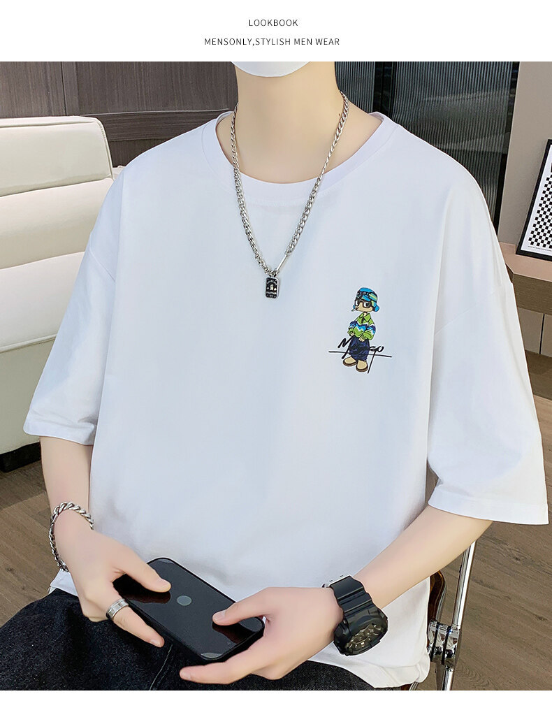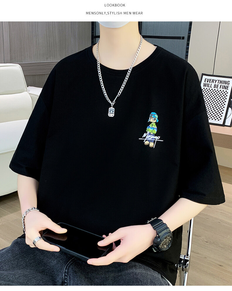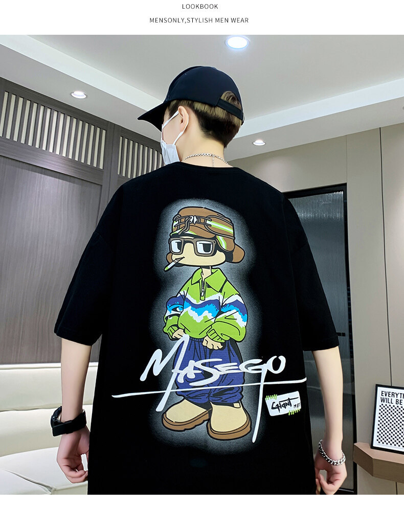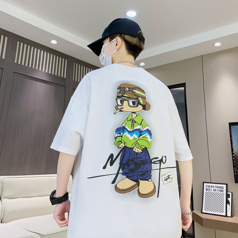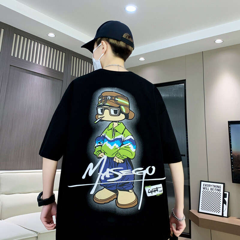 십대 반팔 티셔츠 남자 여름 유행 브랜드 하이 스트리트 아메리칸 프린트 반소매 캐주얼 루즈 탑스토어 가기