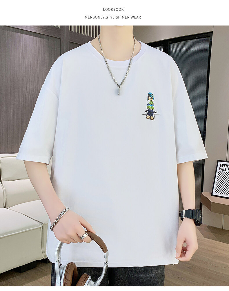 십대 반팔 티셔츠 남자 여름 유행 브랜드 하이 스트리트 아메리칸 프린트 반소매 캐주얼 루즈 탑