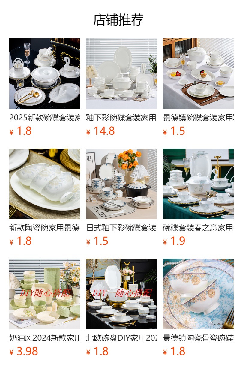 2025 새로운 접시 세트 가정용 세라믹 밥 그릇 접시 젓가락 숟가락 뼈 중국 식기 DIY 경기스토어 가기