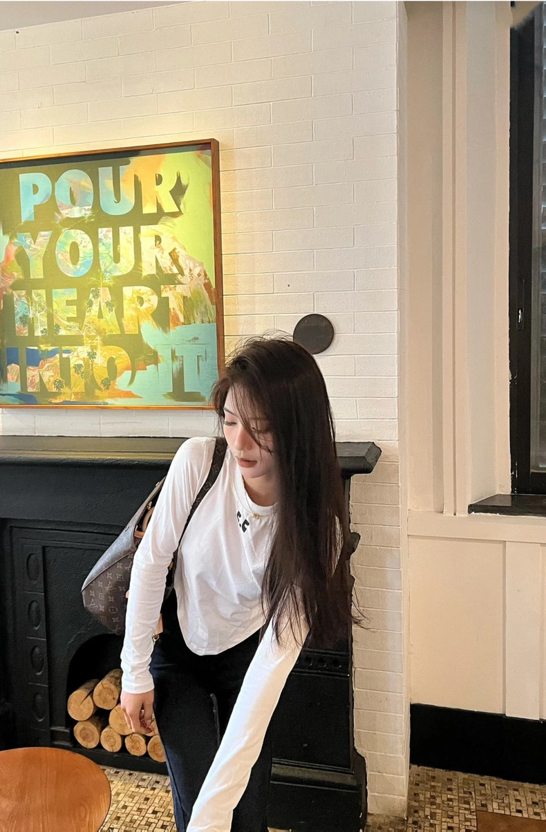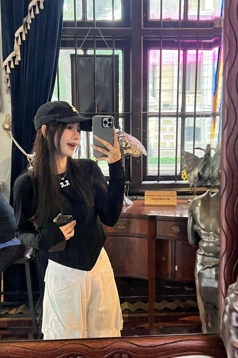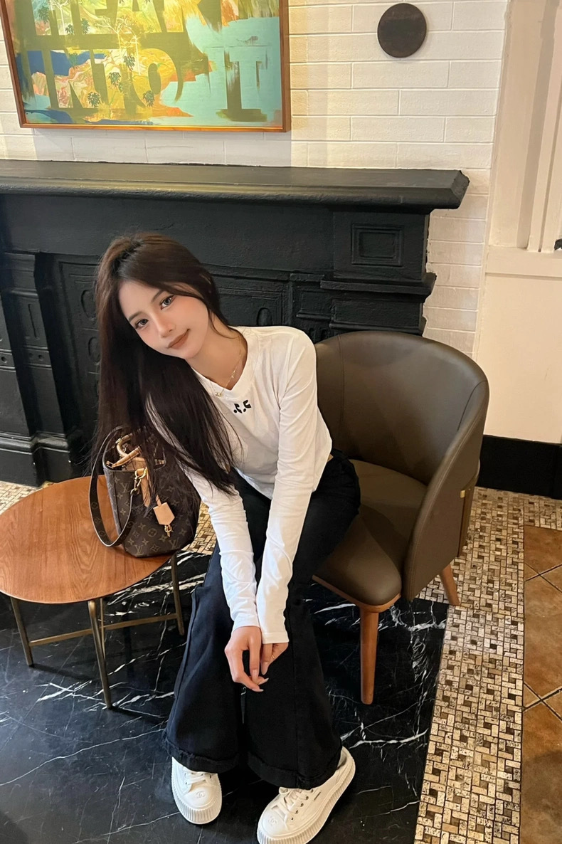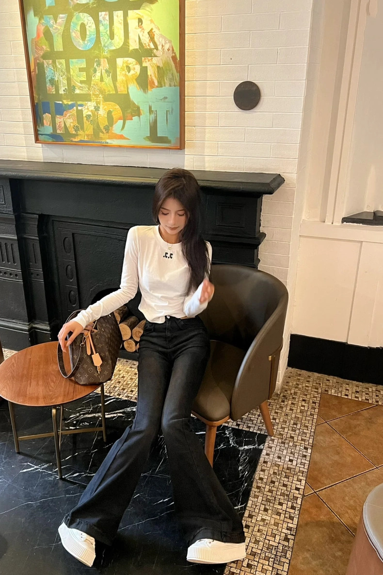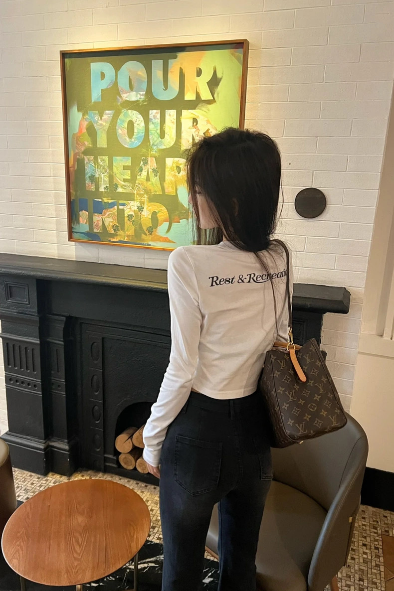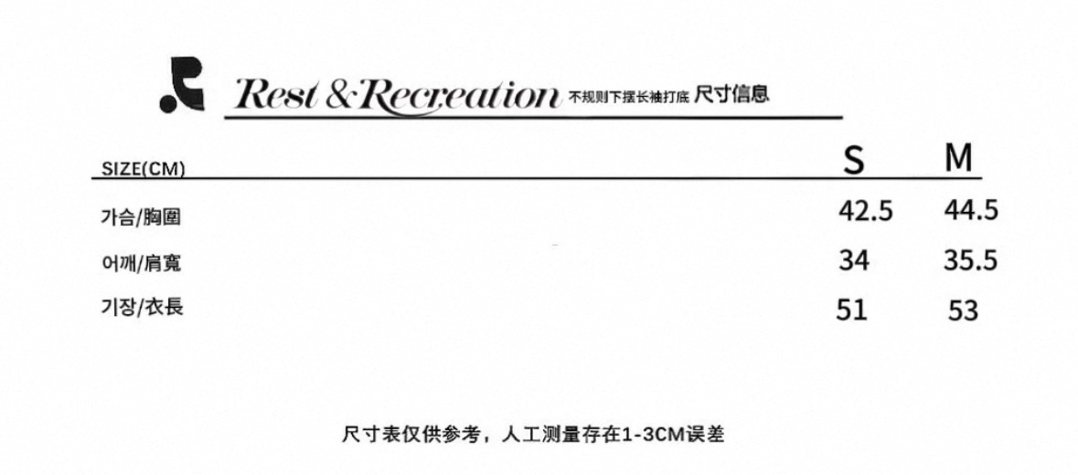 25 봄 새로운 RR 한국 슬림 핏 불규칙한 긴팔 티셔츠 짧은 편지 인쇄 디자인 센스 탑스토어 가기