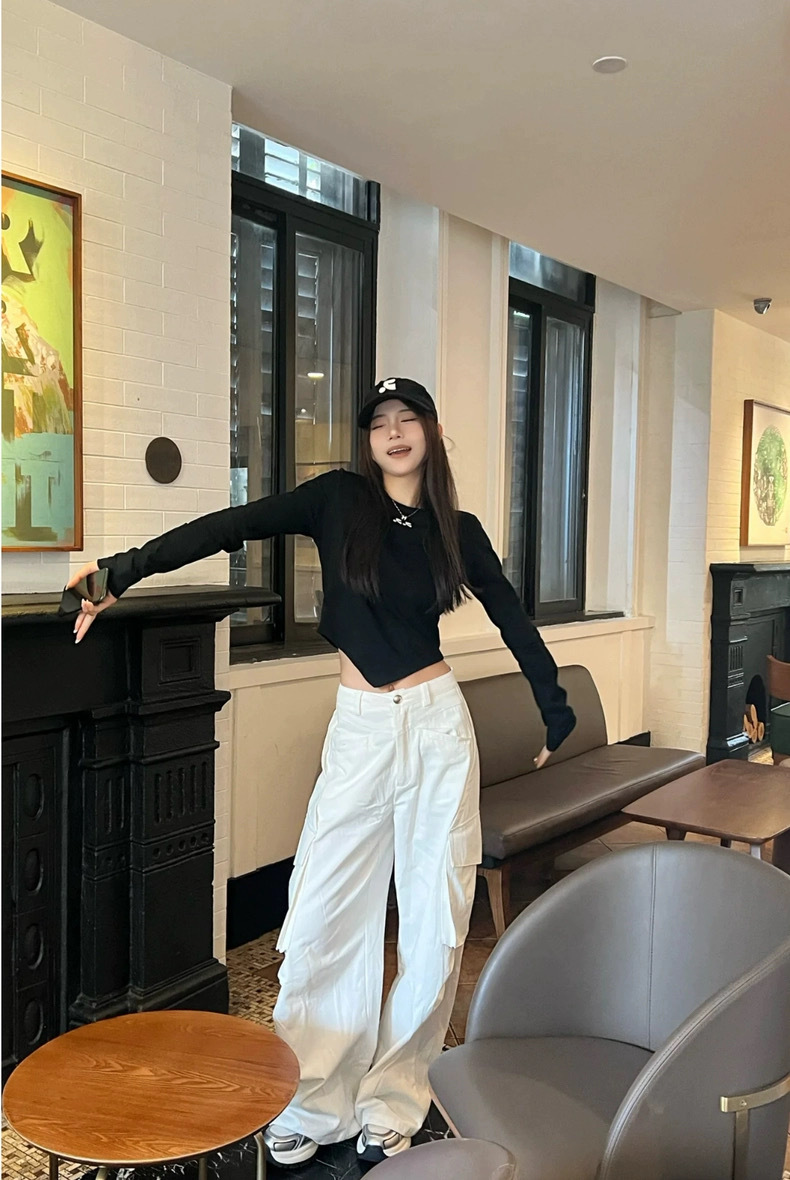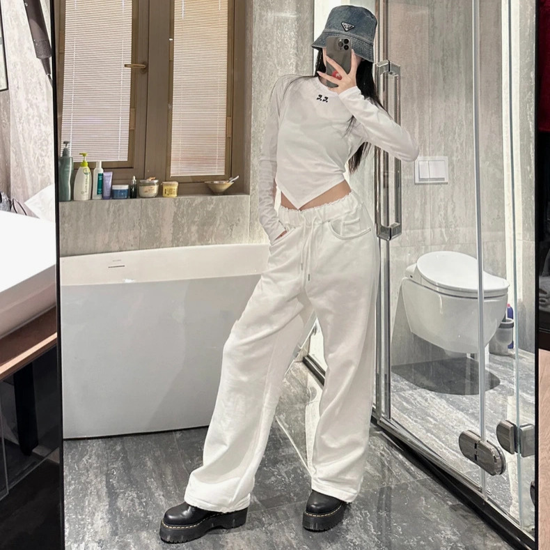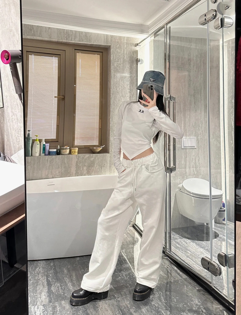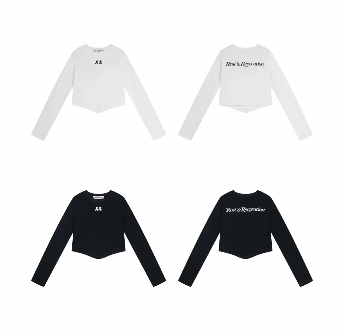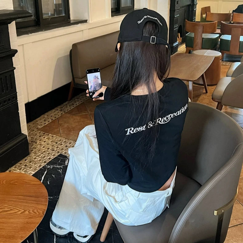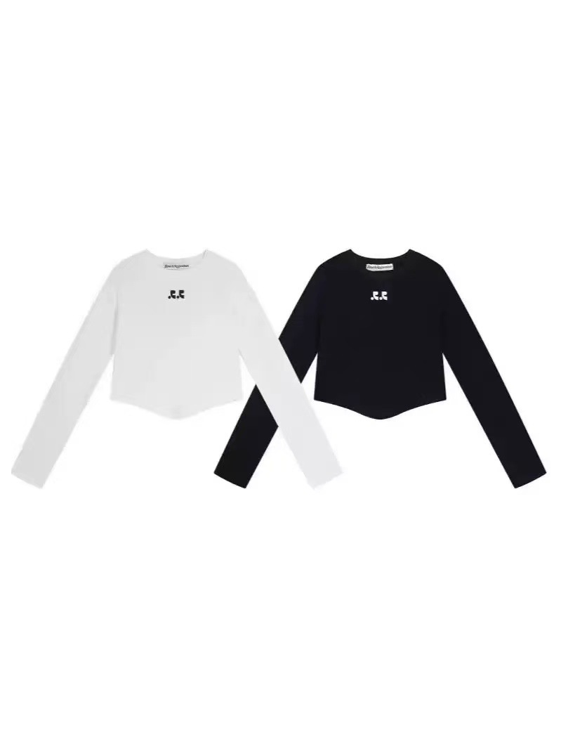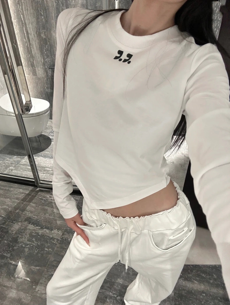 25 봄 새로운 RR 한국 슬림 핏 불규칙한 긴팔 티셔츠 짧은 편지 인쇄 디자인 센스 탑