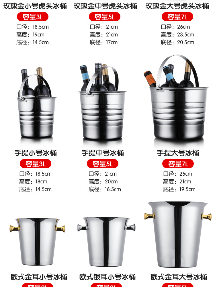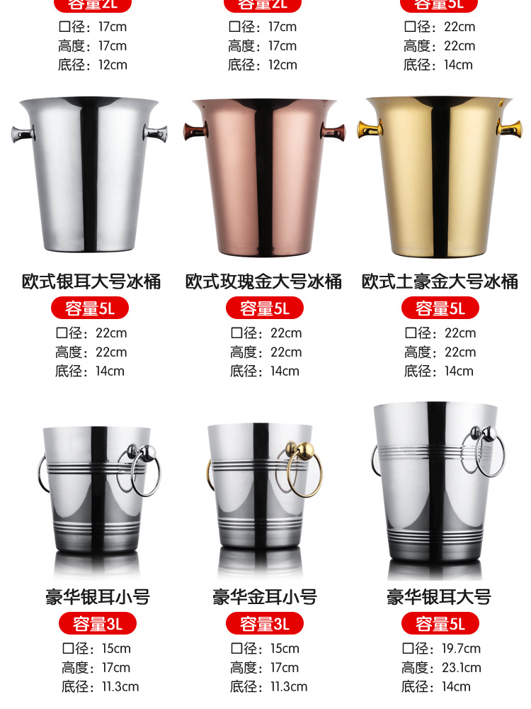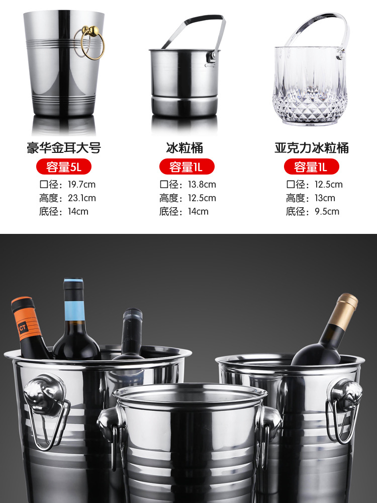 샴페인 버킷 곡물 버킷 상업용 용품 두꺼운 스테인레스 스틸 아이스 버킷 레드 KTV 크리에이티브 맥주 아이스 버킷 바