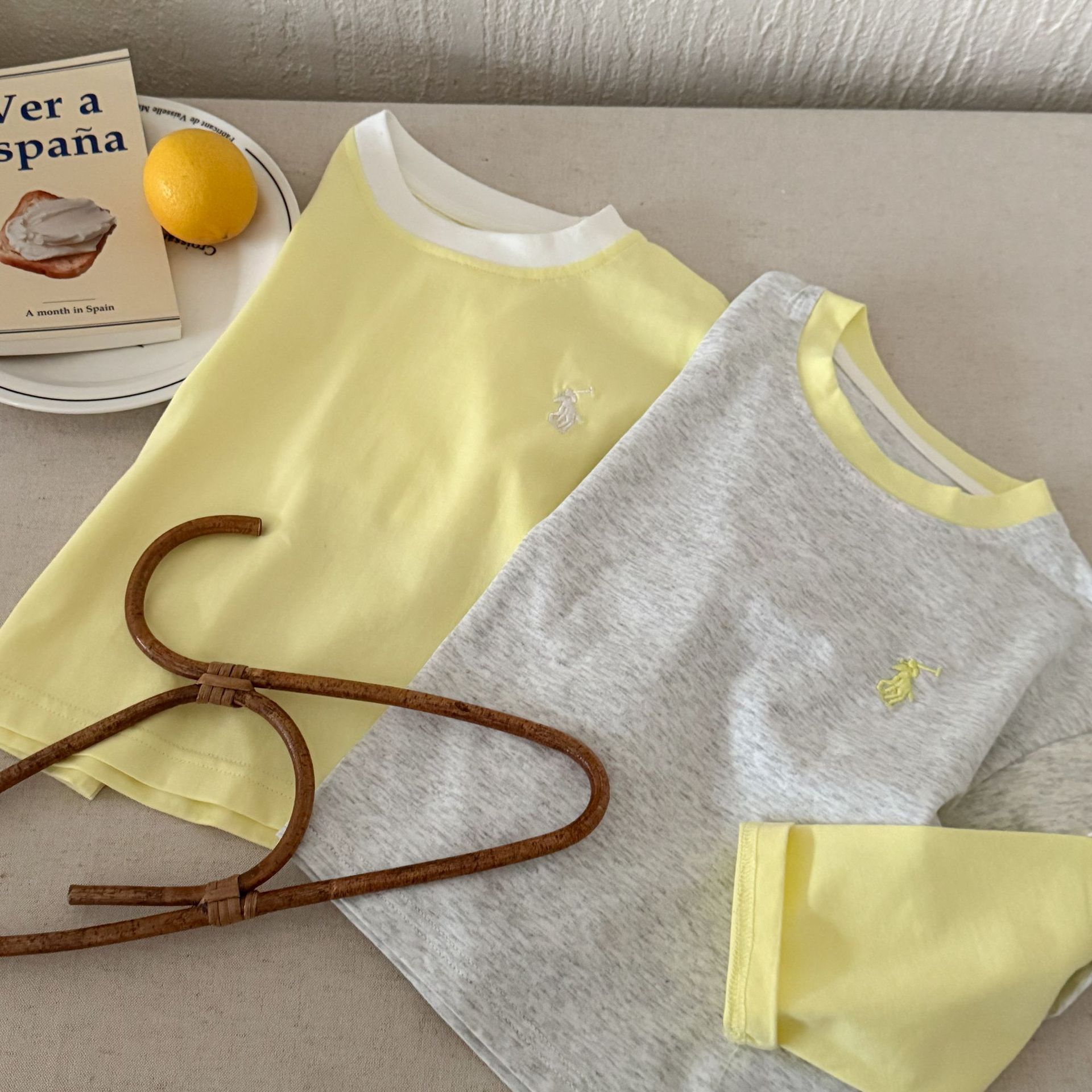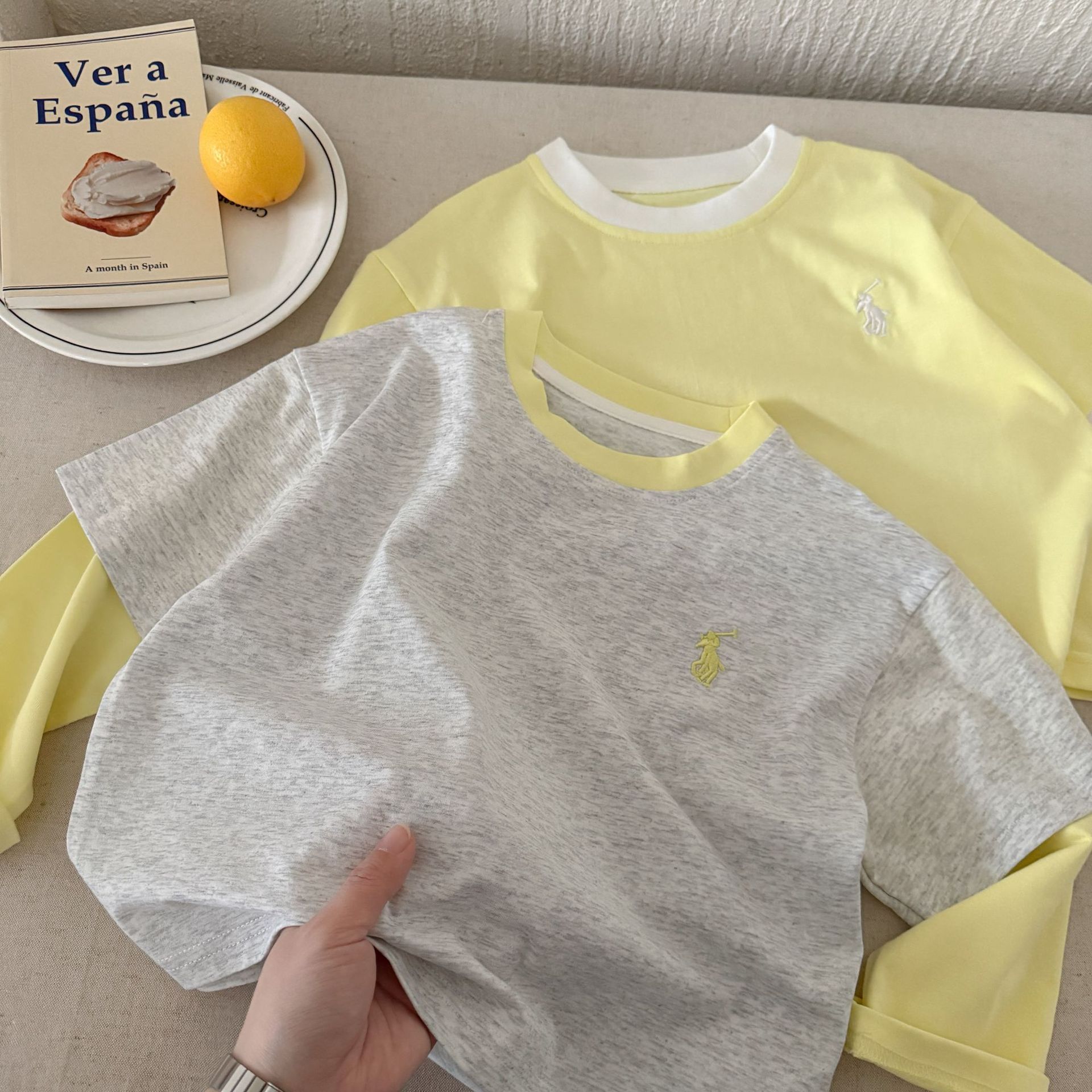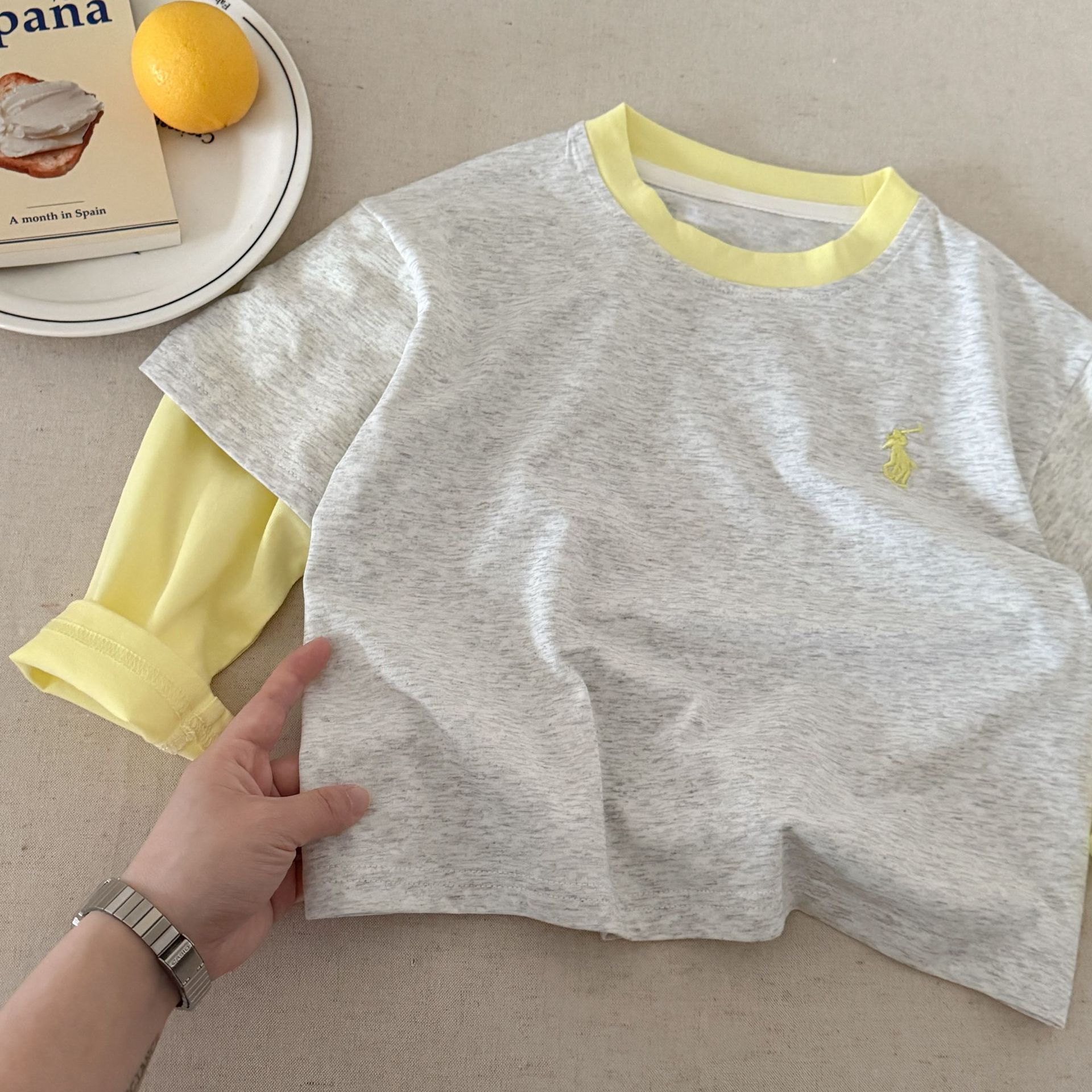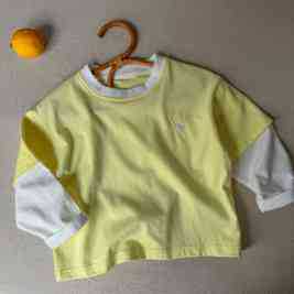 어린이 가짜 투피스 긴팔 티셔츠 2022 가을 새로운 아동 의류 소년과 소녀 라운드 넥 컬러 매칭 캐주얼 바닥 셔츠