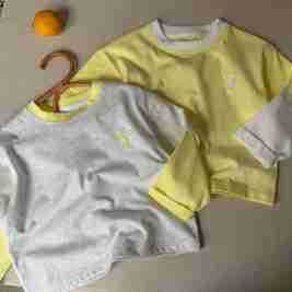 어린이 가짜 투피스 긴팔 티셔츠 2022 가을 새로운 아동 의류 소년과 소녀 라운드 넥 컬러 매칭 캐주얼 바닥 셔츠스토어 가기