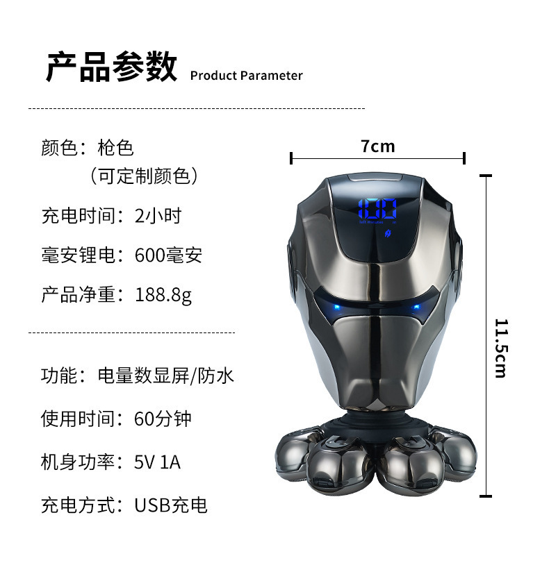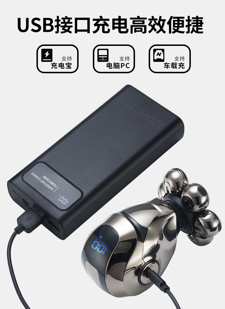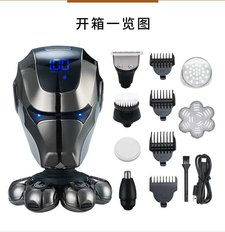 국경 전용 대머리 유물 전기 면도기 자기 흡입 5 헤드 USB 충전 전신 세척 면도기