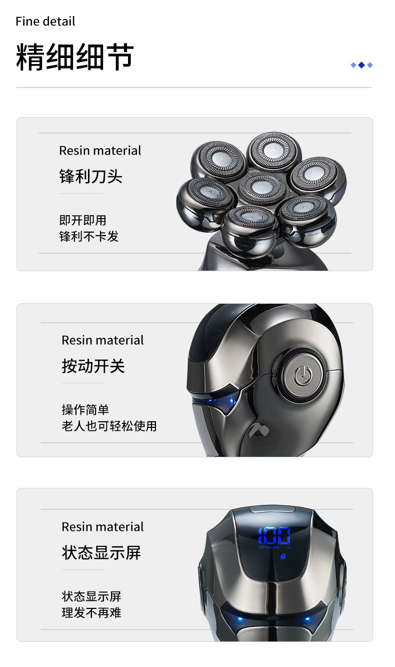 국경 전용 대머리 유물 전기 면도기 자기 흡입 5 헤드 USB 충전 전신 세척 면도기스토어 가기