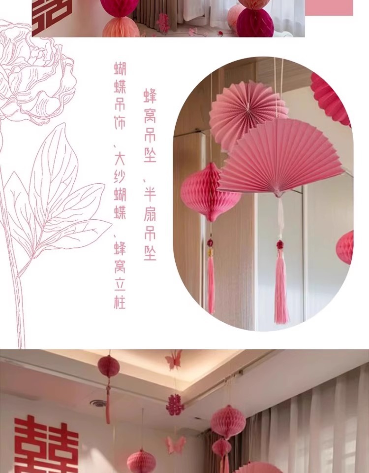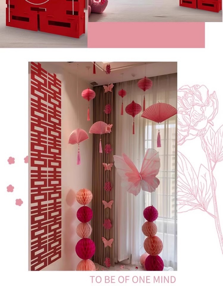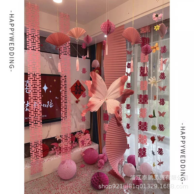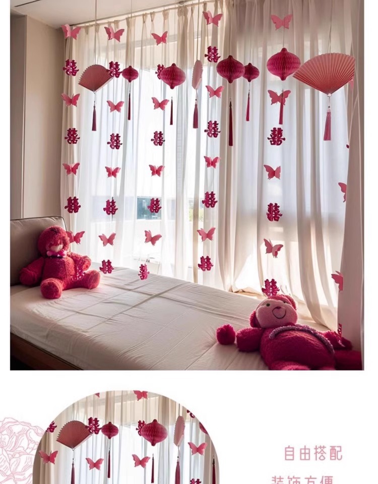 핑크 웨딩 룸 분위기 배열 세트 웨딩 커튼 장식 거실 새 집 여자의 침실 결혼식 긴 행복한 말