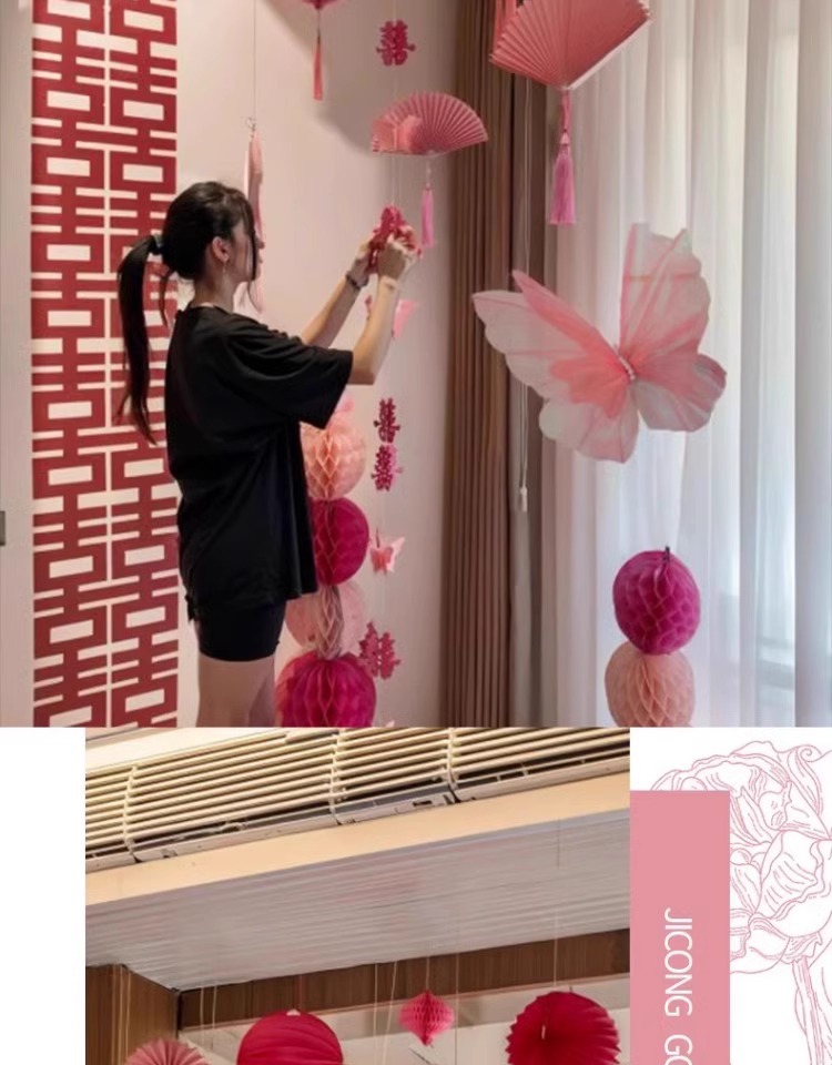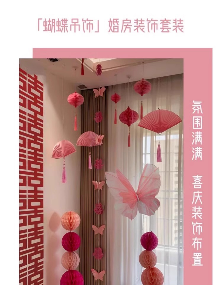 핑크 웨딩 룸 분위기 배열 세트 웨딩 커튼 장식 거실 새 집 여자의 침실 결혼식 긴 행복한 말스토어 가기