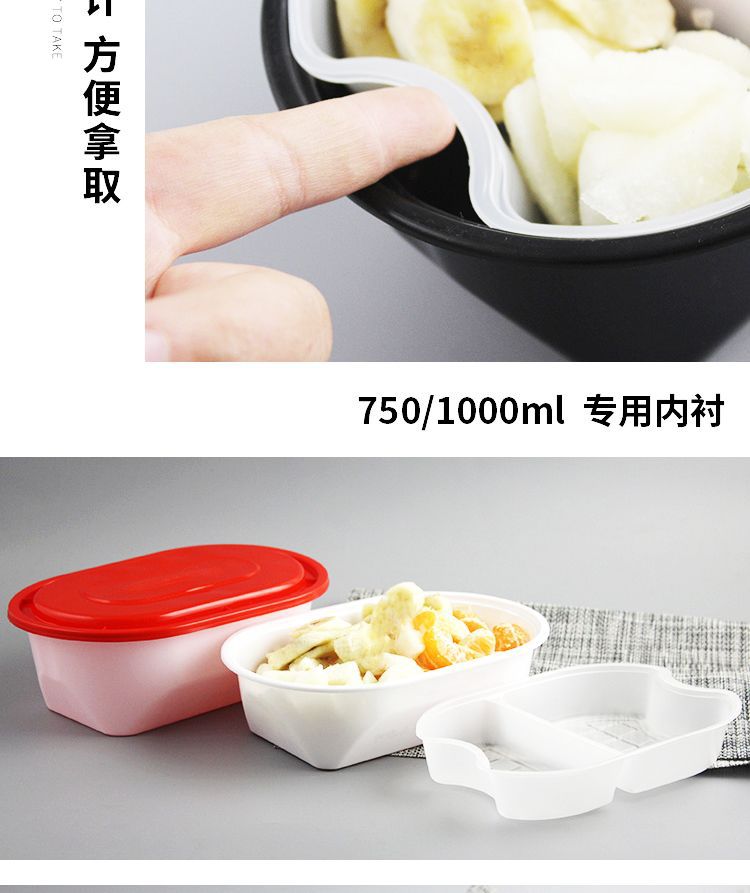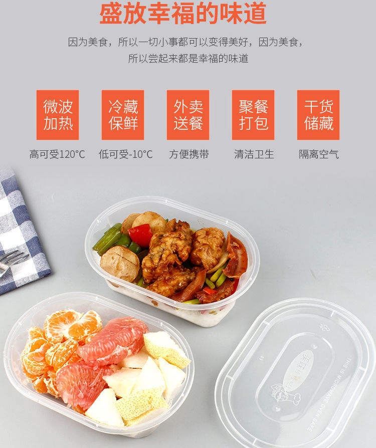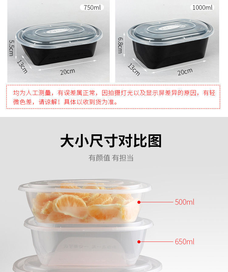 750ml 과일 낚시 일회용 도시락 테이크 아웃 포장 타원형 두꺼운 플라스틱 500ml 막대 설치 제로 용량스토어 가기