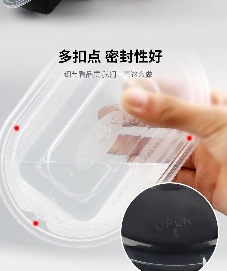 750ml 과일 낚시 일회용 도시락 테이크 아웃 포장 타원형 두꺼운 플라스틱 500ml 막대 설치 제로 용량