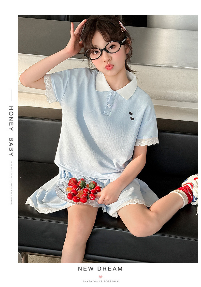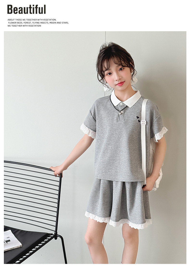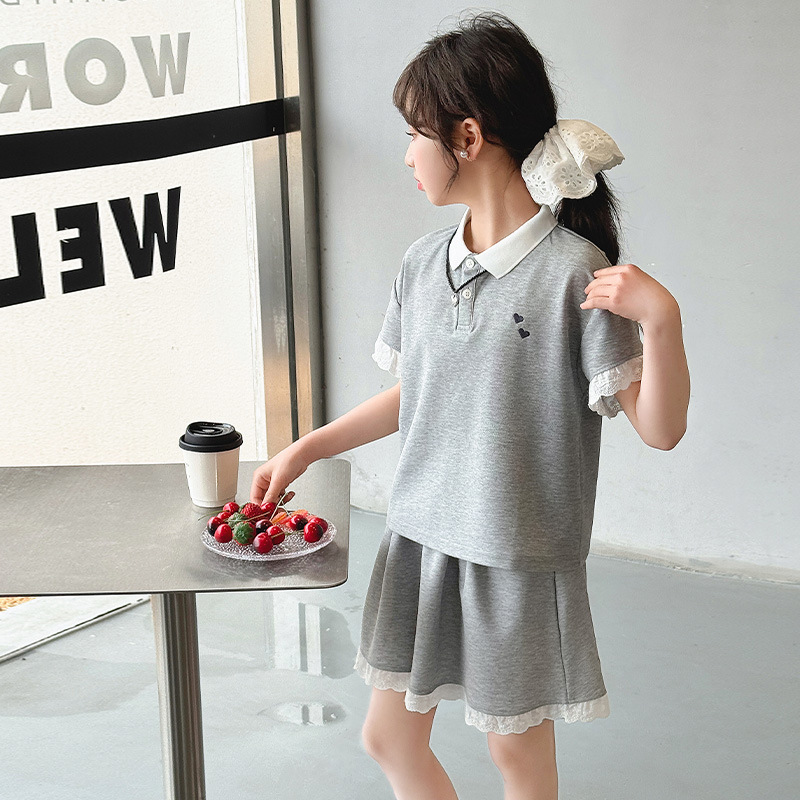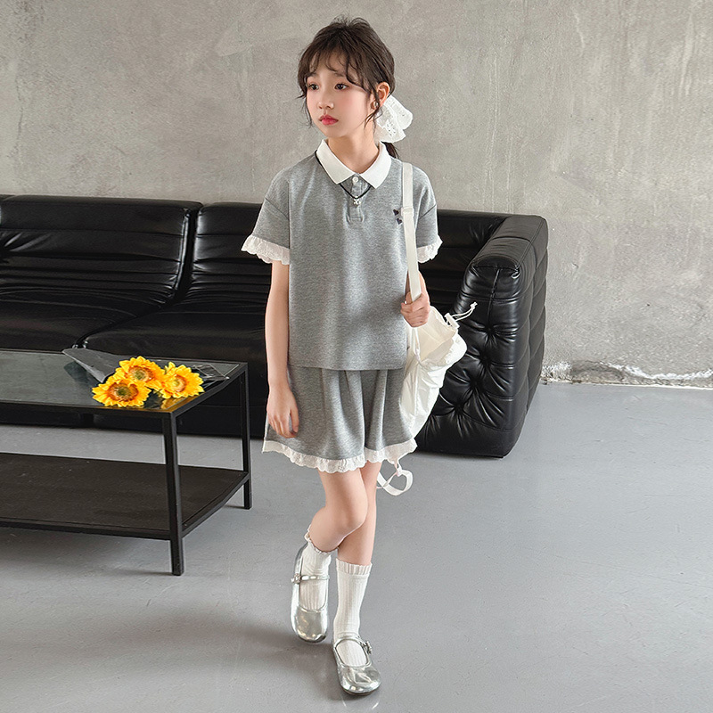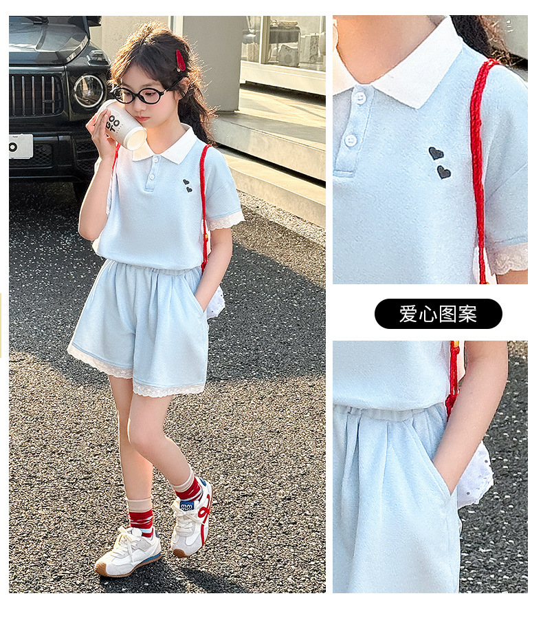 여름 여아 폴로 셔츠 반팔 티셔츠 세트 아동복 여아 반바지 투피스 세트 캐주얼 라펠 스타일리쉬