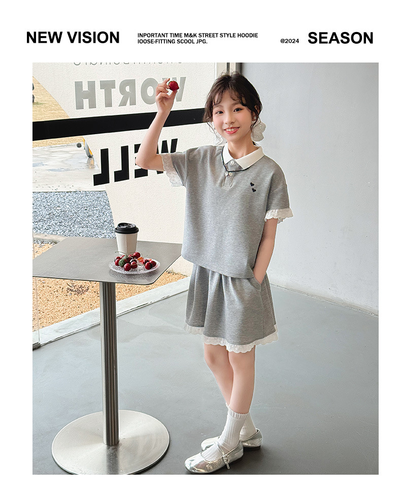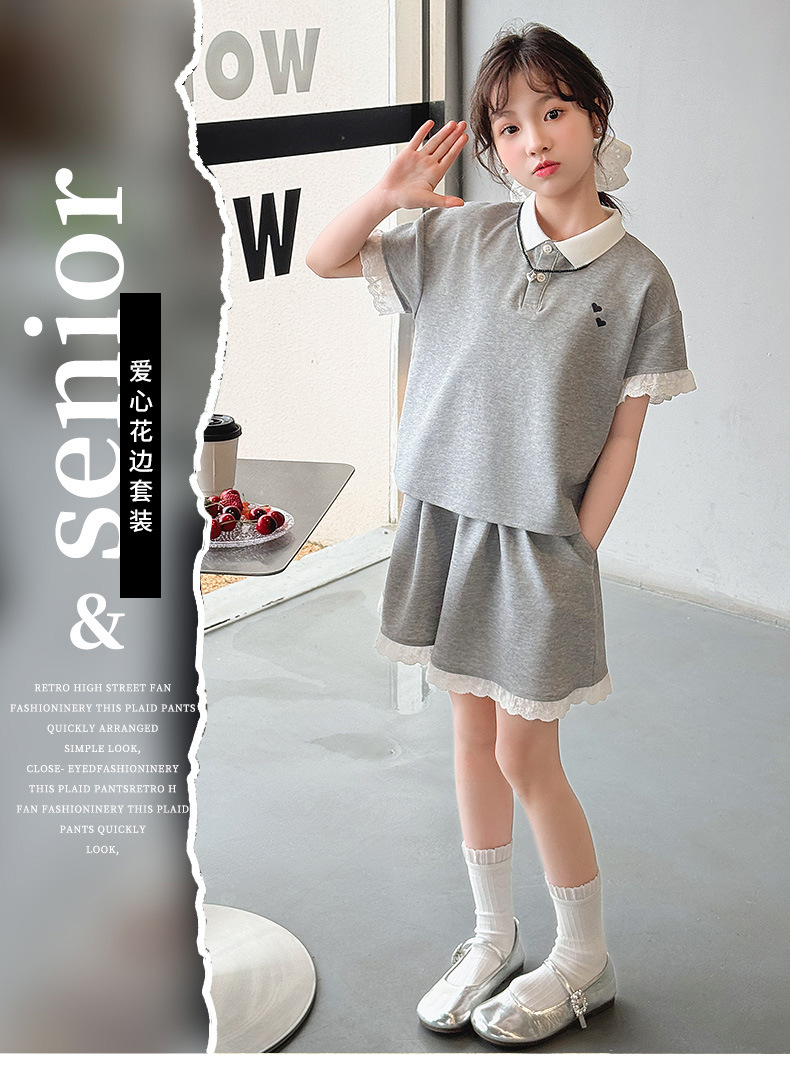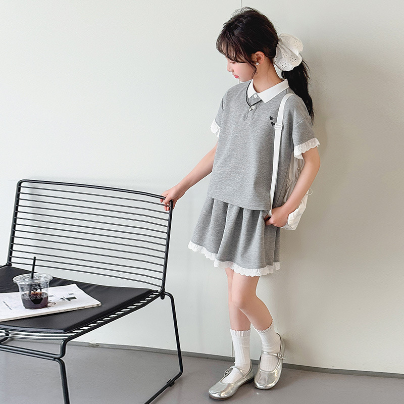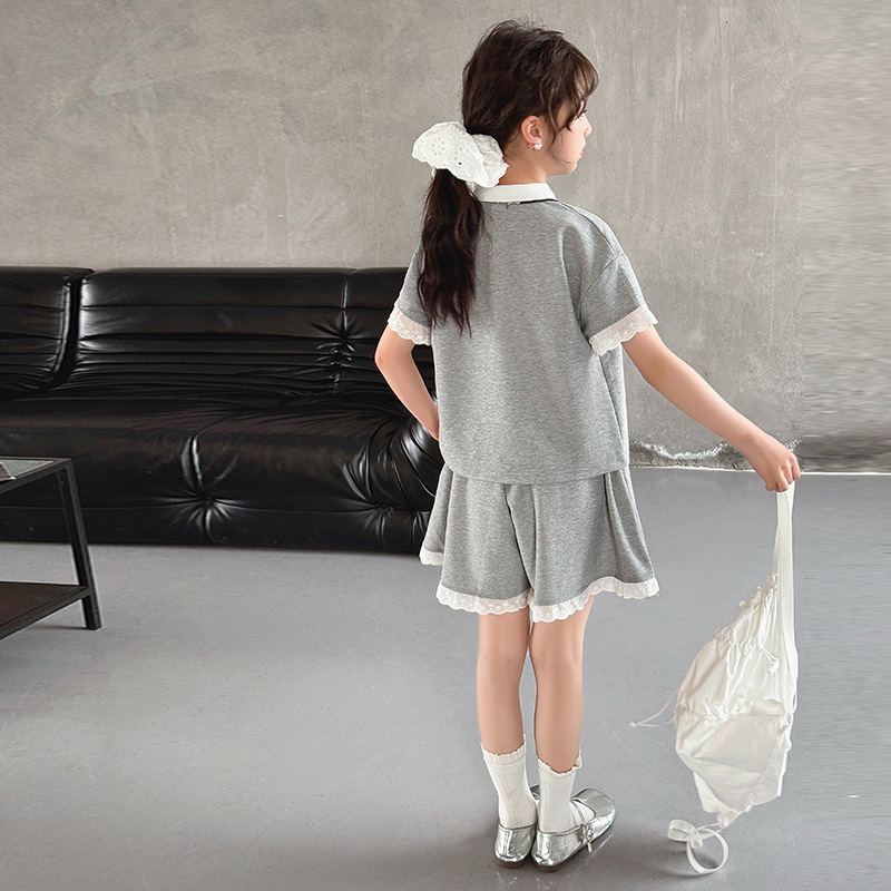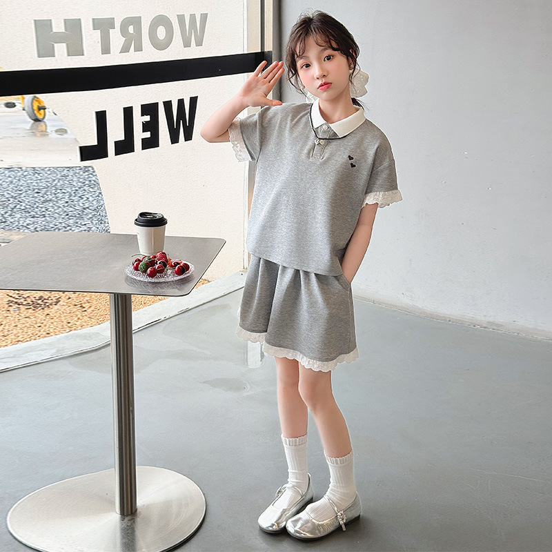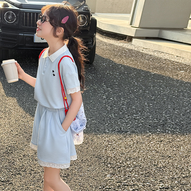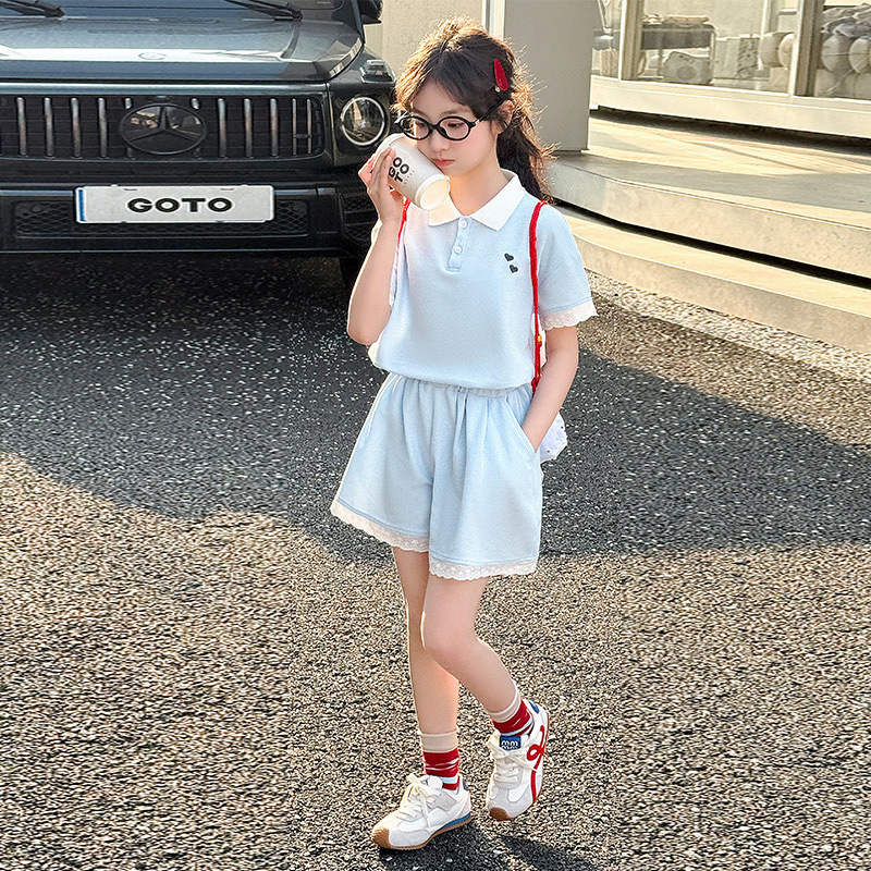 여름 여아 폴로 셔츠 반팔 티셔츠 세트 아동복 여아 반바지 투피스 세트 캐주얼 라펠 스타일리쉬스토어 가기