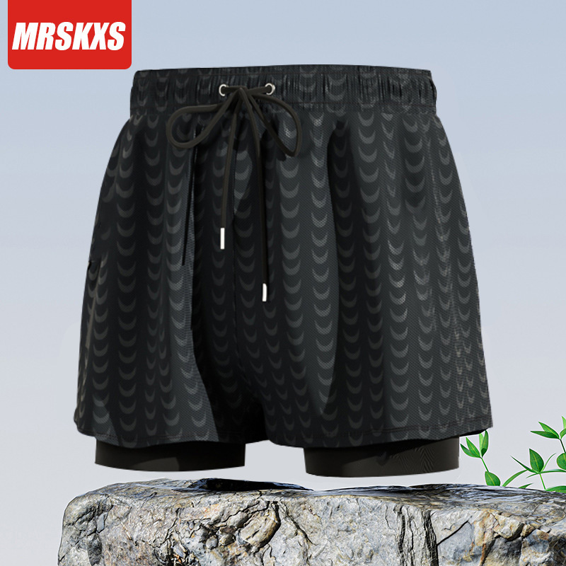 남자 수영 트렁크 더블 레이어 안티 당혹감 수영 반바지 여름 빠른 건조 루즈 박스 캐주얼 해변 바지