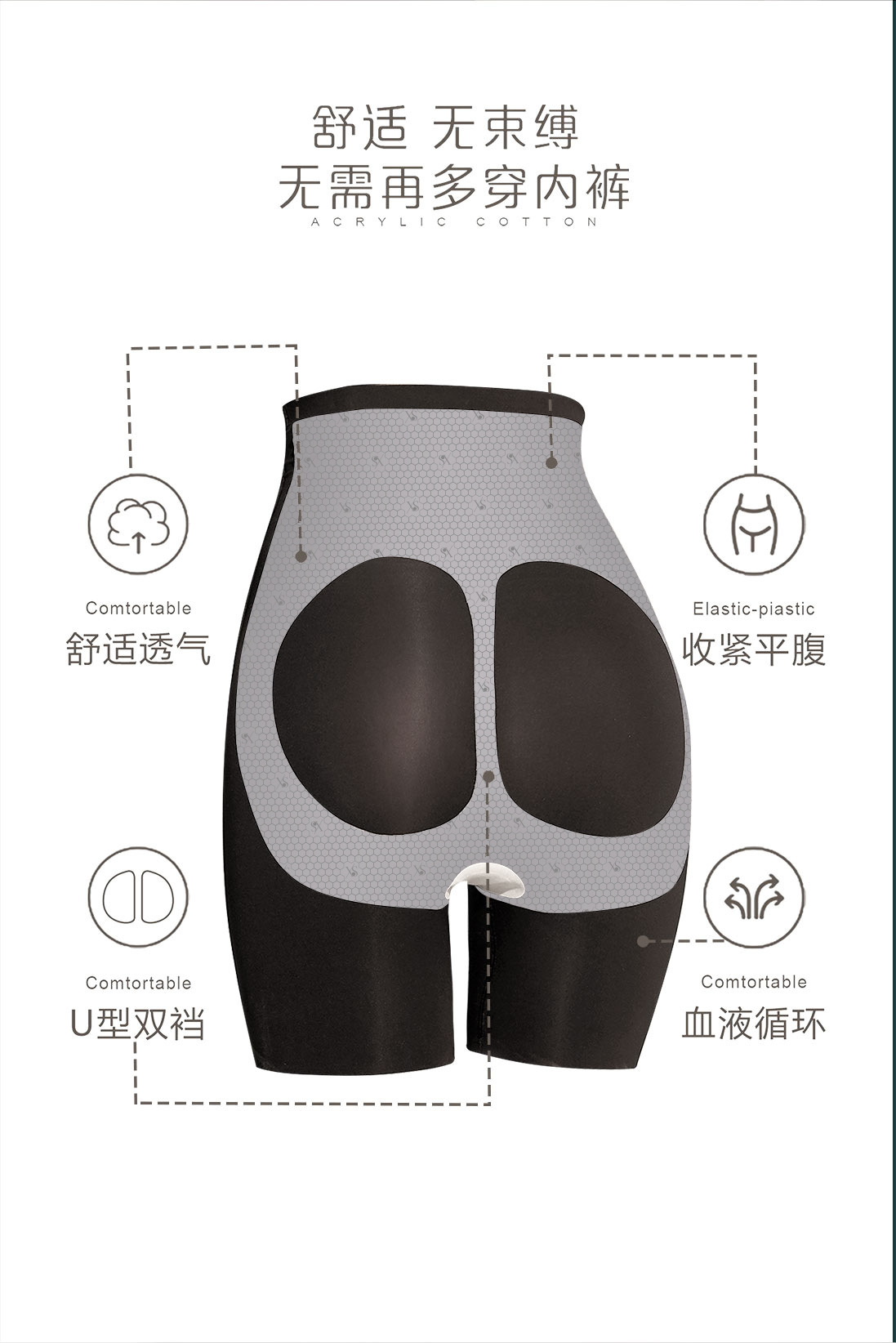 빅사이즈 무봉제 하이웨이스트 허리 조절 보정속옷 엉덩이 리프팅 안전팬츠 서스펜션 팬츠 허리 조임 복부 보정 여성용 여름용
