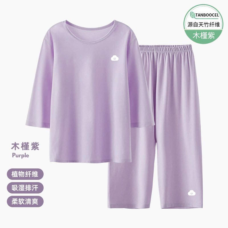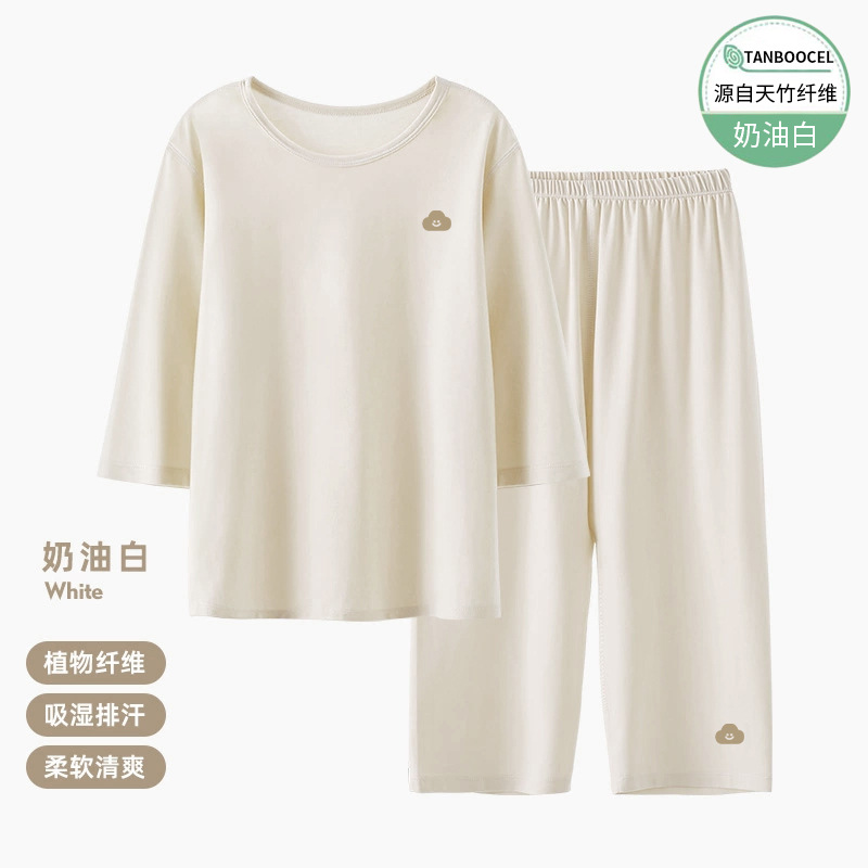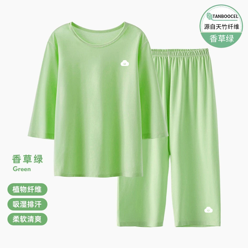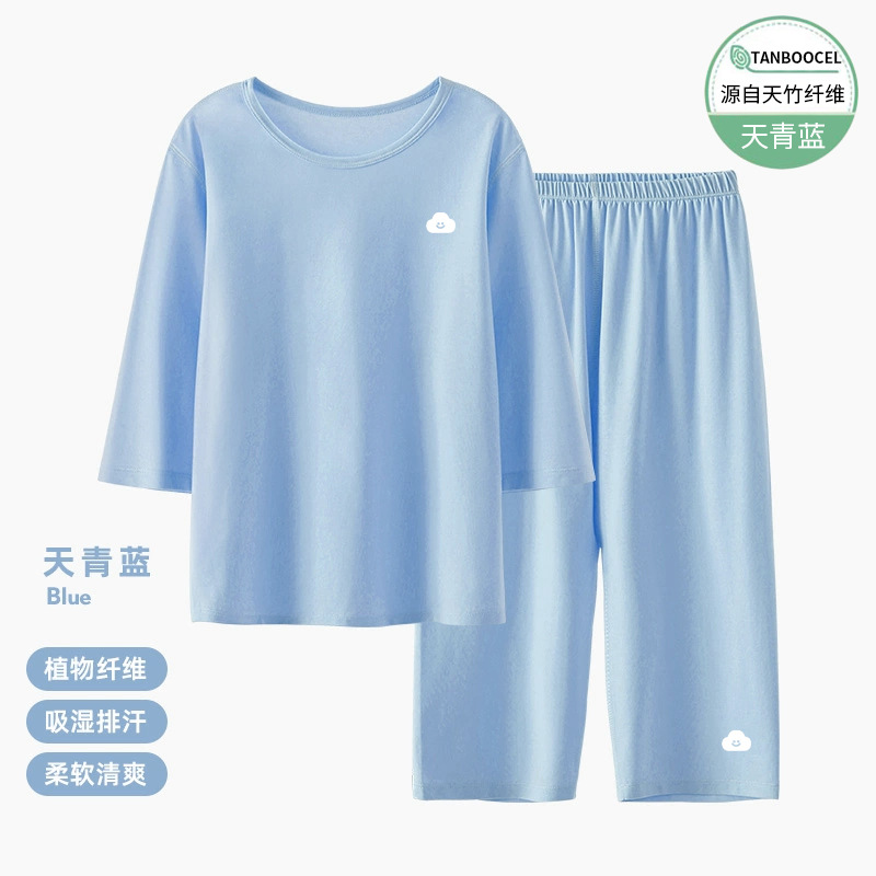 어린이 잠옷 세트 아기 여름 얇은 소년과 소녀 단색 7 소매 홈 옷 대형 어린이 에어컨 옷