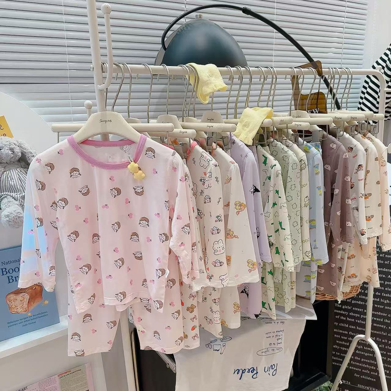 [7A 항균] 잠옷 세븐 슬리브 Lyocell 홈 의류 세트 통기성 얇은 에어컨 소년 소녀스토어 가기