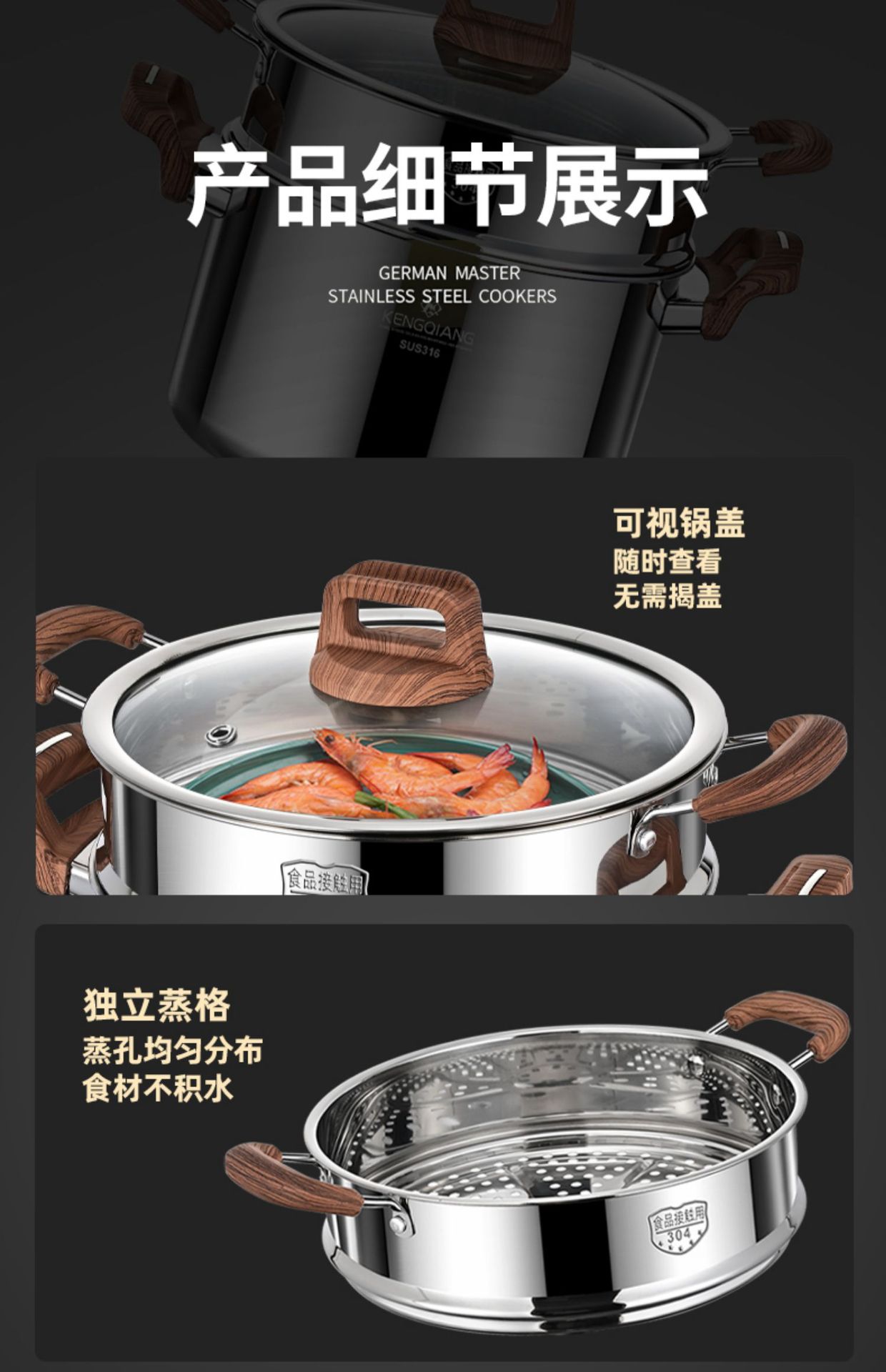 Sonorous Highlight Soup Pot 316 스테인레스 스틸 두꺼운 수프 죽 찜 스튜 냄비 가정용 유도 밥솥 가스 요리 냄비