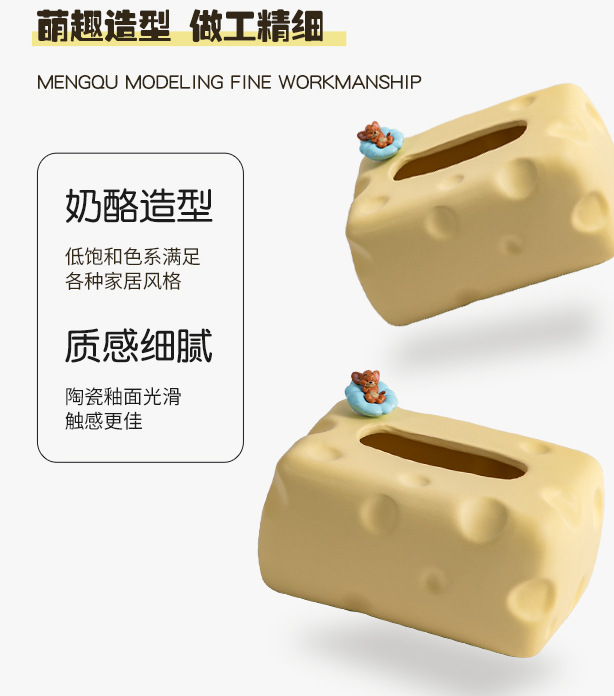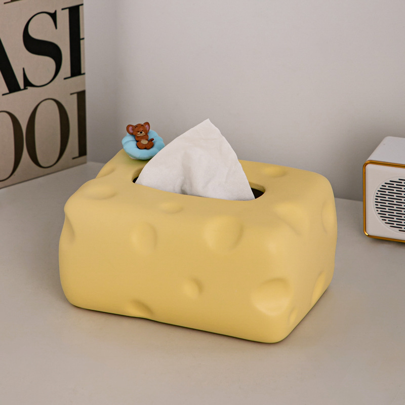 치즈 창조적 인 조직 상자 거실 냅킨 종이 상자 종이 상자 엔트리 럭셔리 데스크탑 세라믹 종이 상자 감각스토어 가기