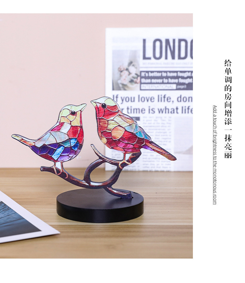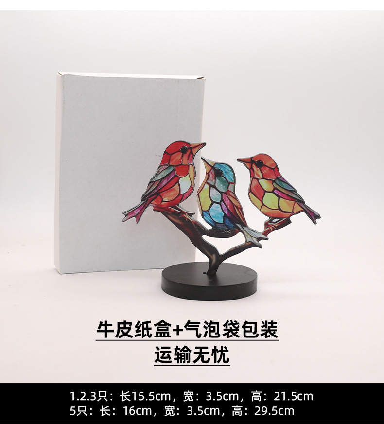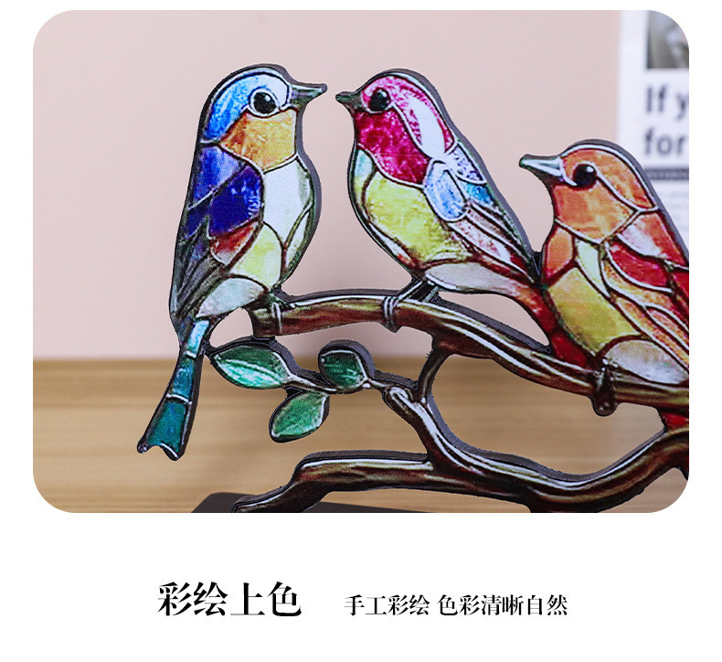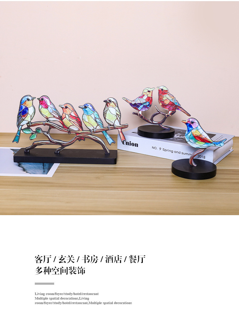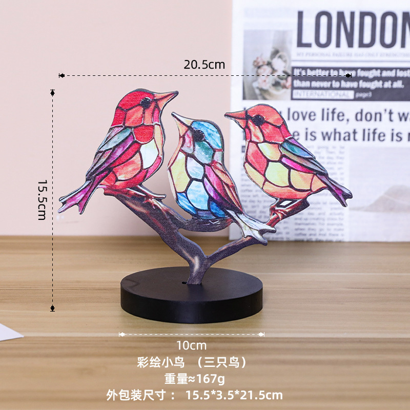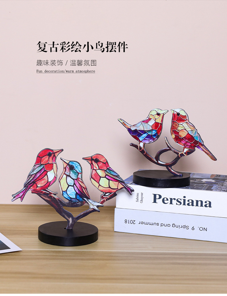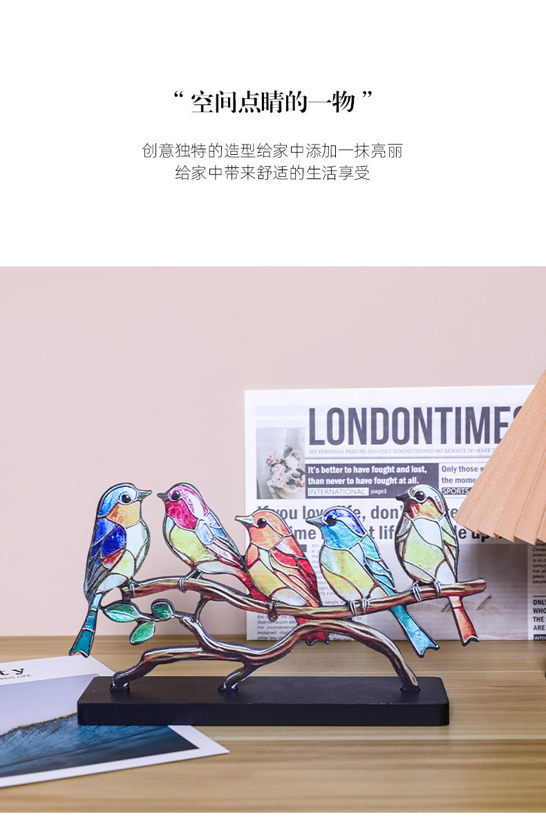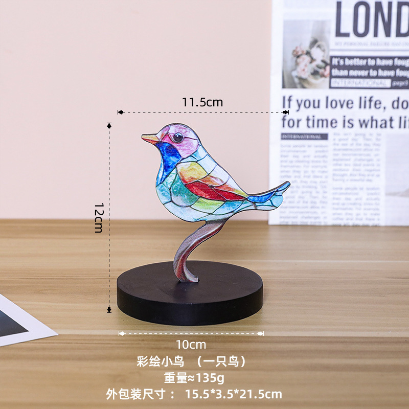 跨境新款亚马逊小鸟装饰品摆件家居办公桌面百花小鸟木质工艺品
